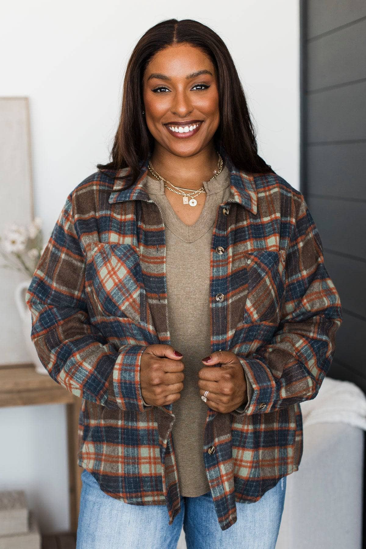 Feeling Carefree Lightweight Flannel Jacket- Brown & Navy
