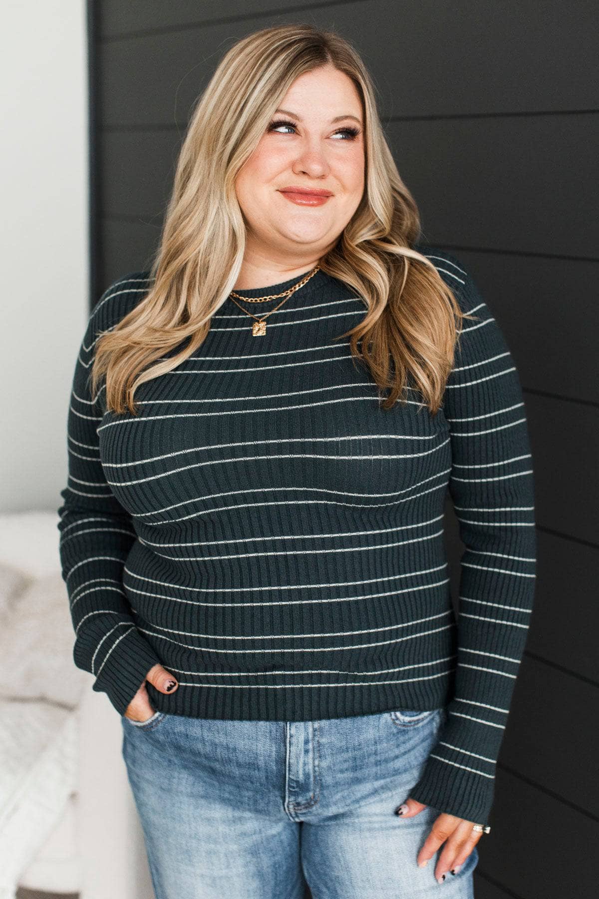 Significant Allure Striped Lightweight Sweater- Dark Teal