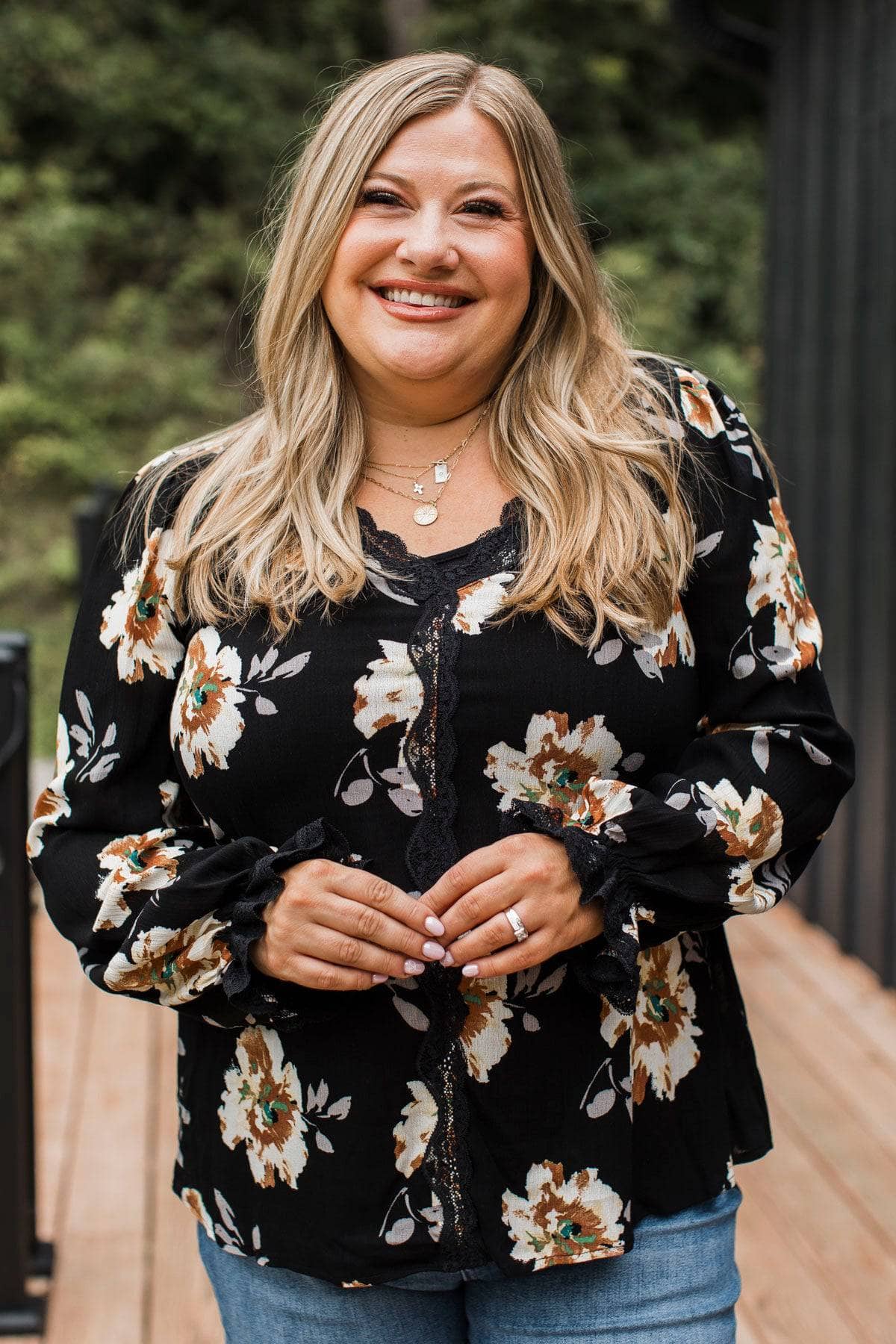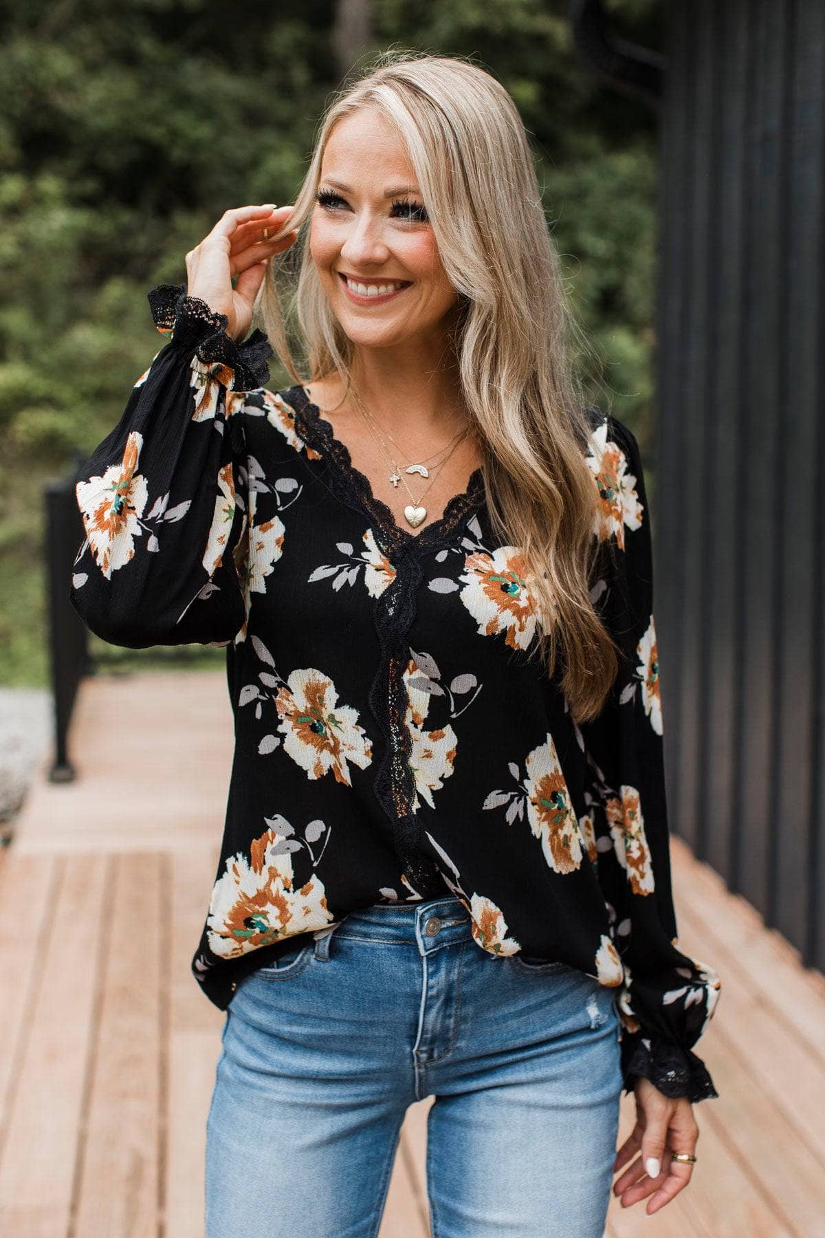 Shared Laughs Floral Puff Sleeve Blouse- Black