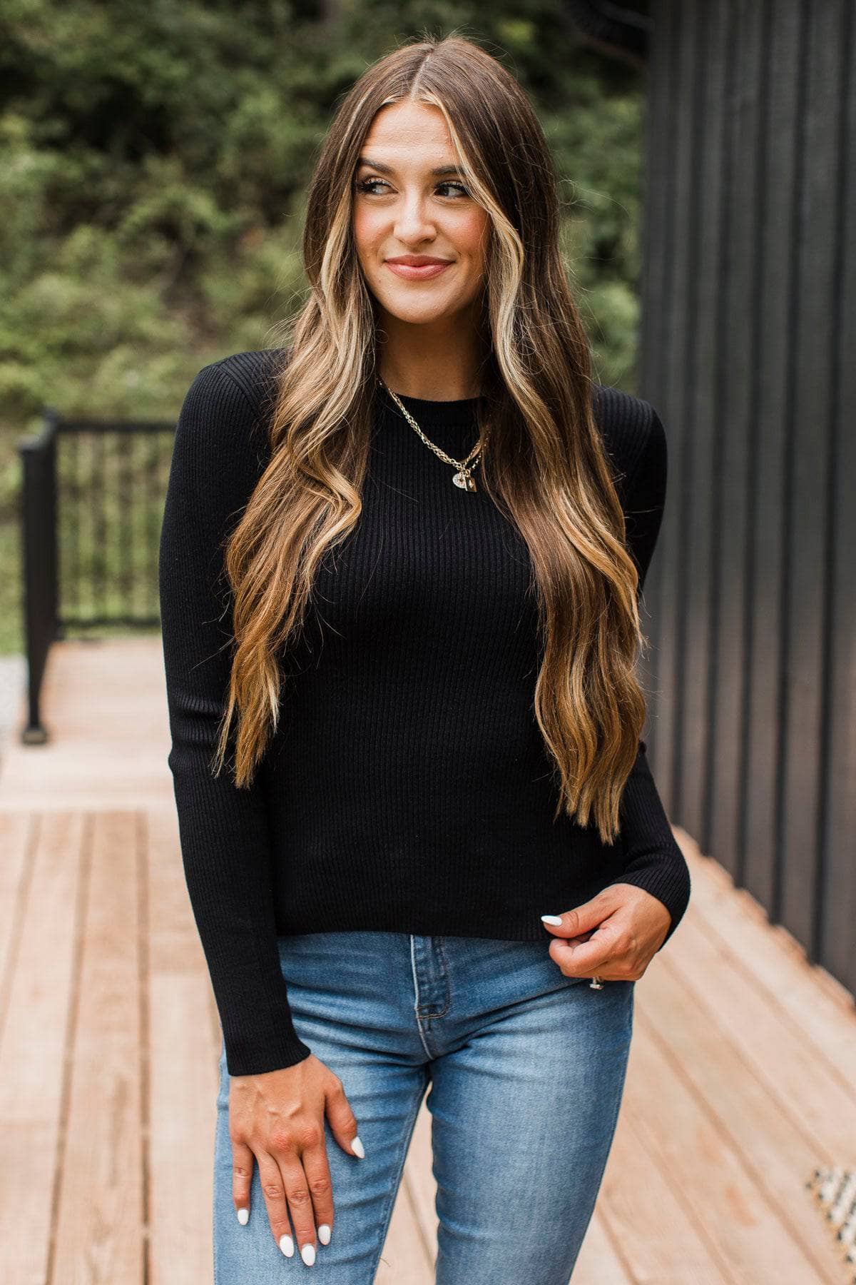 More To Discover Mock Neck Ribbed Sweater- Heather Grey