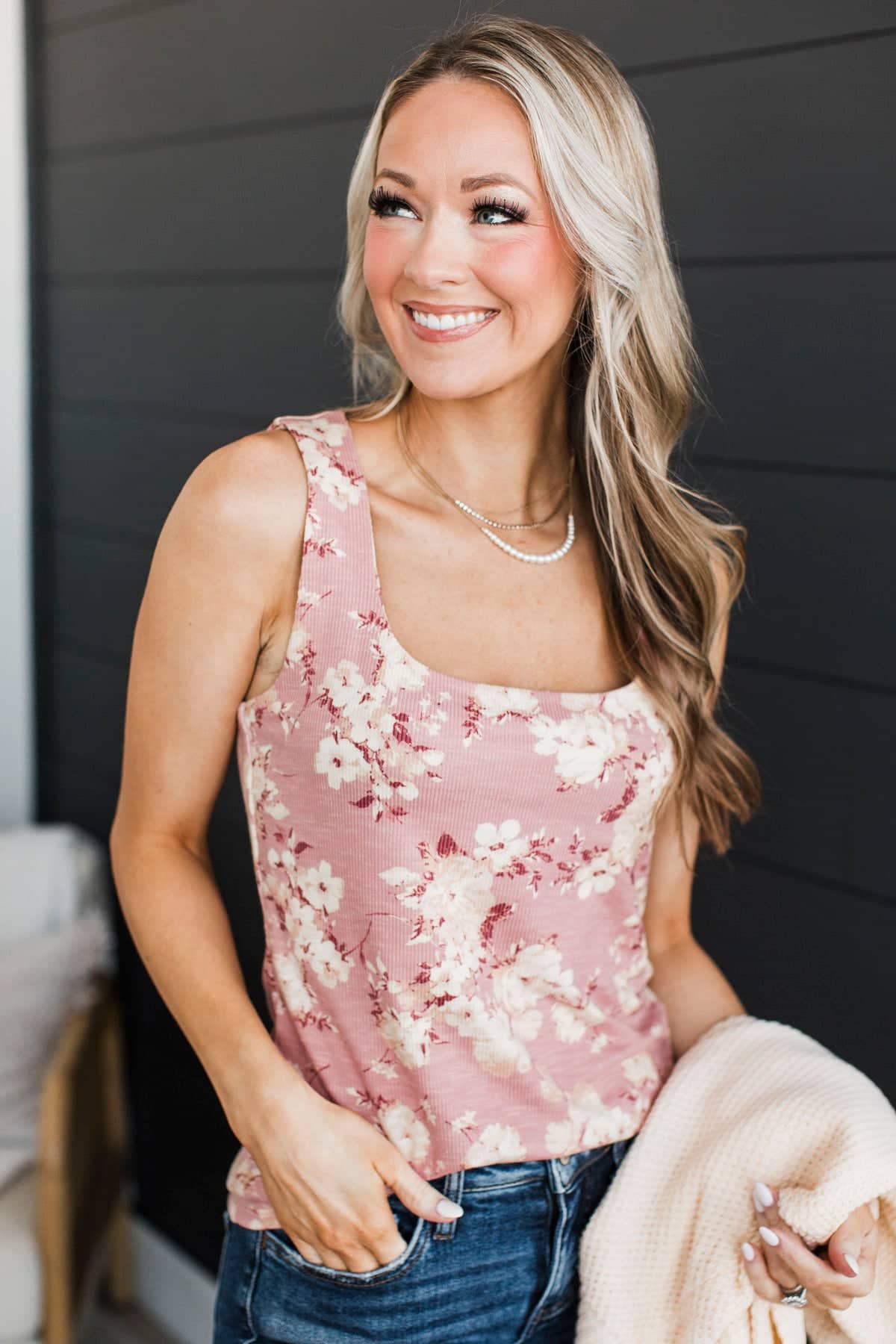 Right As Always Ribbed Floral Tank Top- Dusty Pink