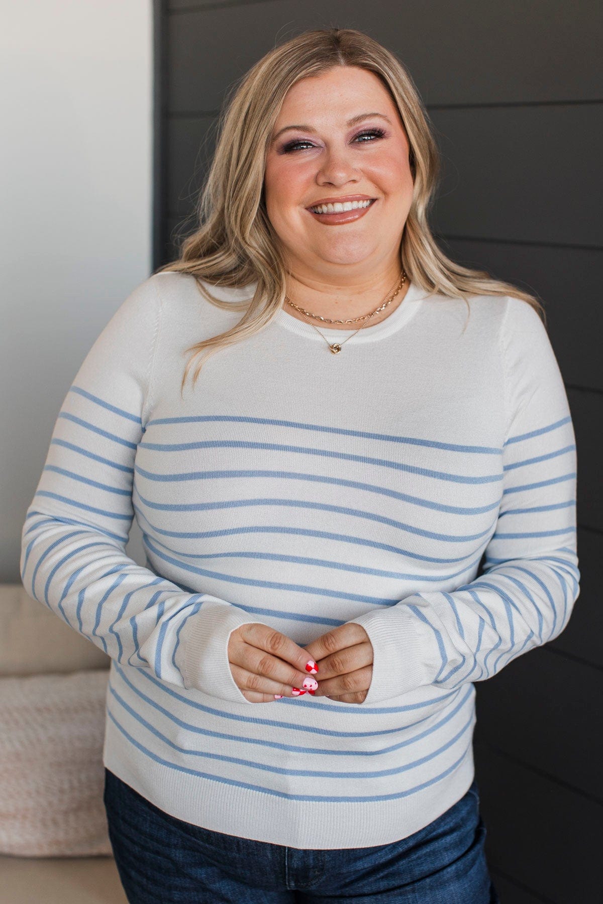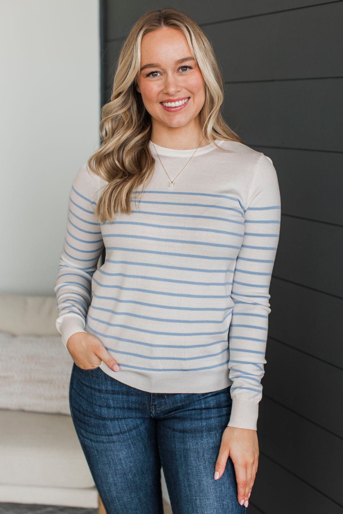 Enchanting Gazes Striped Sweater- Ivory & Chambray