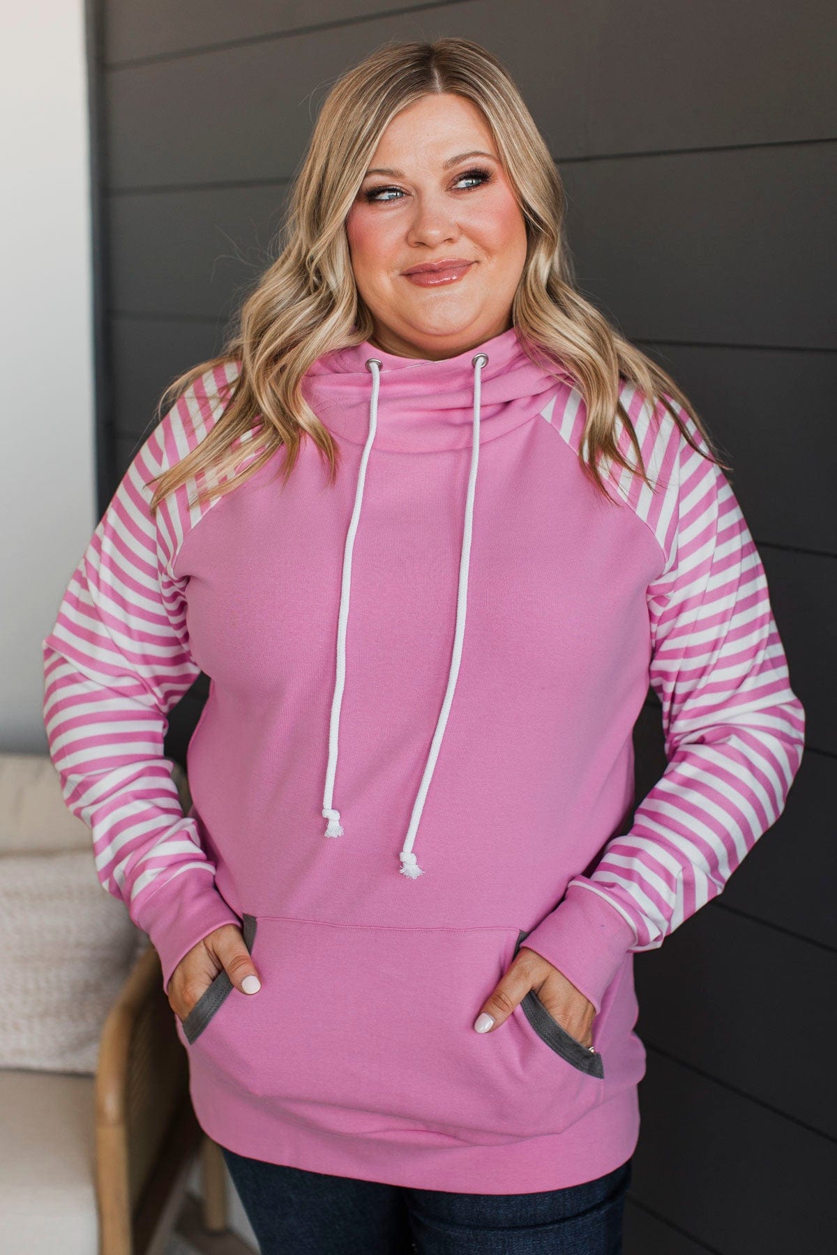 Major Impression Striped Drawstring Hoodie- Pink