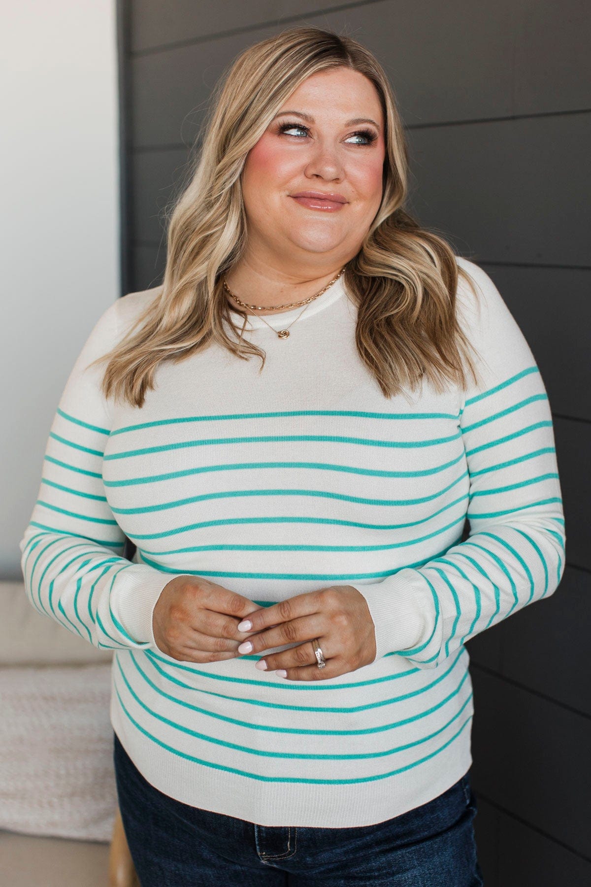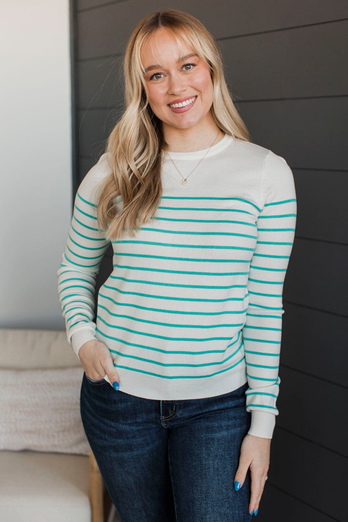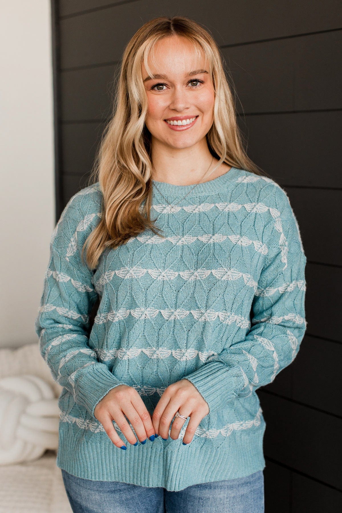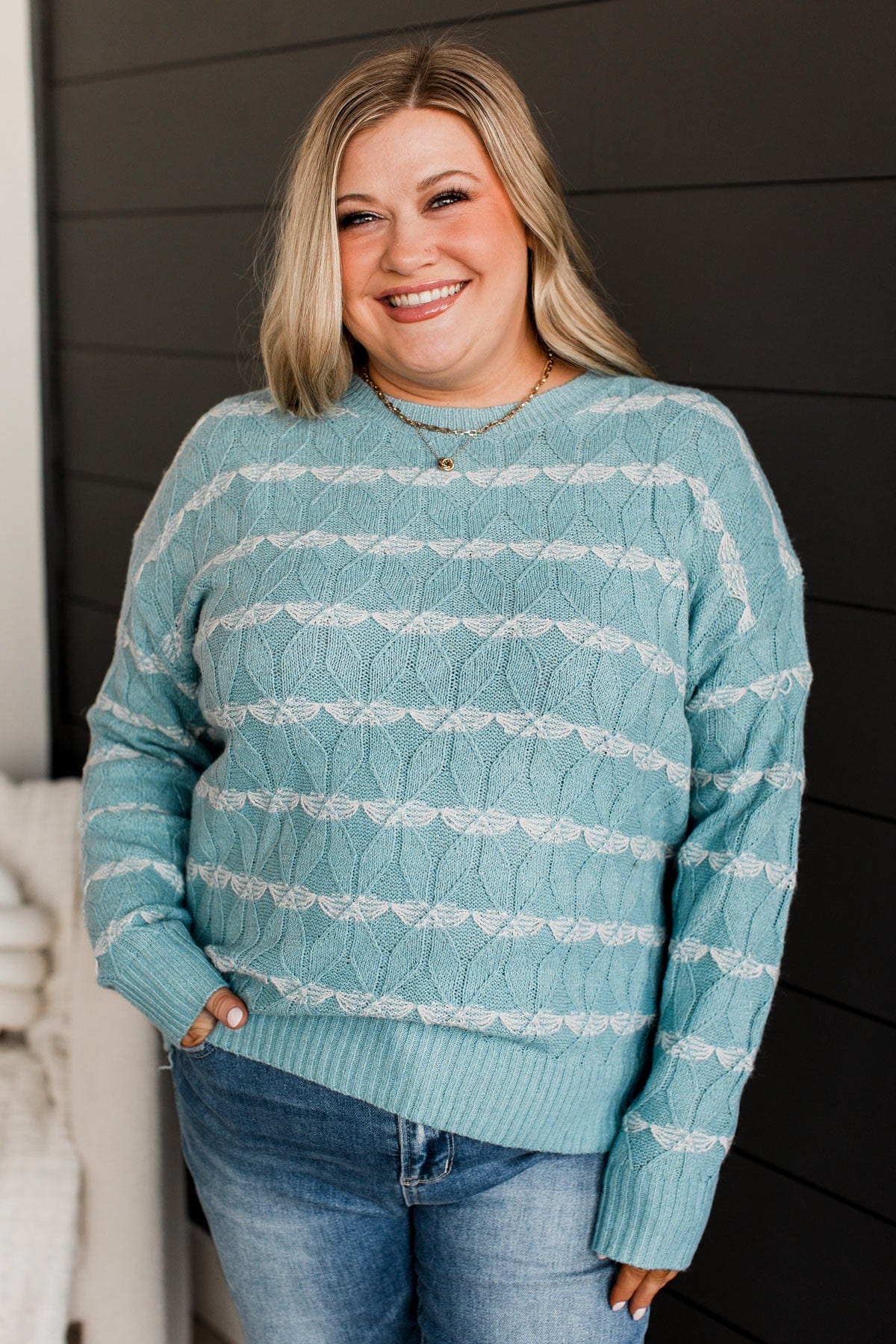 Show Me Off Striped Knit Sweater- Dusty Teal