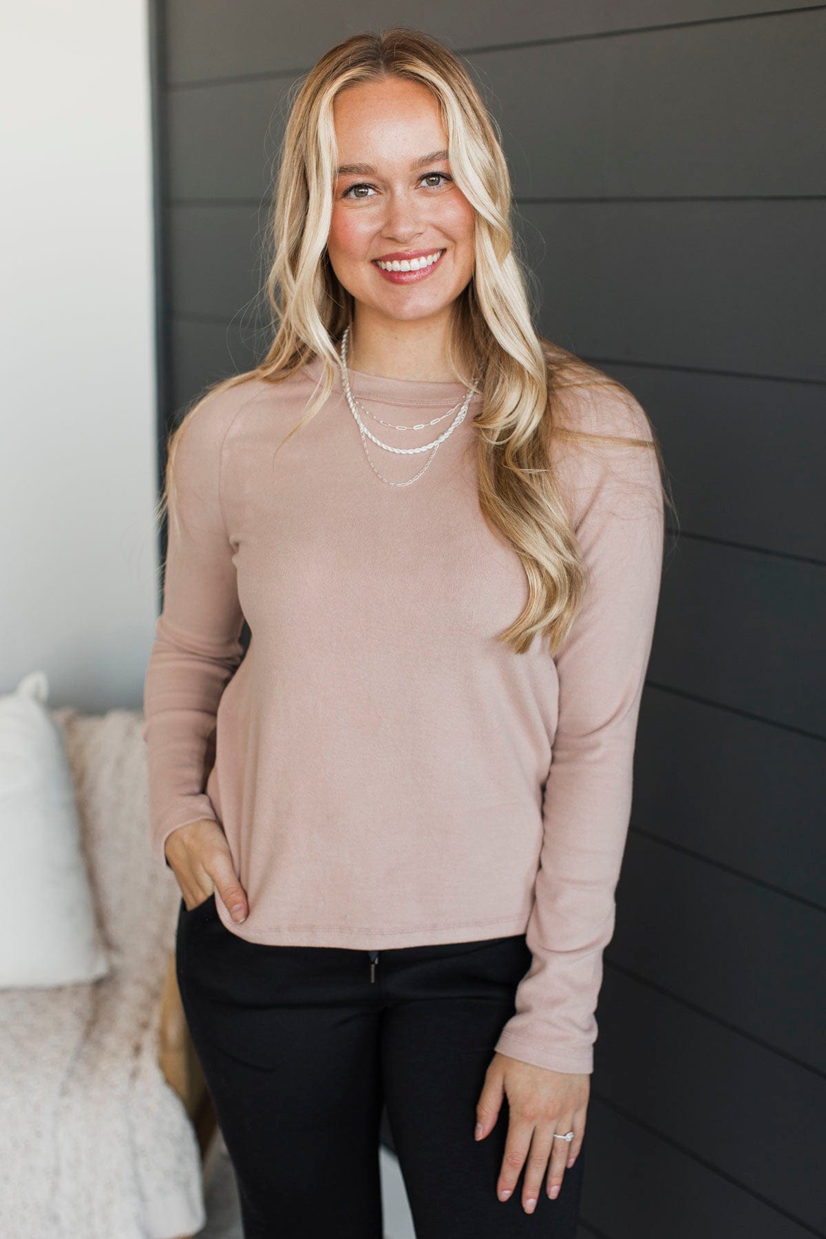 Creating Ambition Brushed Knit Top- Dusty Blush