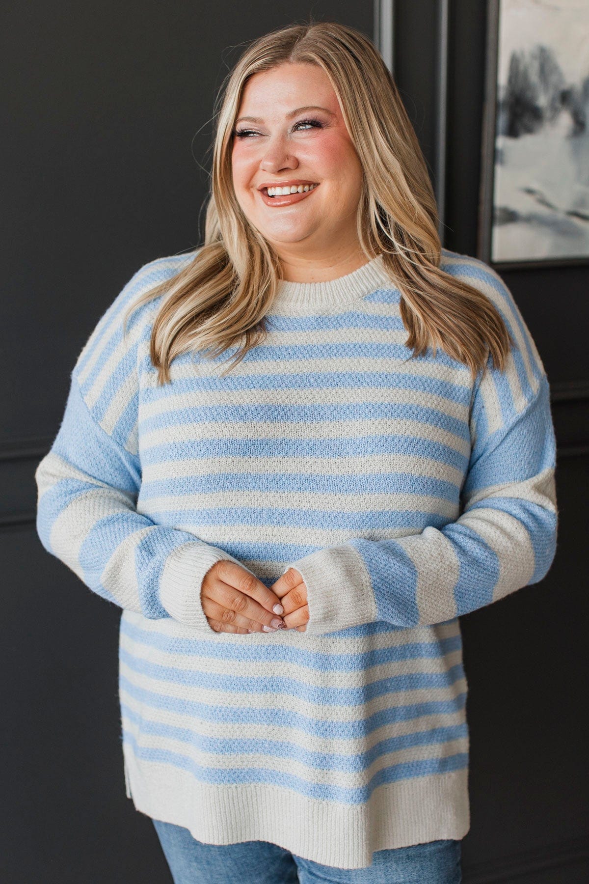 Wishes From The Heart Striped Sweater- Ivory & Blue