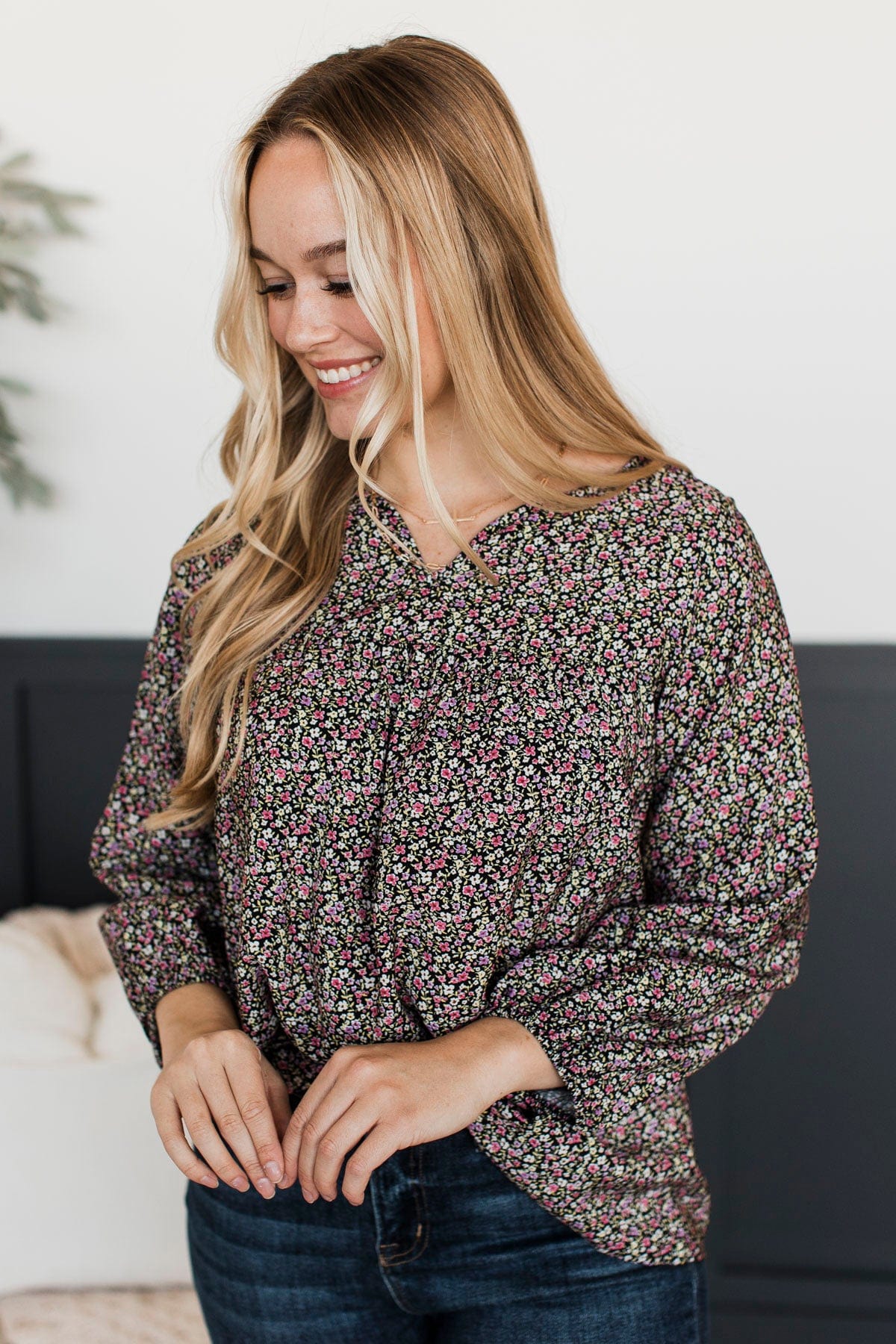 Always In Bloom Floral Blouse- Black