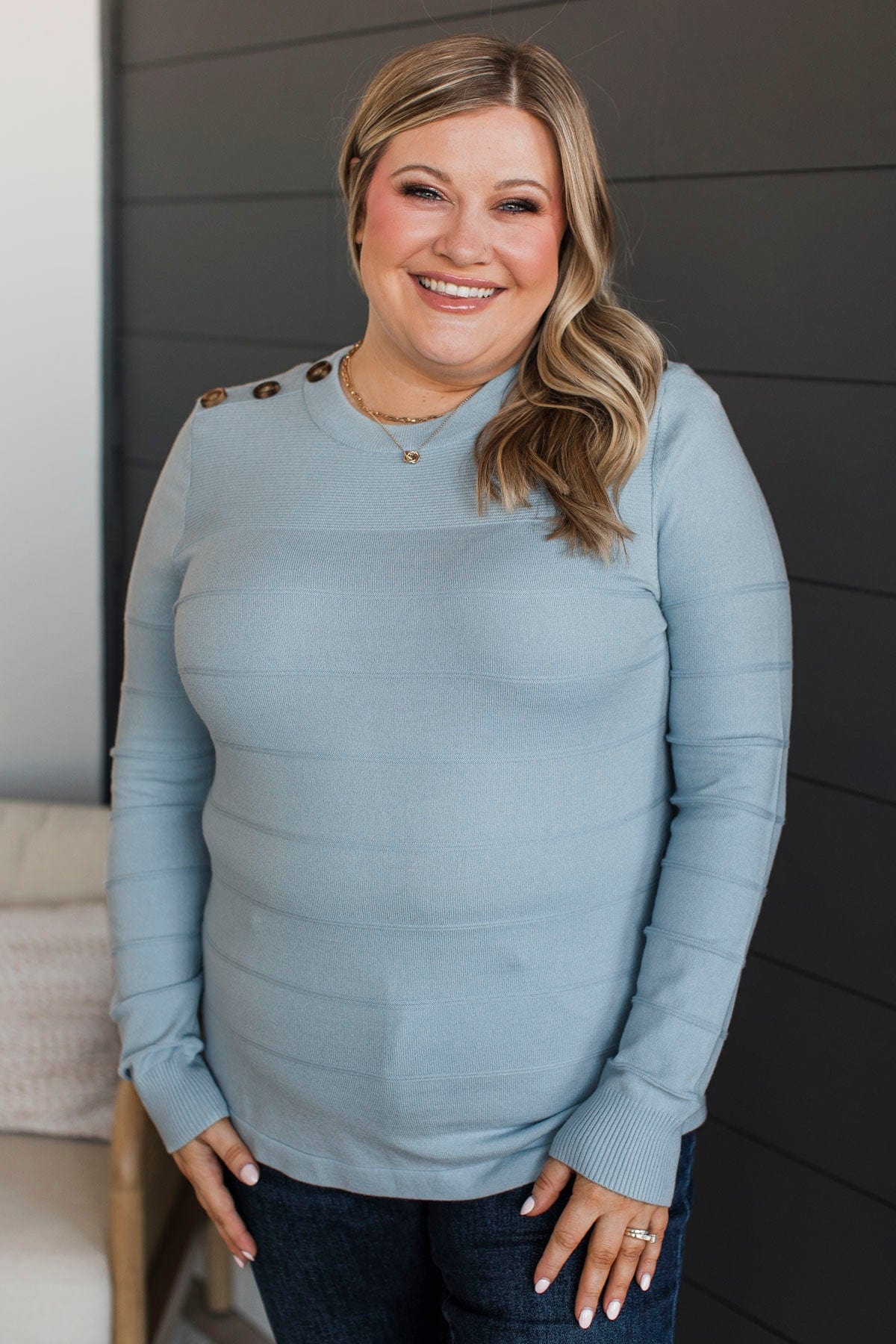 From The Heart Button Knit Sweater- Light Blue