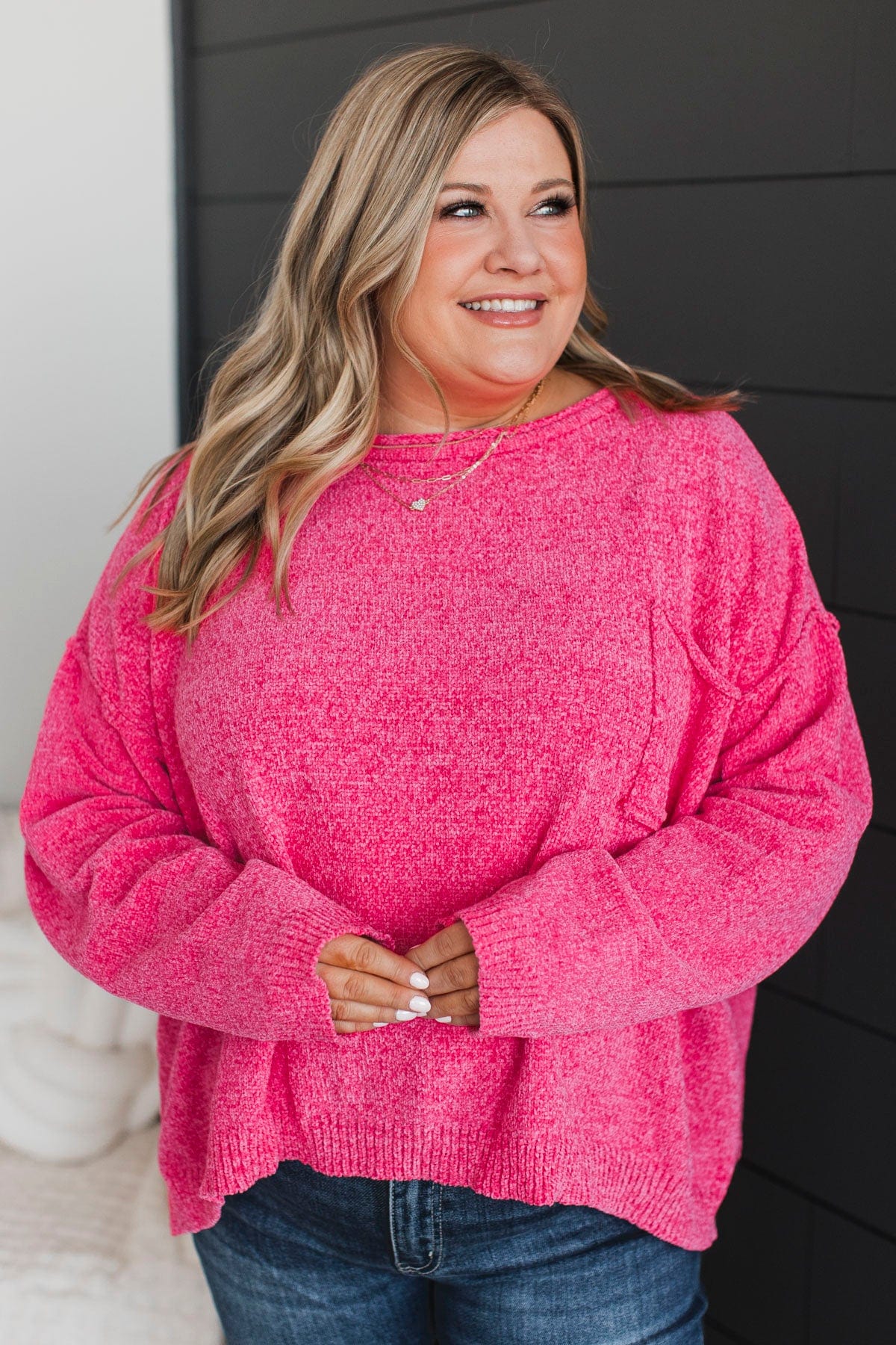 Bright & Cheery Chenille Knit Sweater- Hot Pink