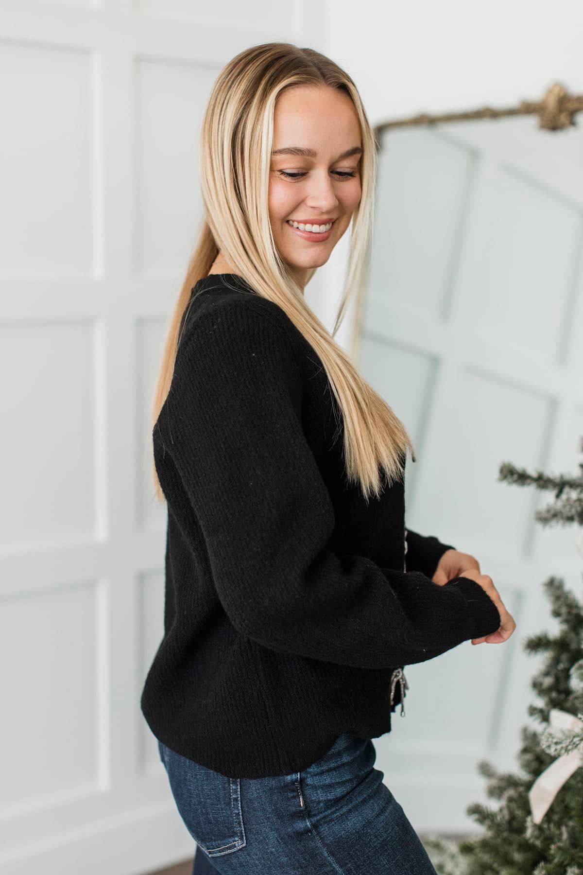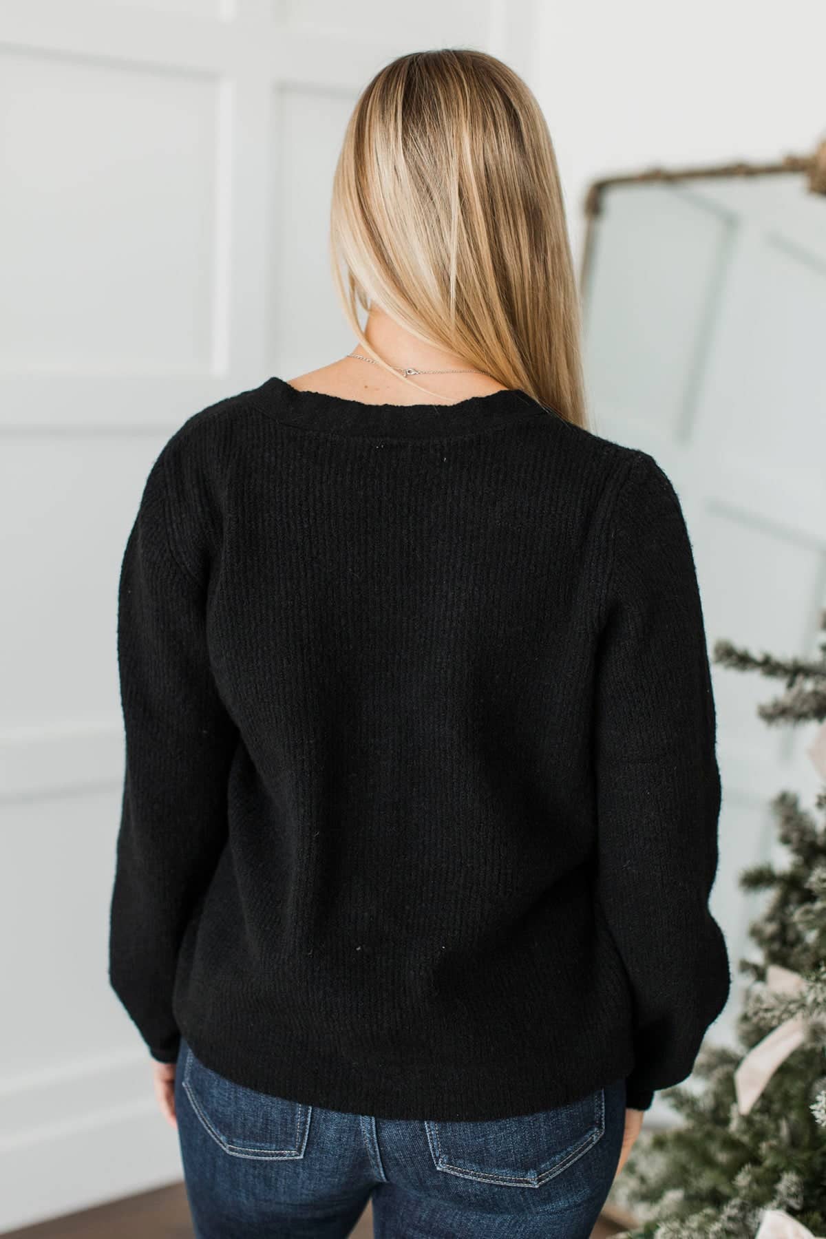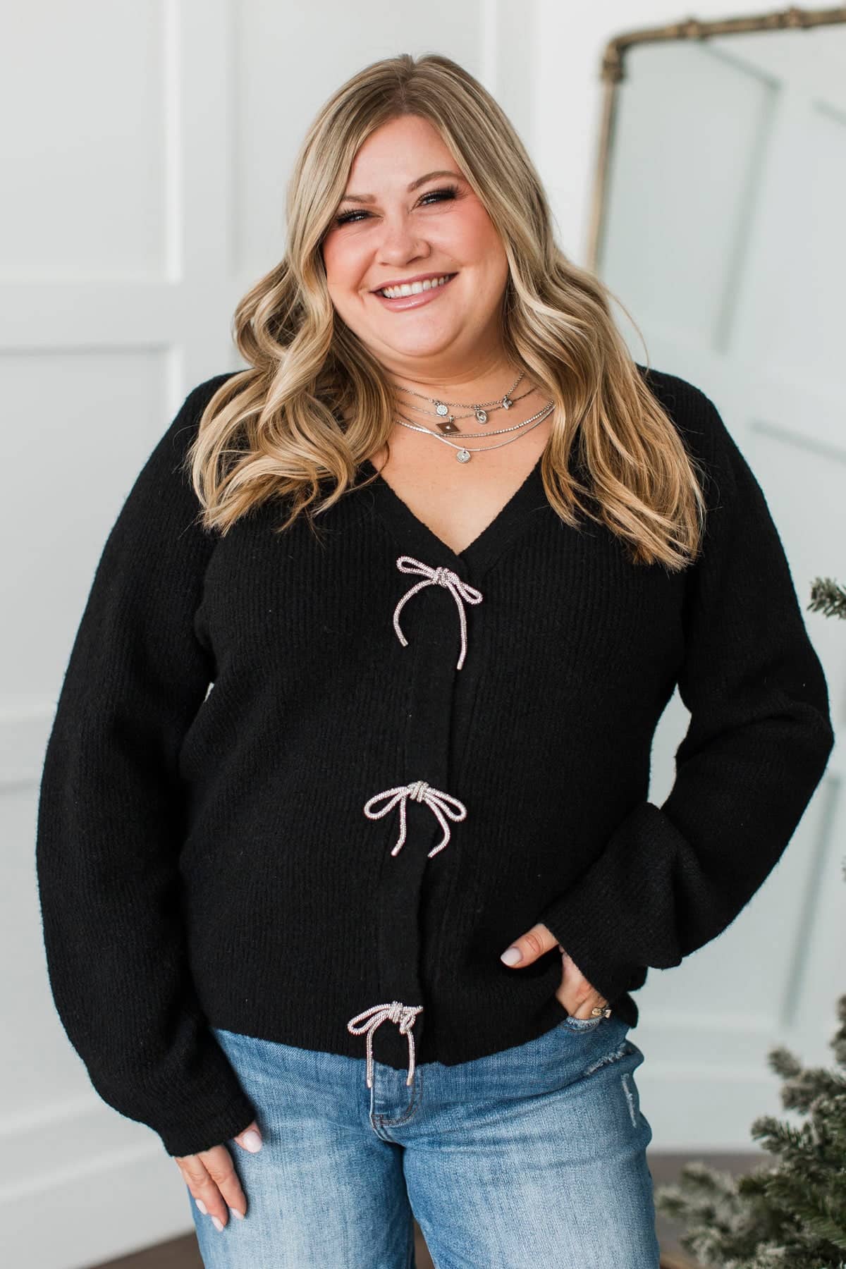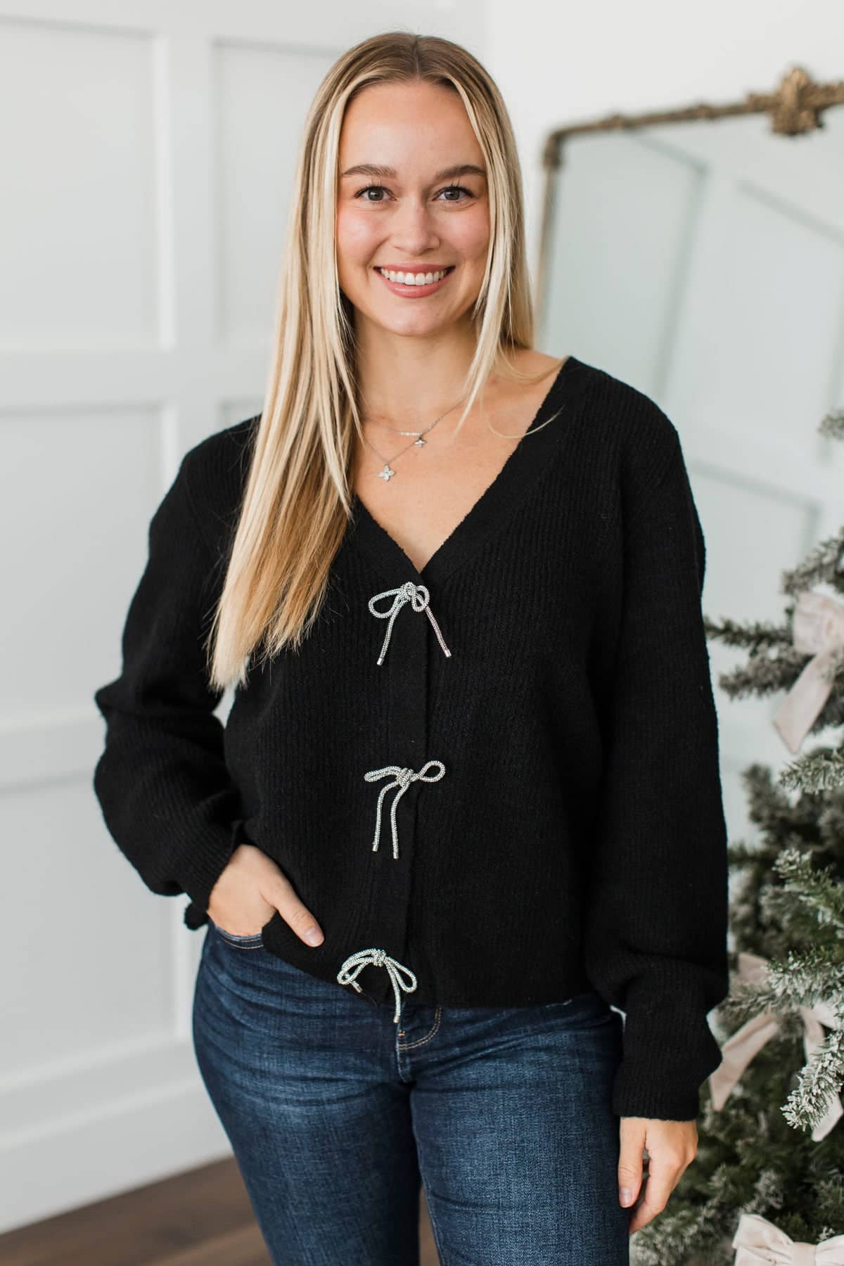 Best Memory Knit Bow Button Cardigan- Black