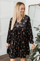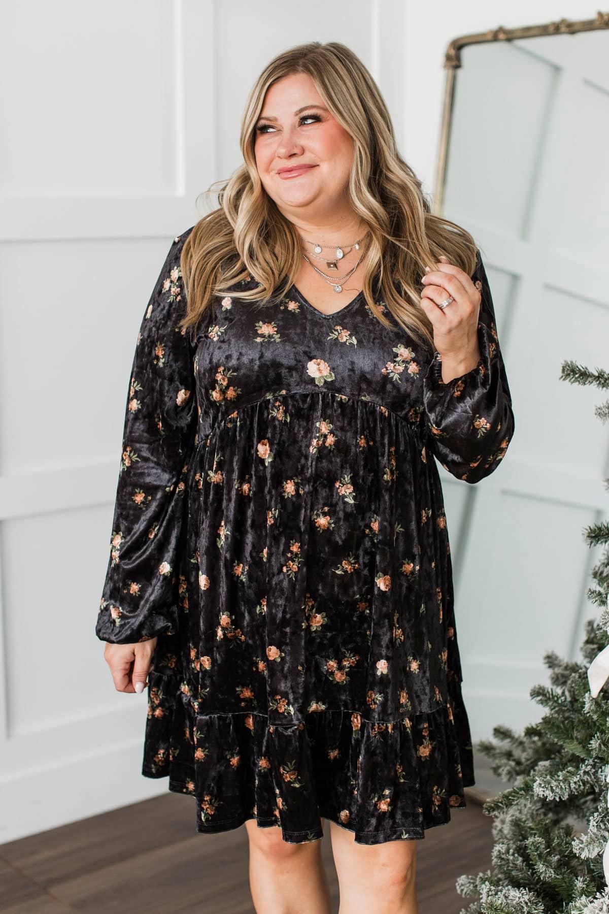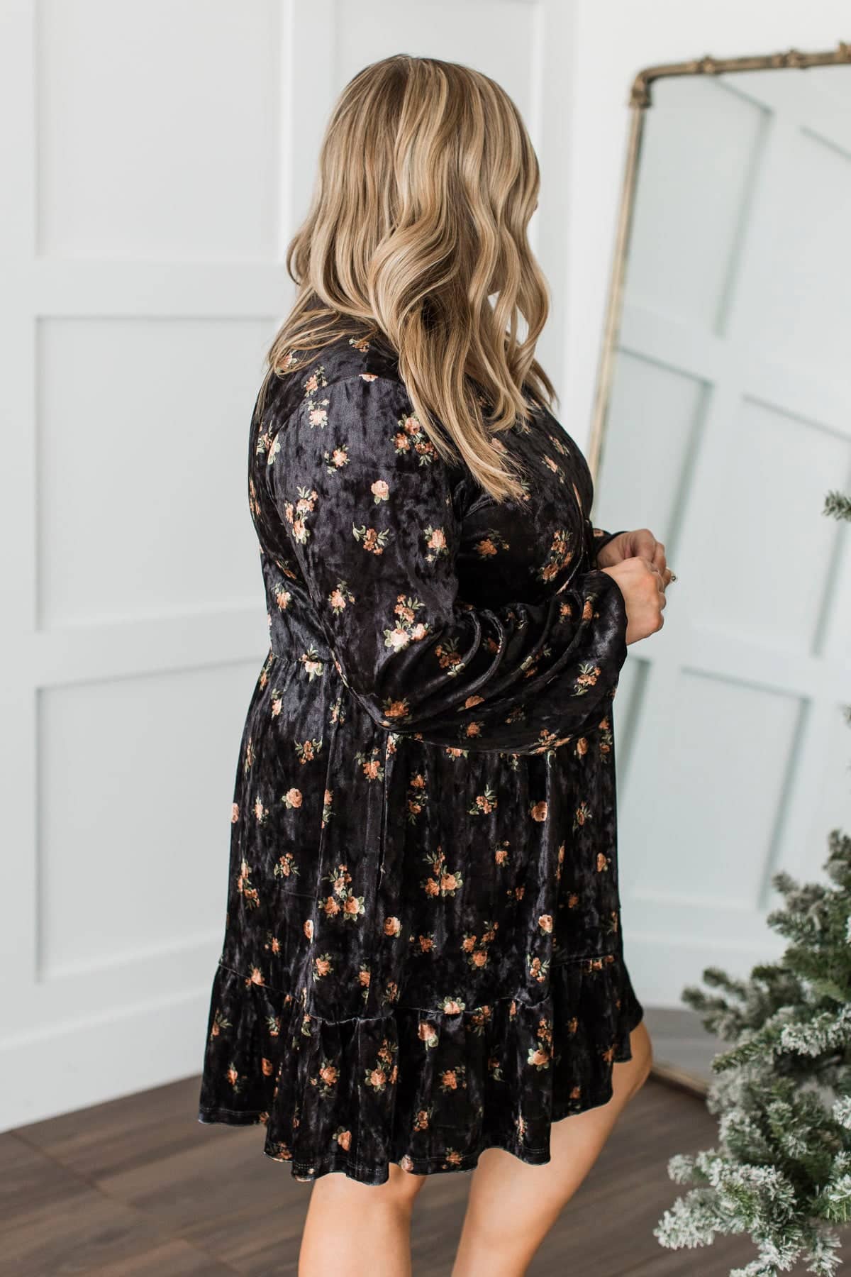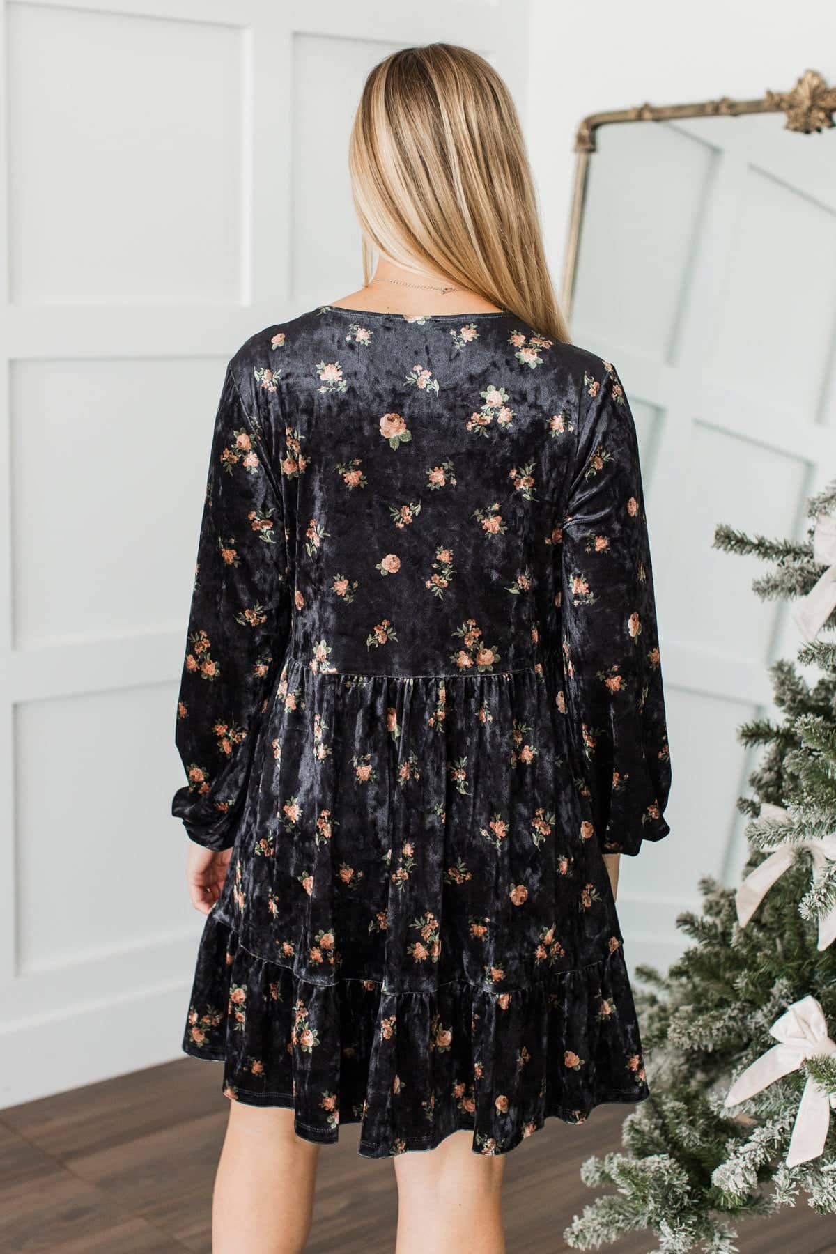 Enjoyable Evenings Floral Velvet Babydoll Dress- Black