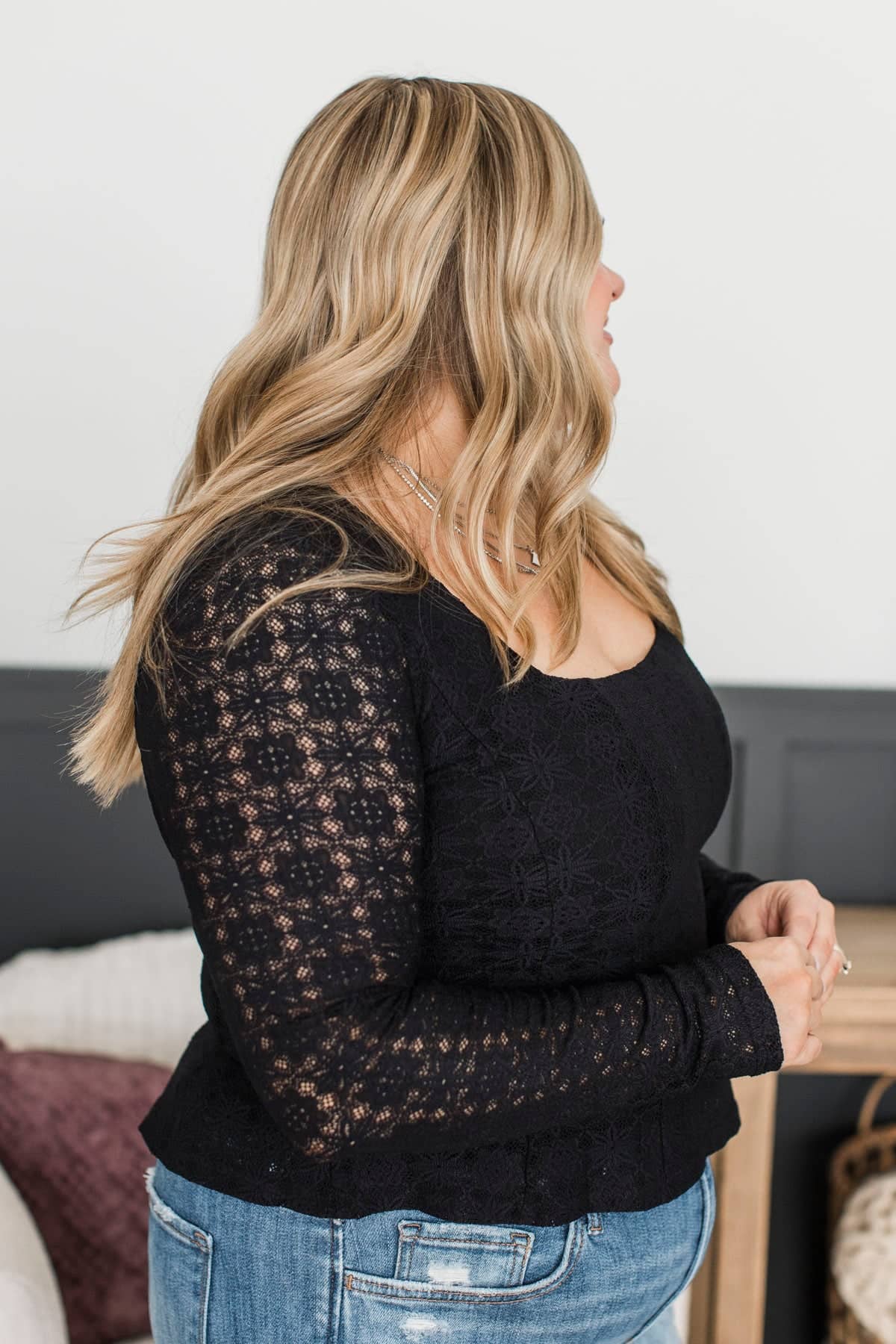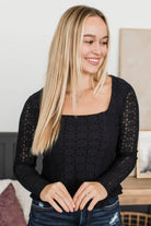 Left An Impression Floral Lace Peplum Top- Black