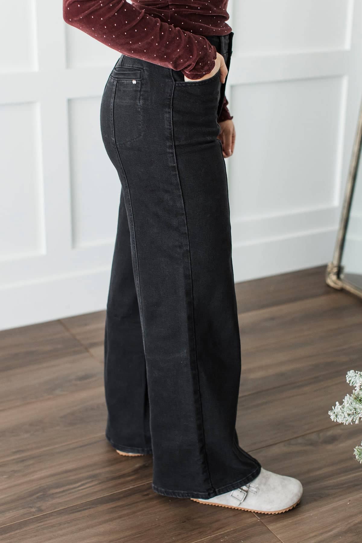 • High-rise wide leg jeans