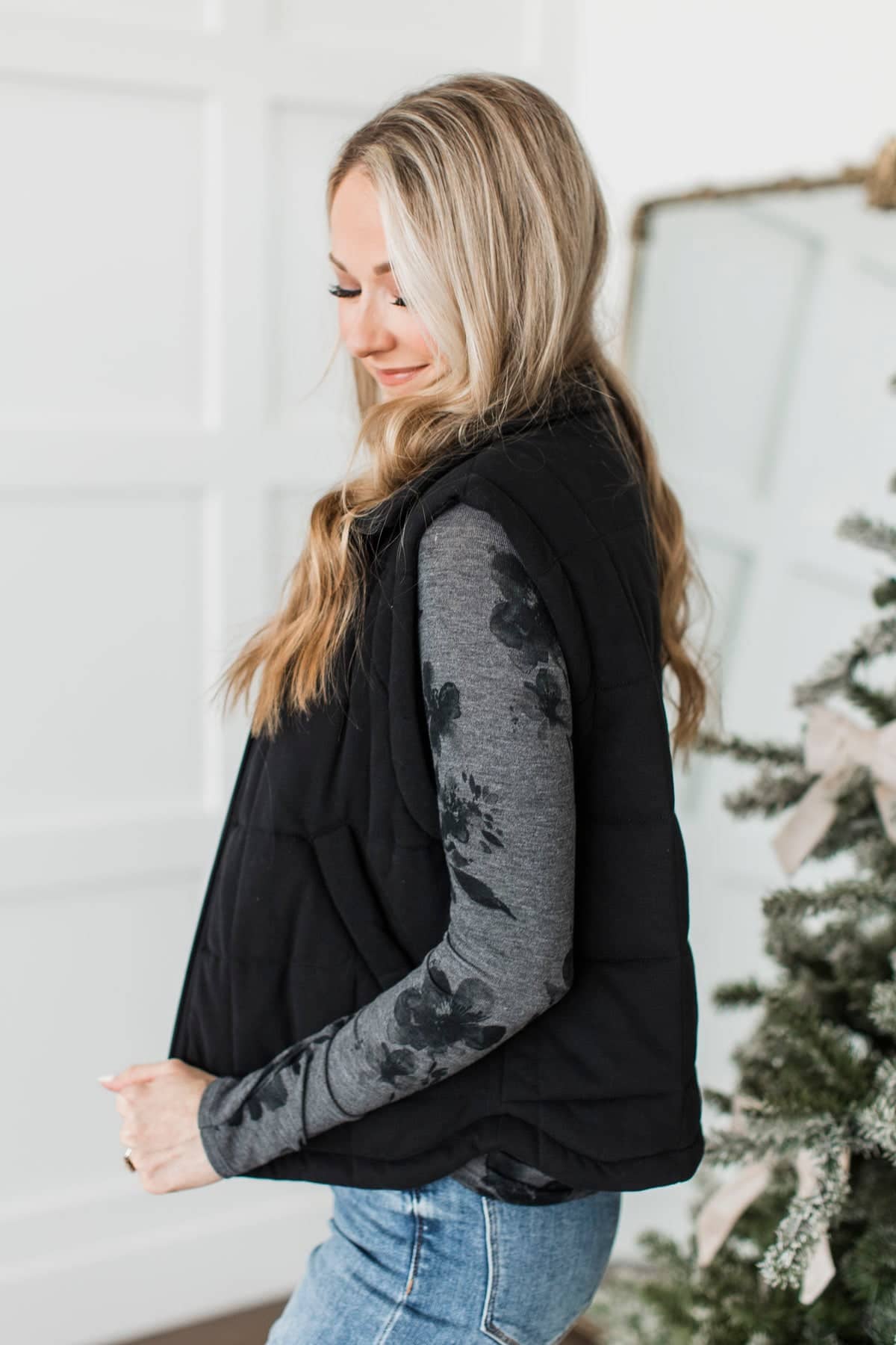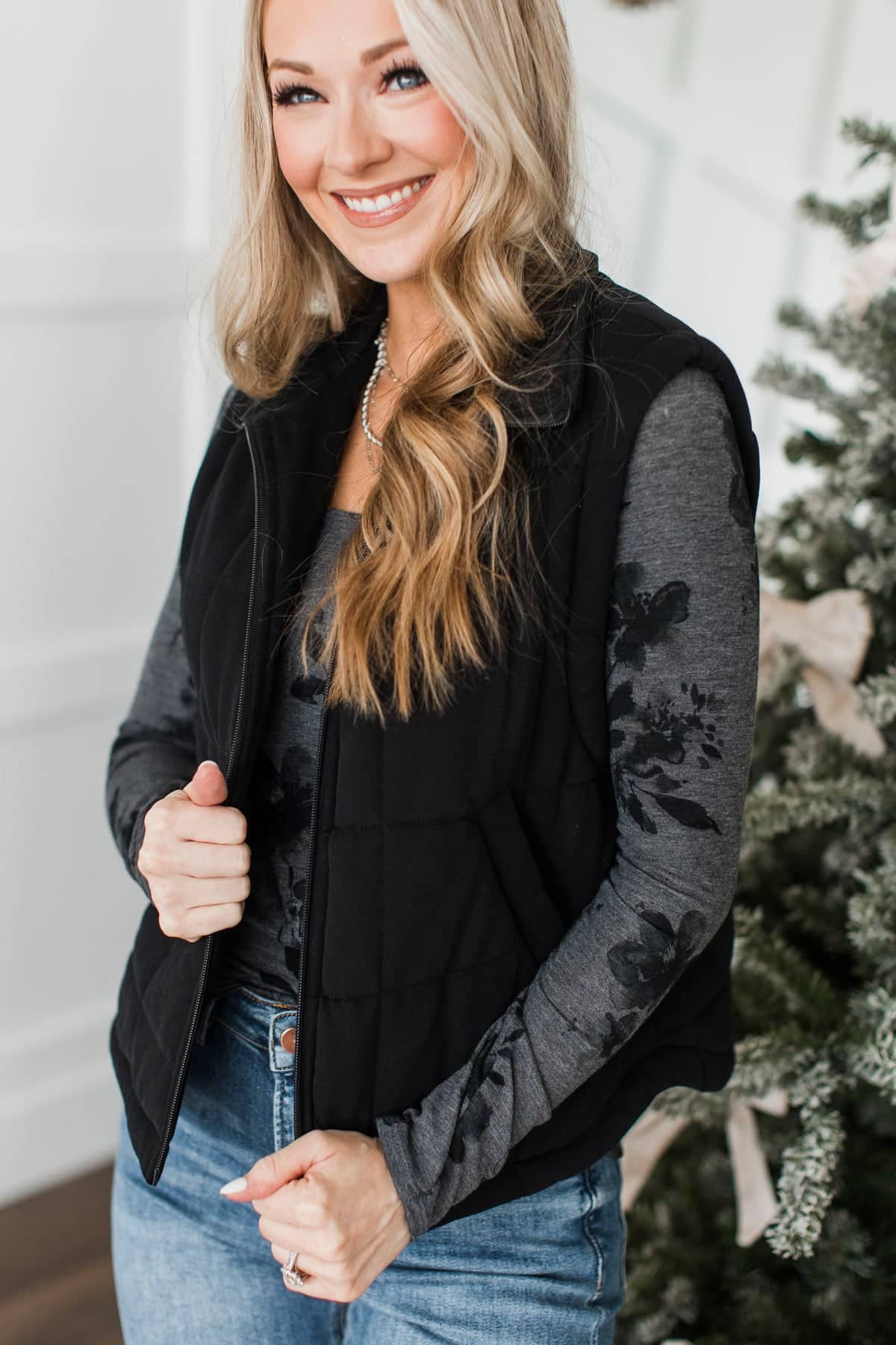 Just For Laughs Long Sleeve Floral Top- Charcoal