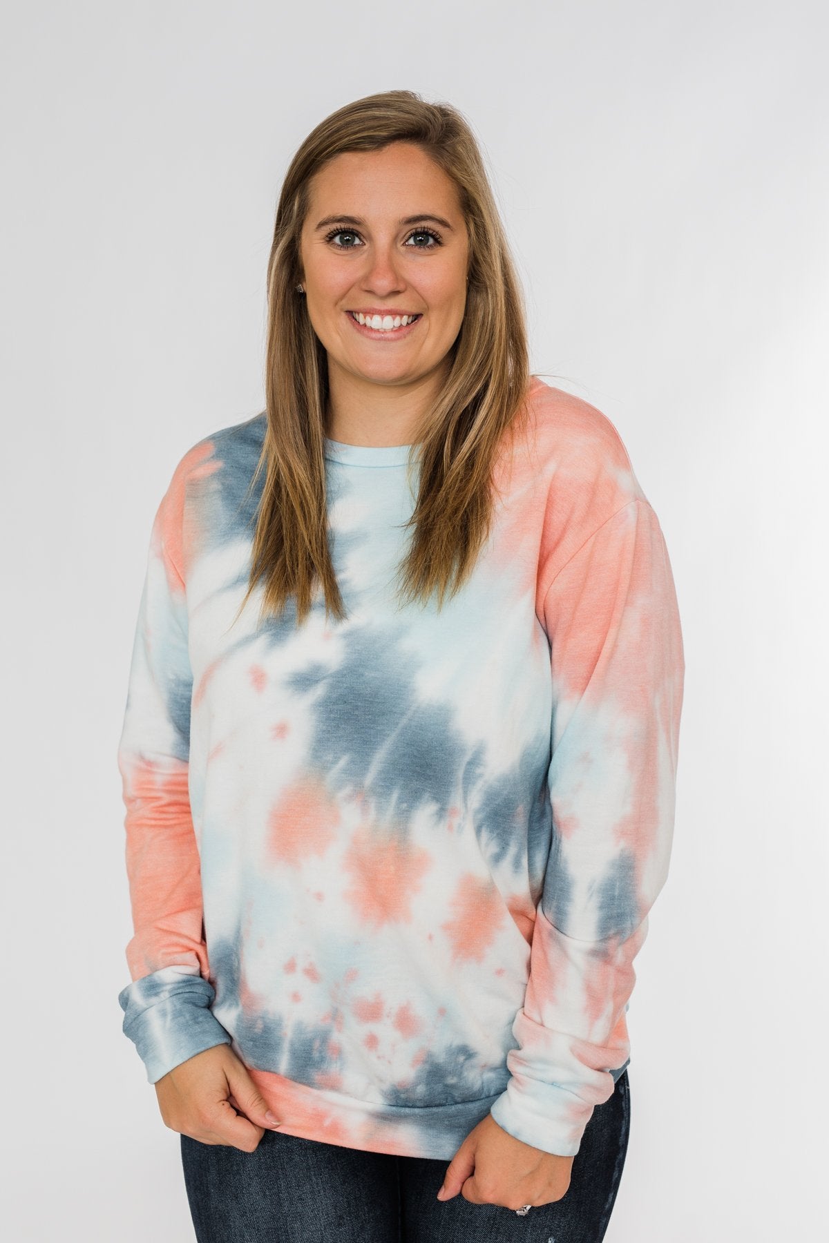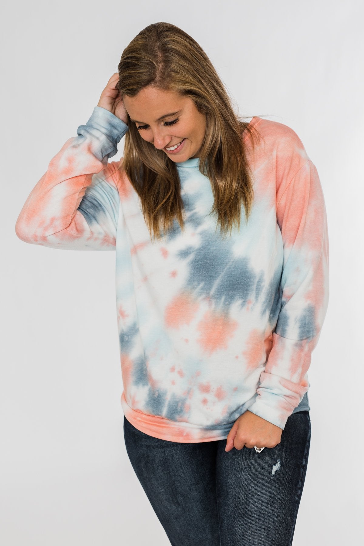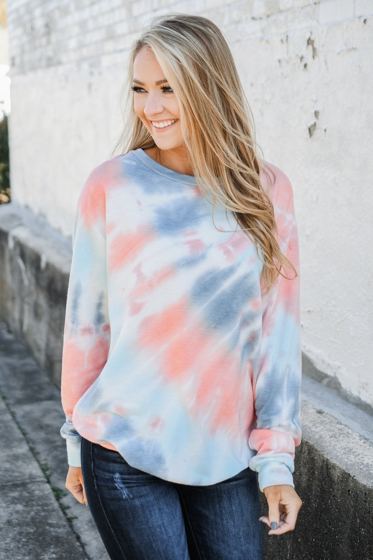 Expand your tie dye collection with this adorable long sleeve pullover! The charming colors of this top make it easy to pair with all of your favorite closet staples! Whether you're on a Target run or have a picnic date with the family, this top is sure to meet all of your expectations!