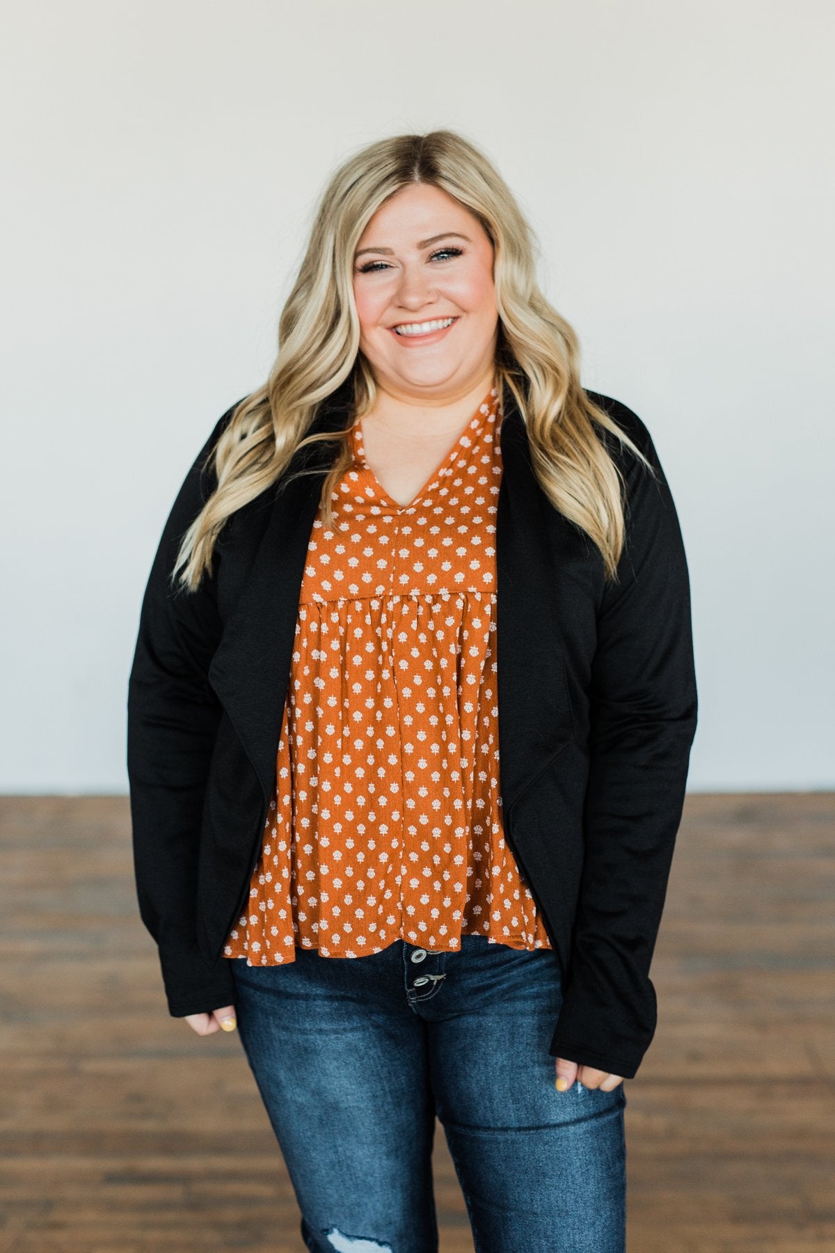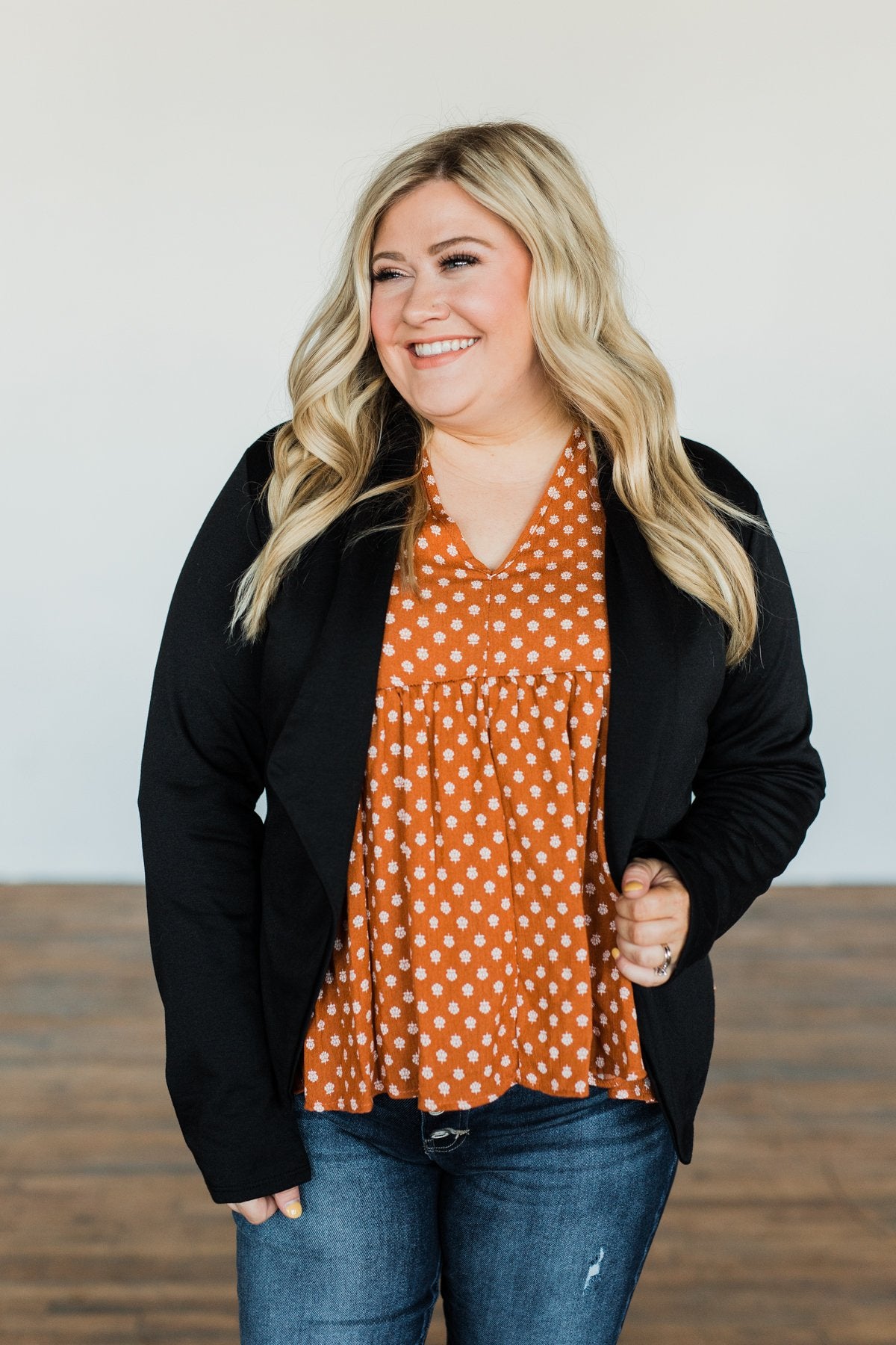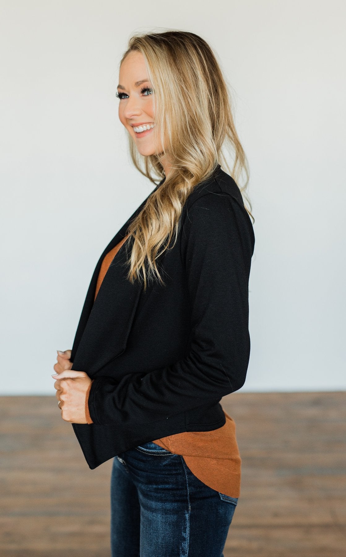 Keep it professional with this blazer! This lightweight blazer is an easy way to dress up any outfit! Featuring an open front fit with long sleeves on a cute and cozy material! This blazer is sure to show off your boss babe self!