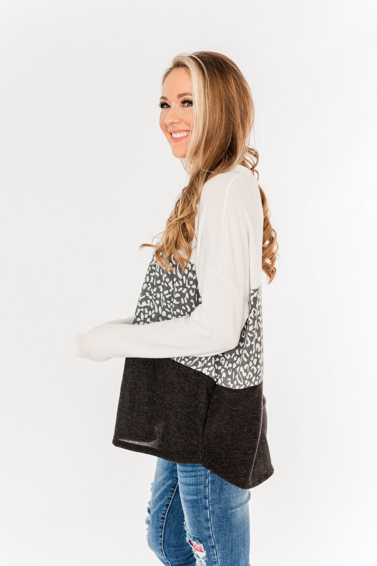 Reach For The Stars Color Block Top- Off-White, Charcoal & Black