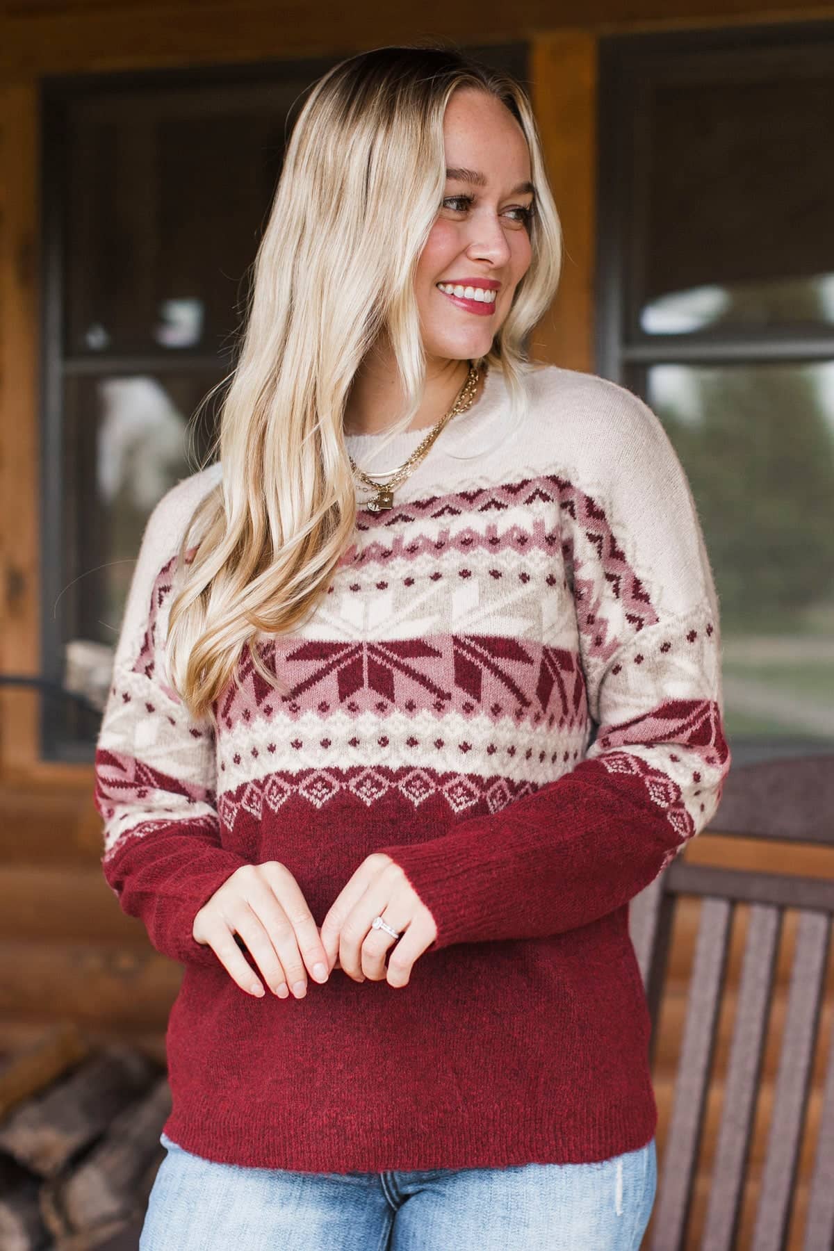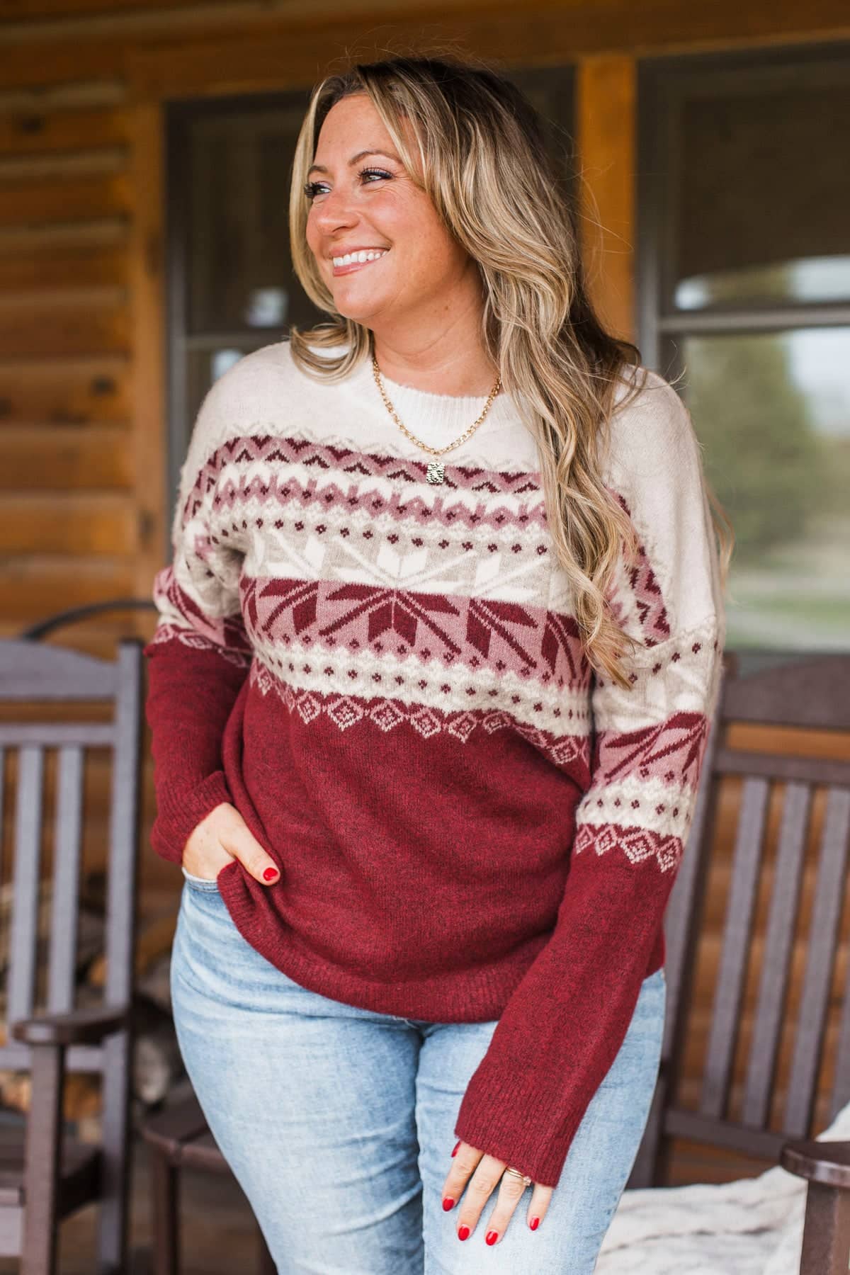 Frosted Looks Fair Isle Knit Sweater- Ivory & Deep Red