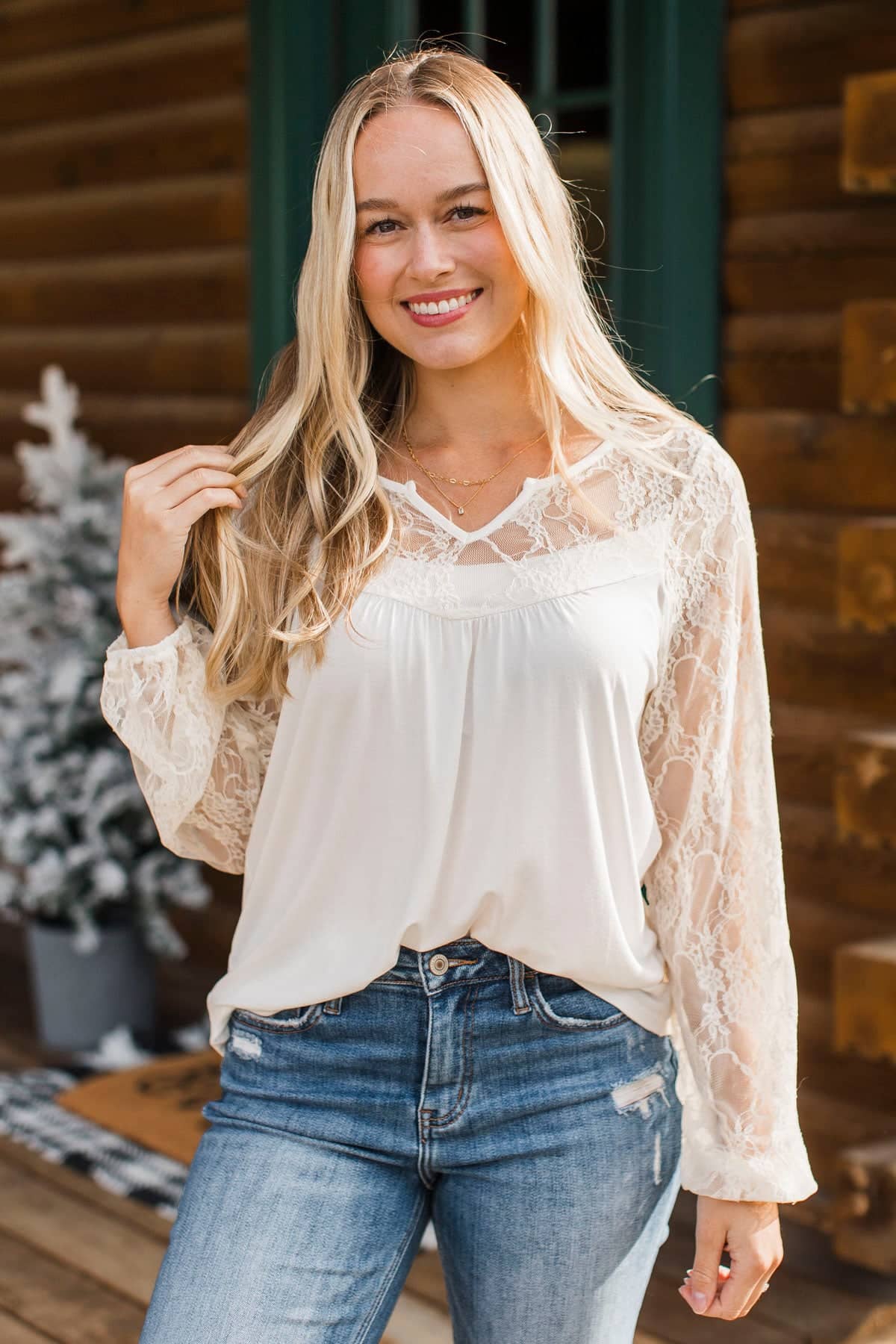 Whirlwind Romance Lace Sleeve Top- Ivory