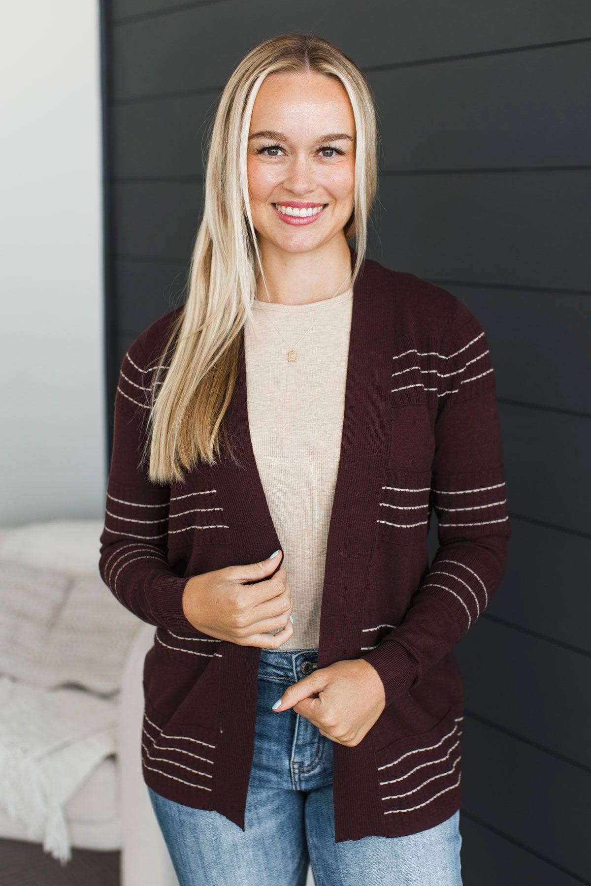 Keep In Mind Stitch Stripe Cardigan- Fig