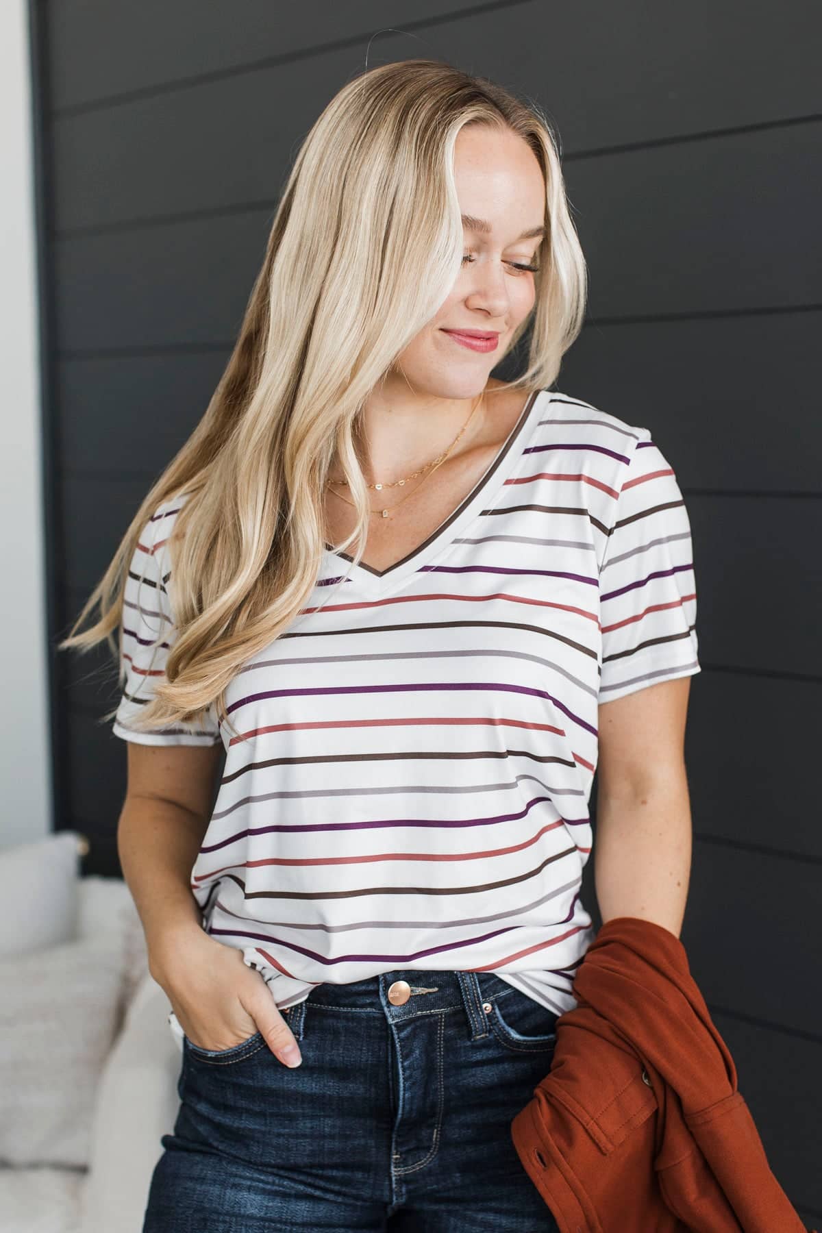 Exceptional Vibes V-Neck Striped Top- Ivory Multi