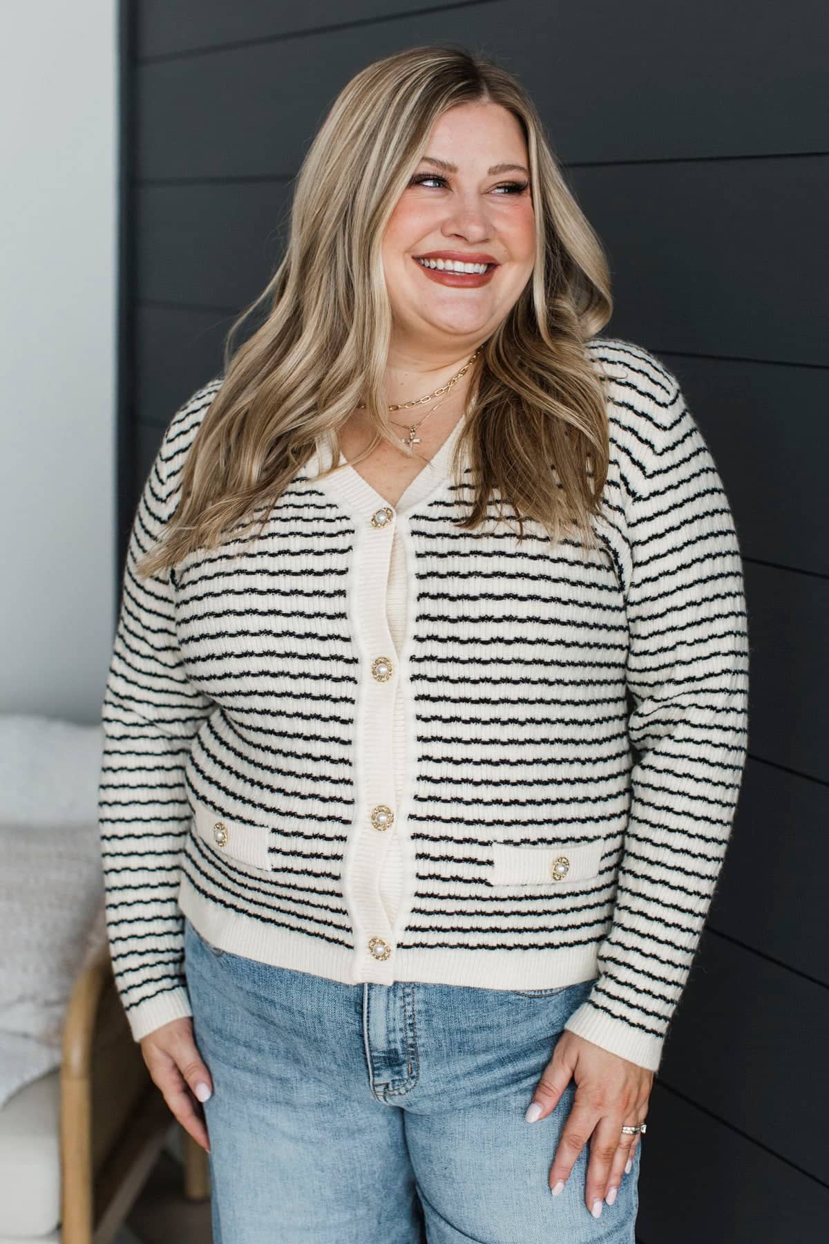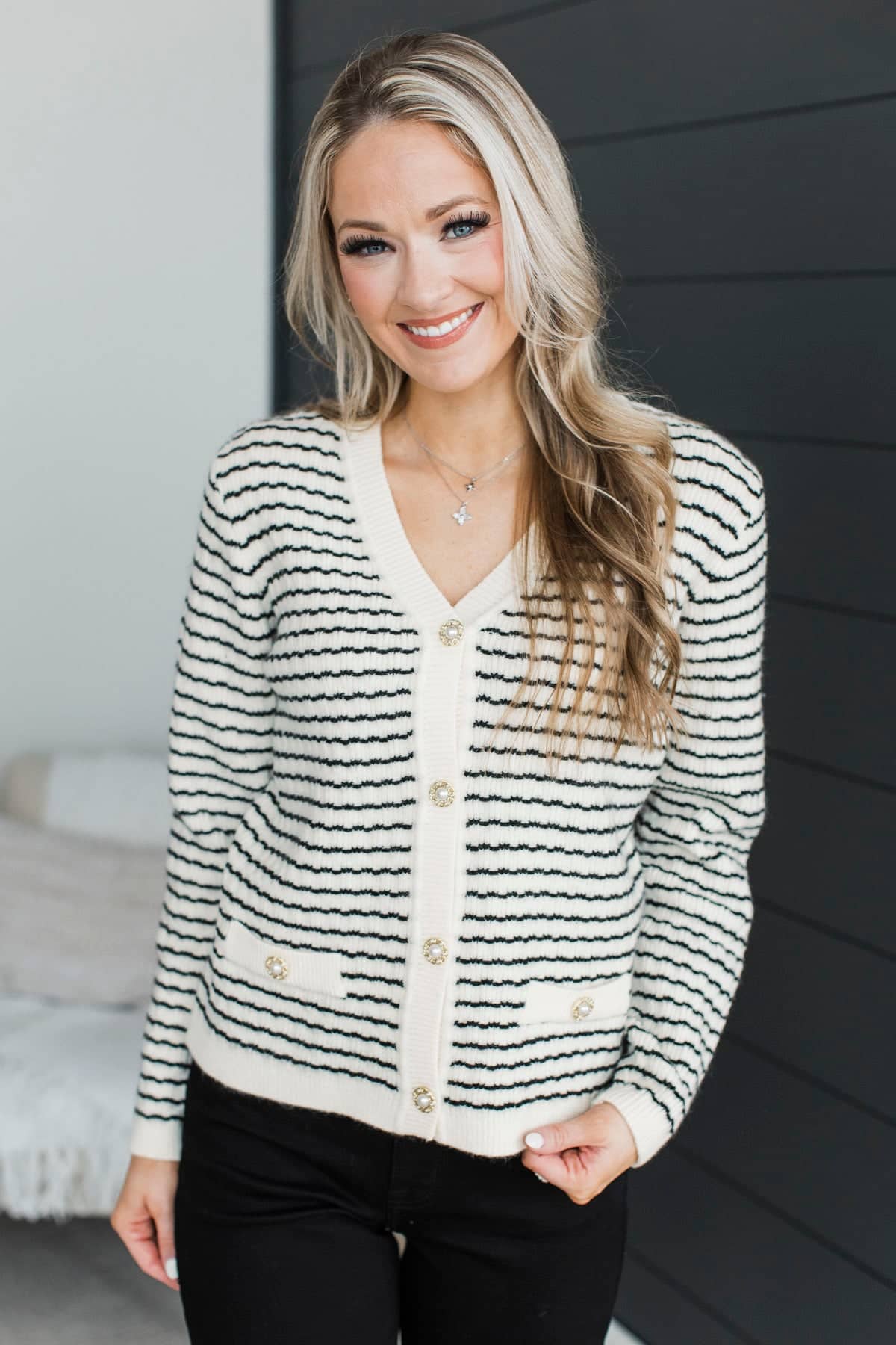 Easy Elegance Striped Knit Cardigan- Ivory & Black