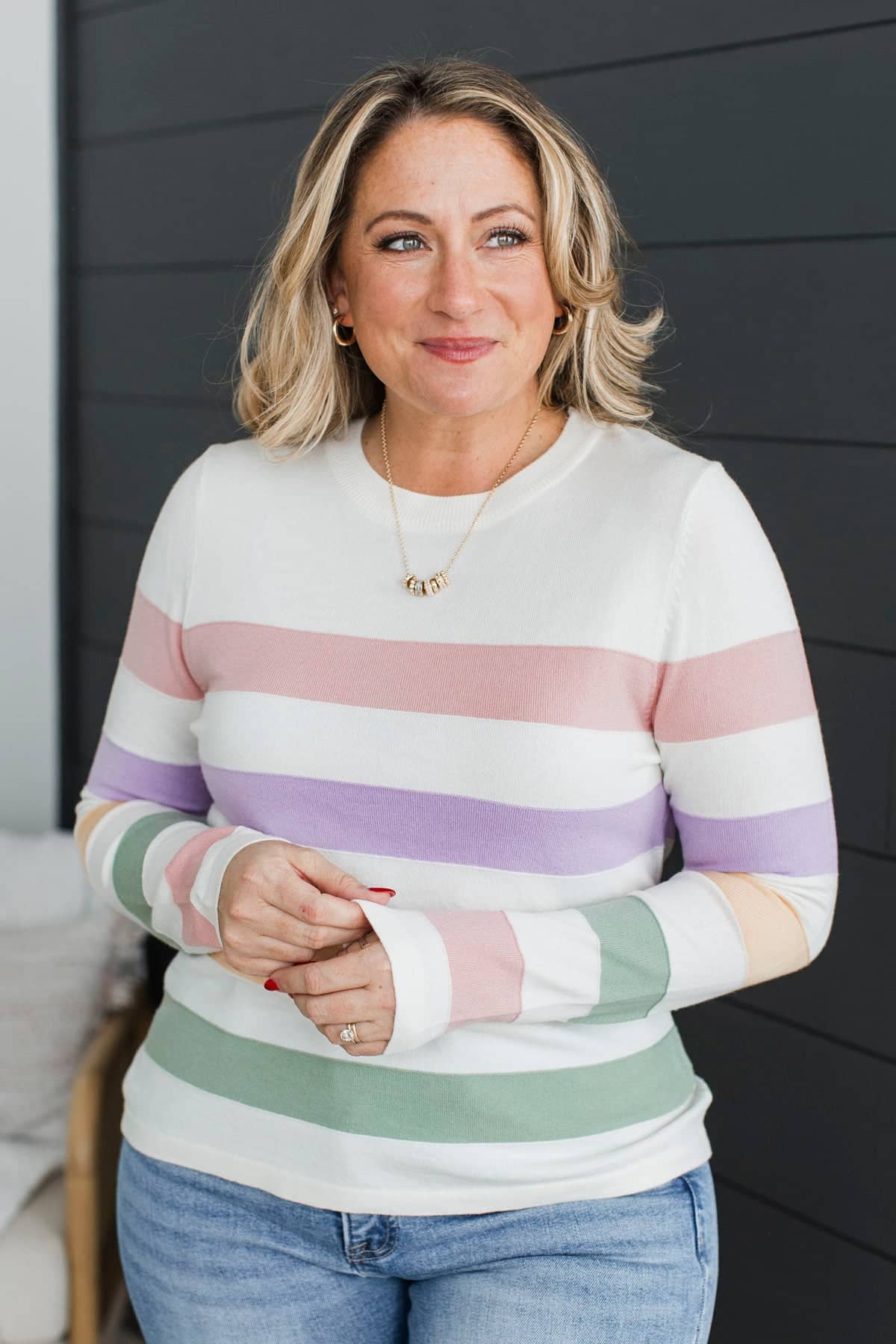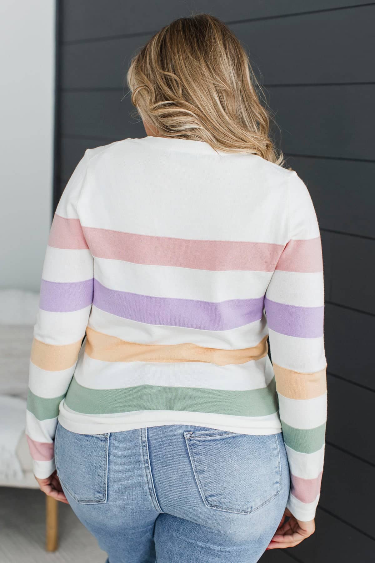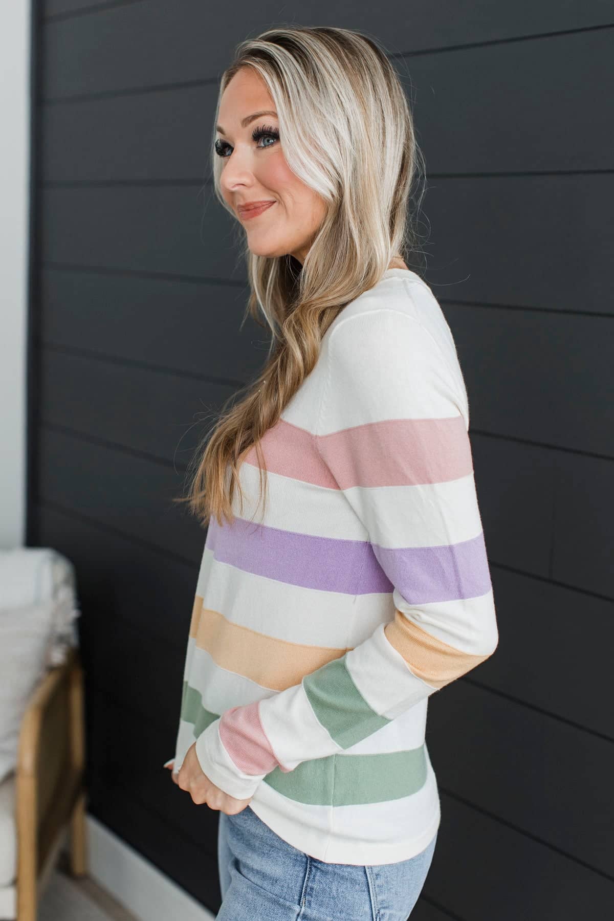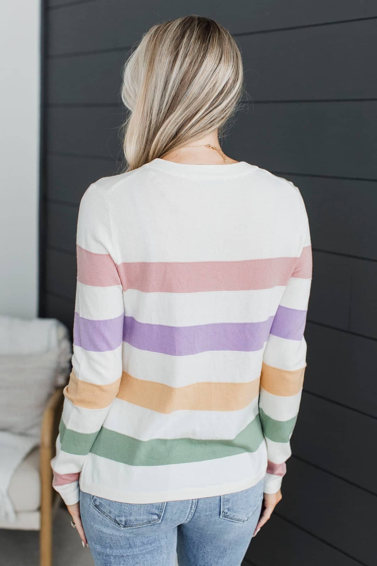 Make The Time Multi-Color Stripe Sweater- Ivory