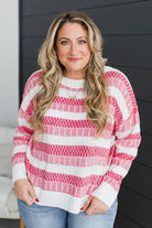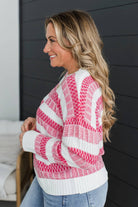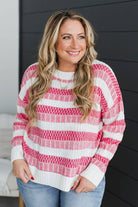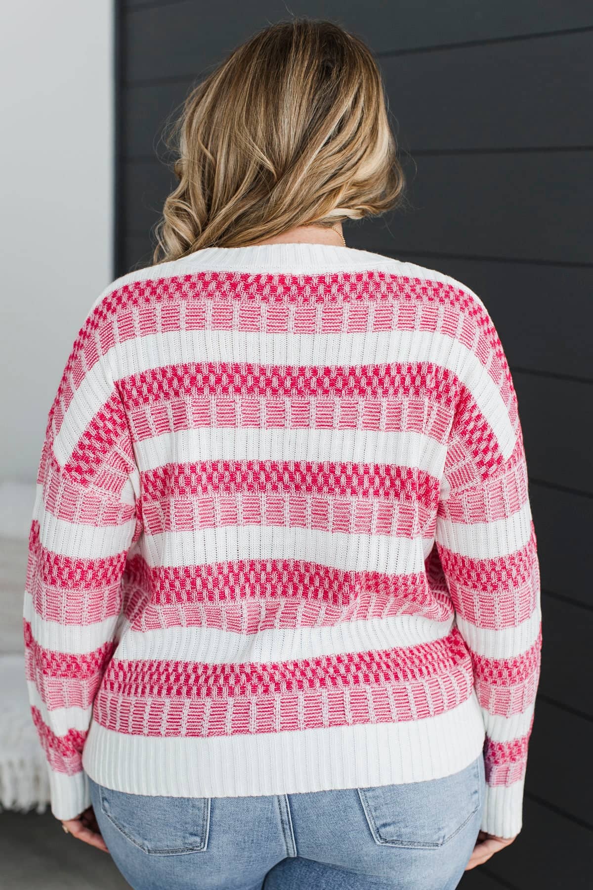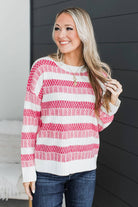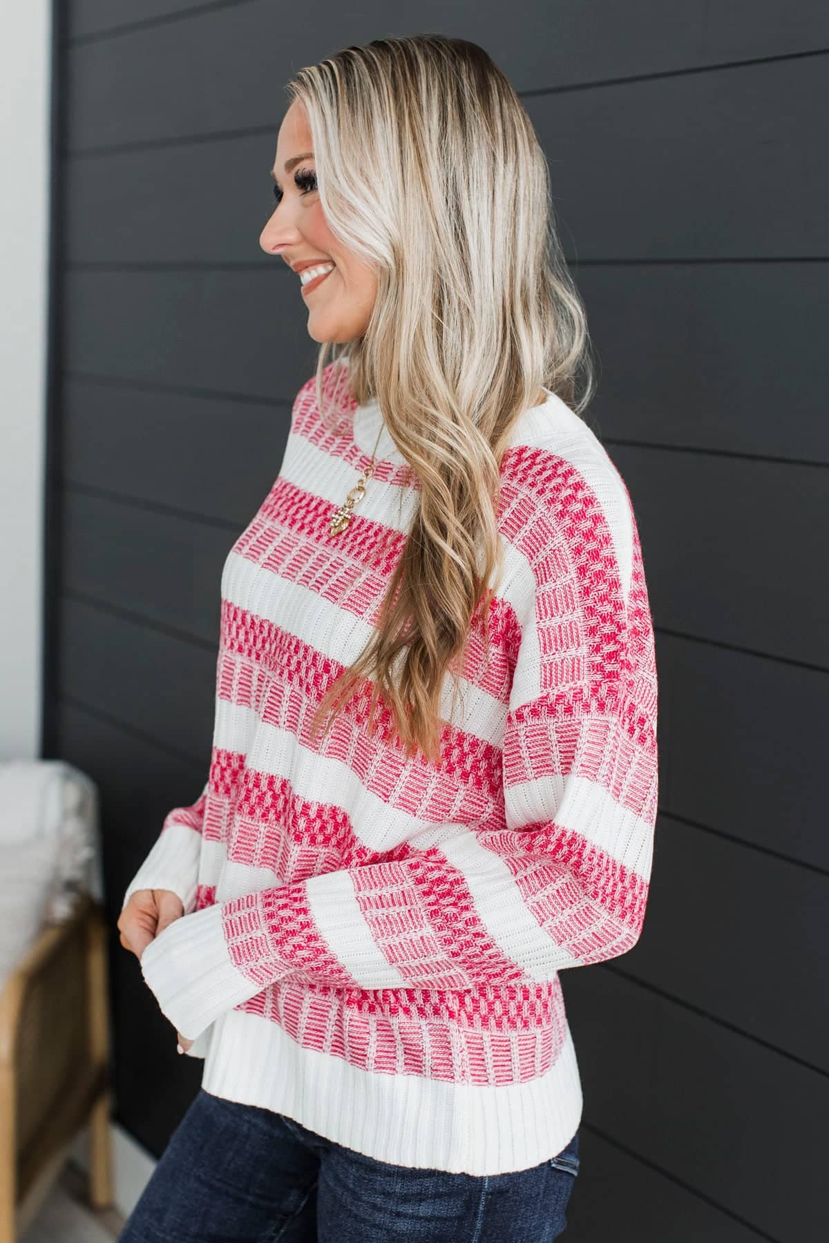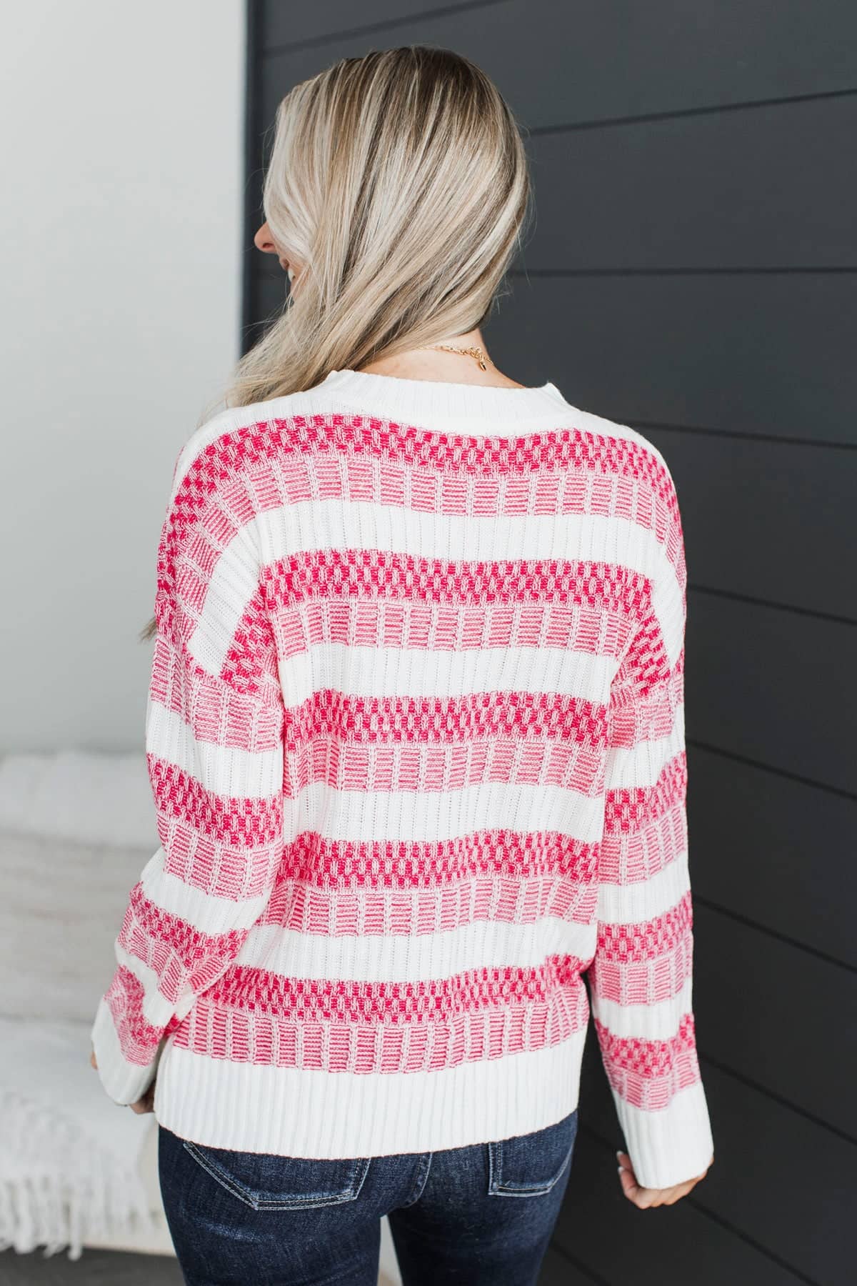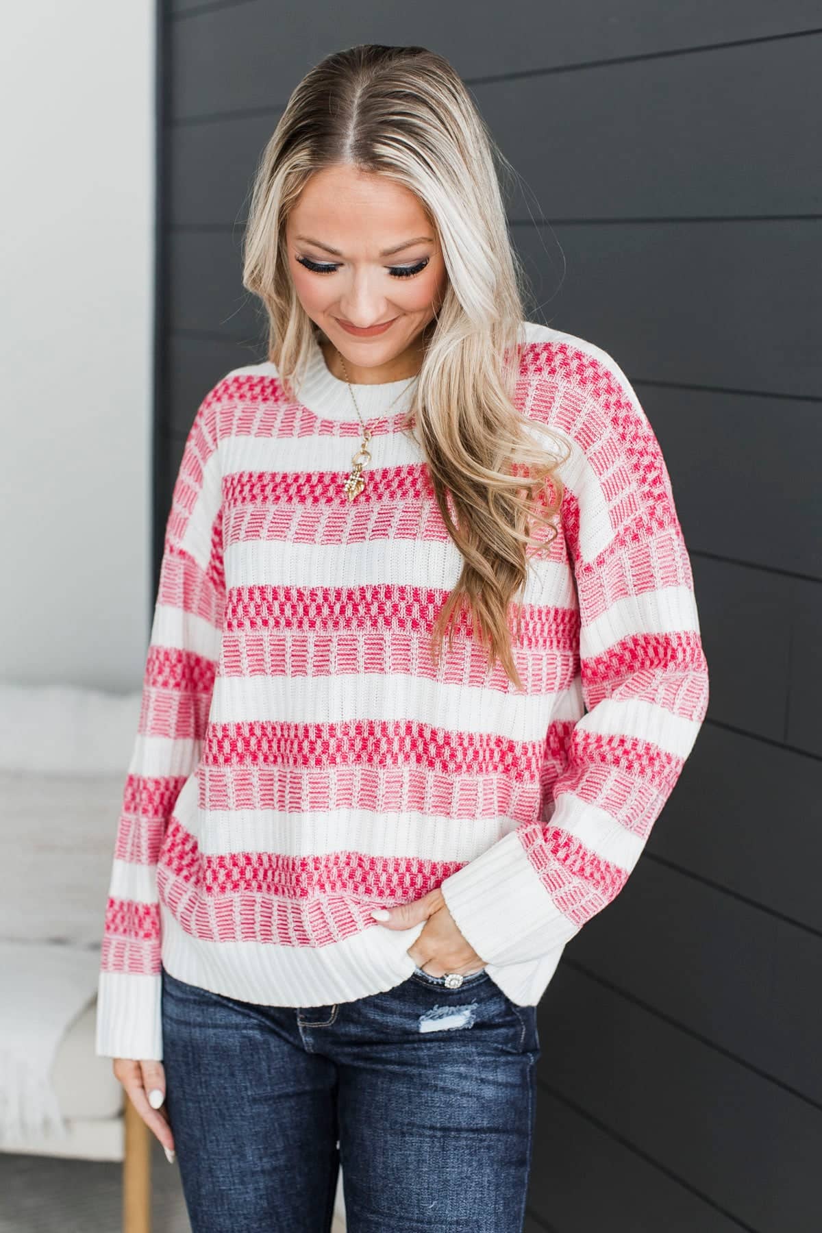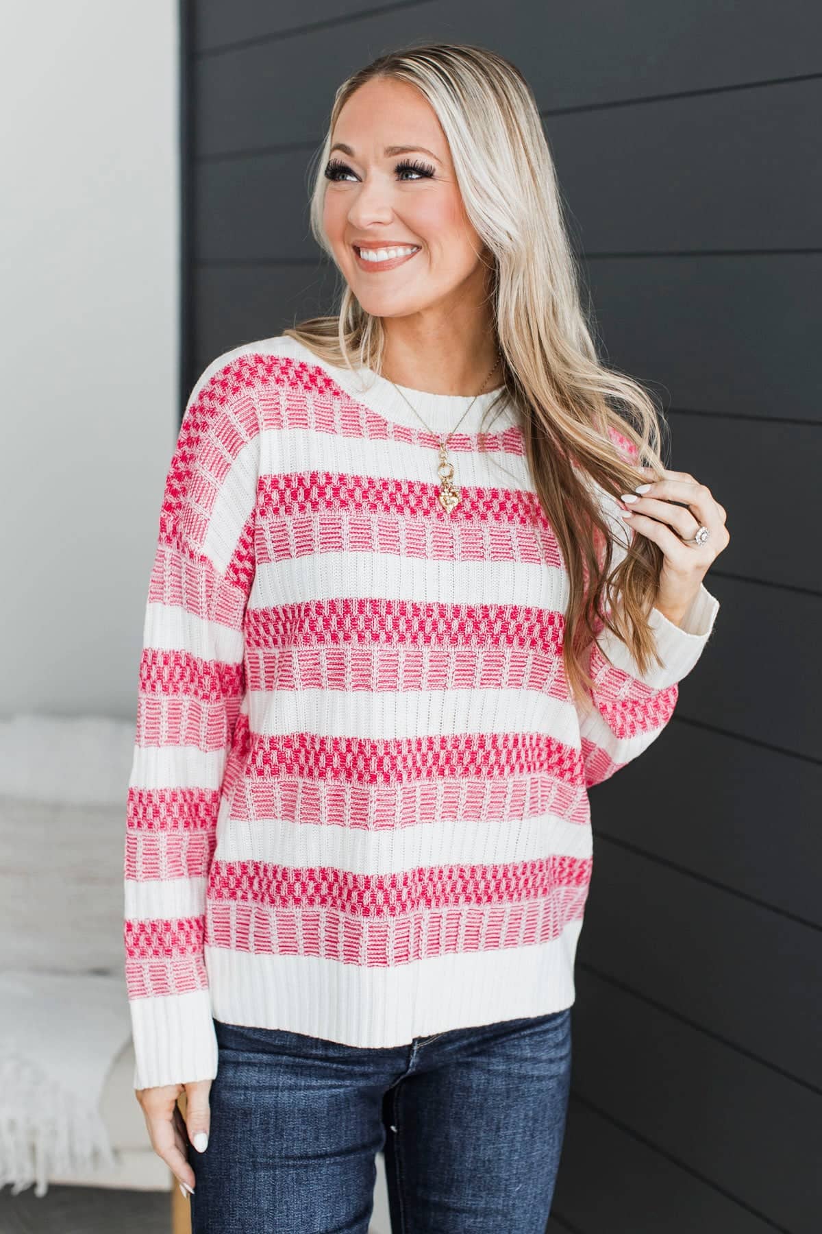 Smiling Through Life Knit Stripe Sweater- Ivory & Hot Pink