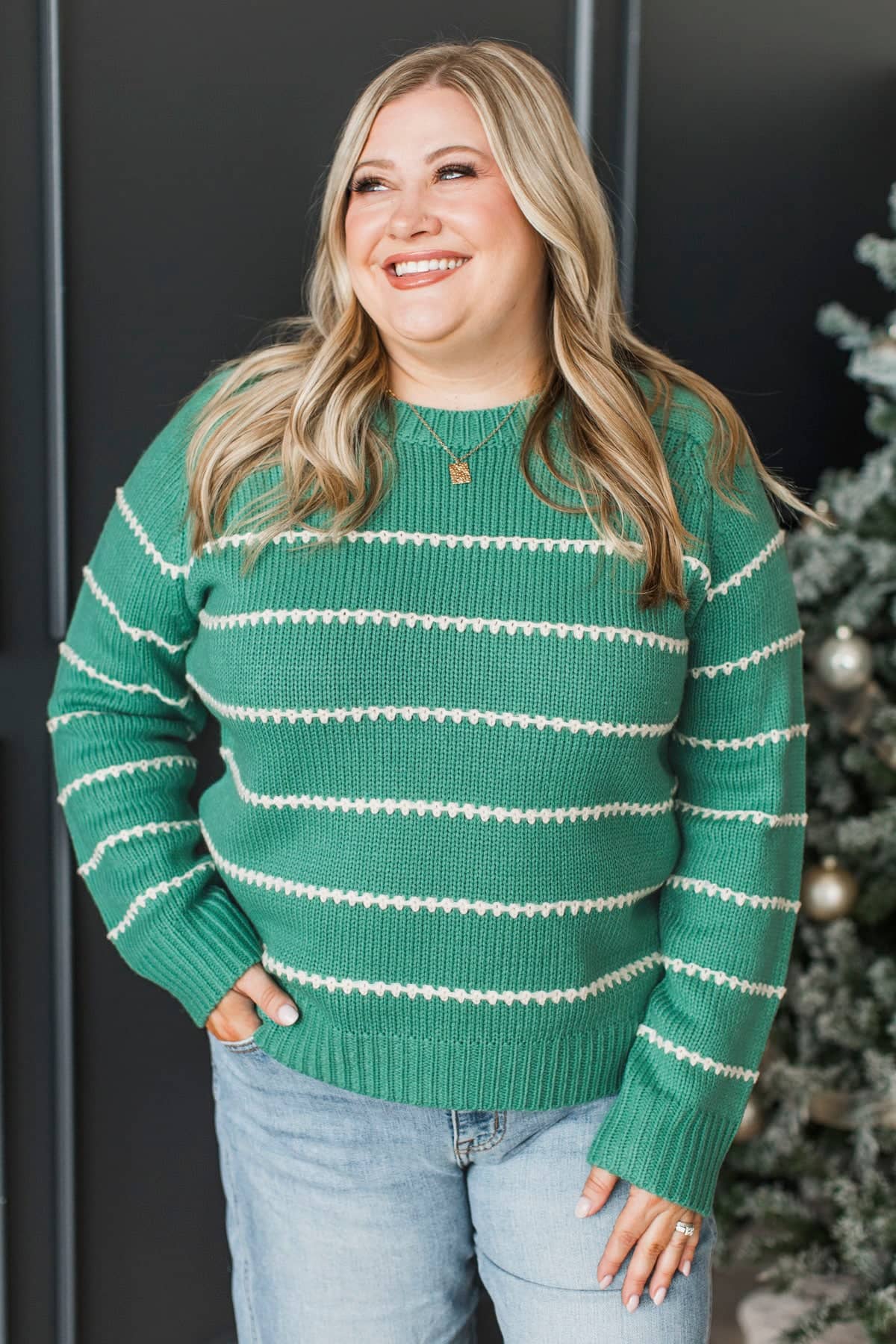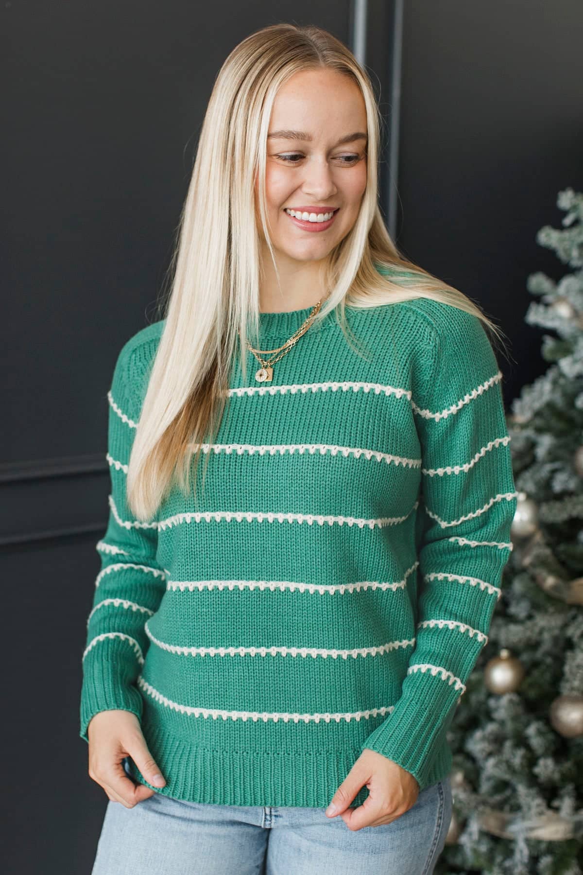 Beyond Grateful Stitch Stripe Sweater- Jade