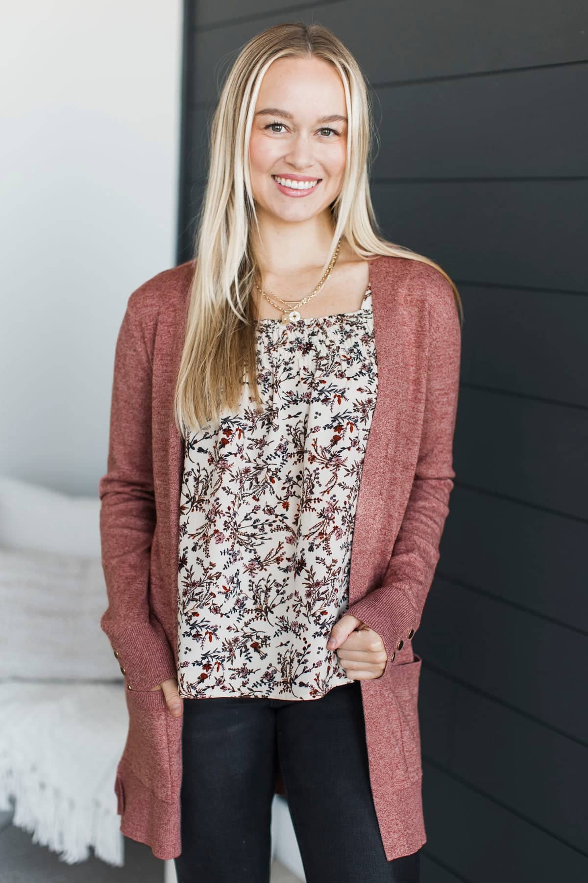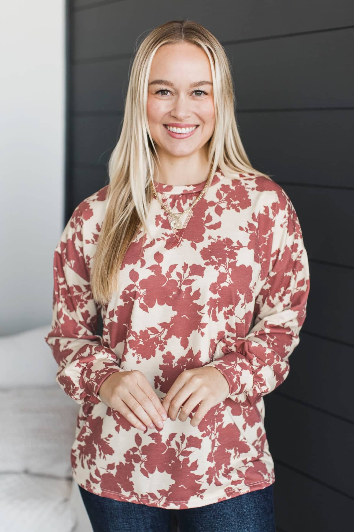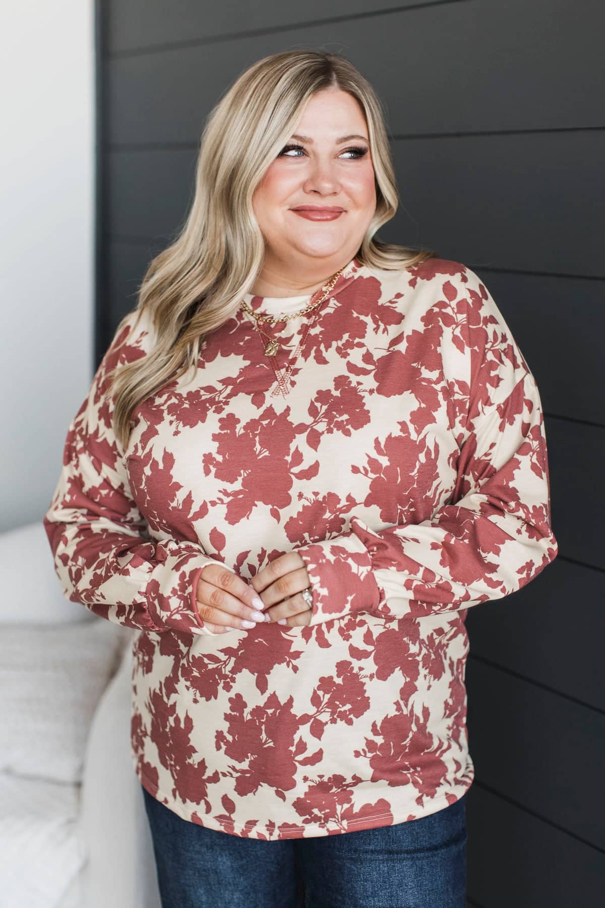 Feeling Sentimental Floral Top- Light Beige & Brick