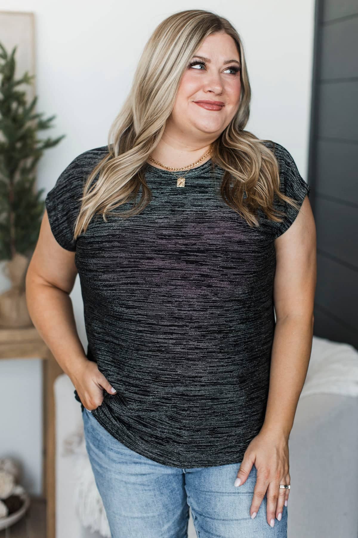 Irresistible Looks Short Sleeve Lurex Top- Black & Silver