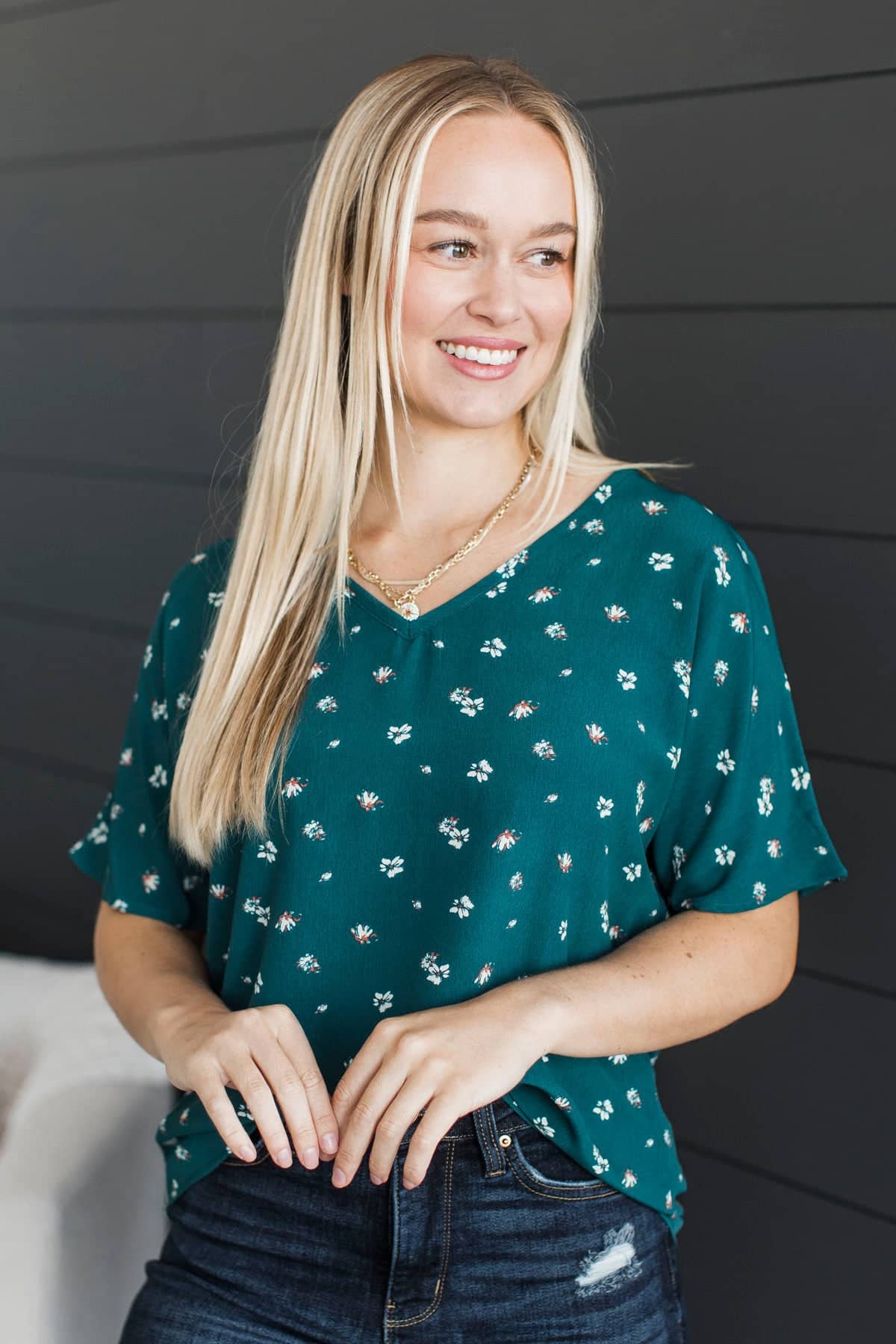 Call Me Lovely Floral Henley Top- White & Burgundy