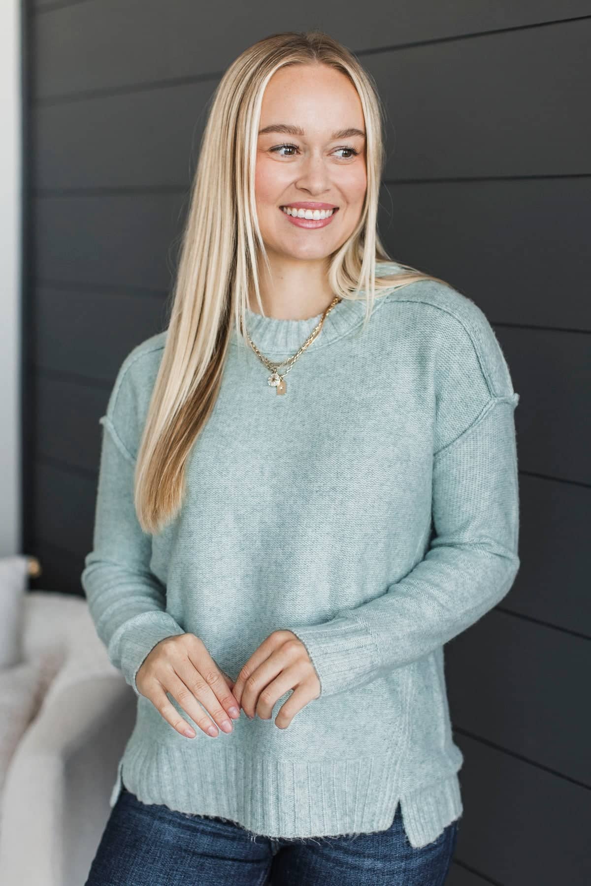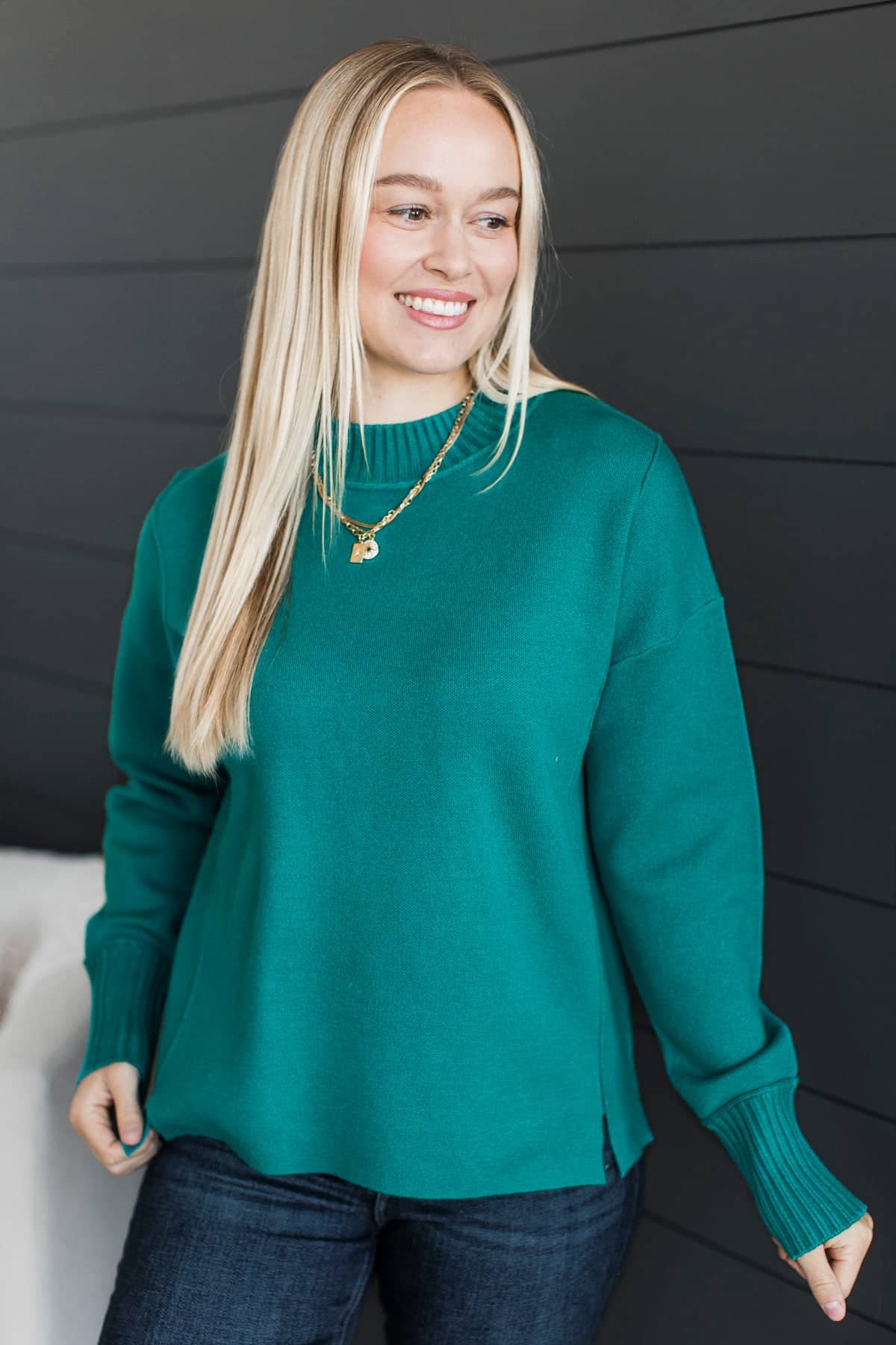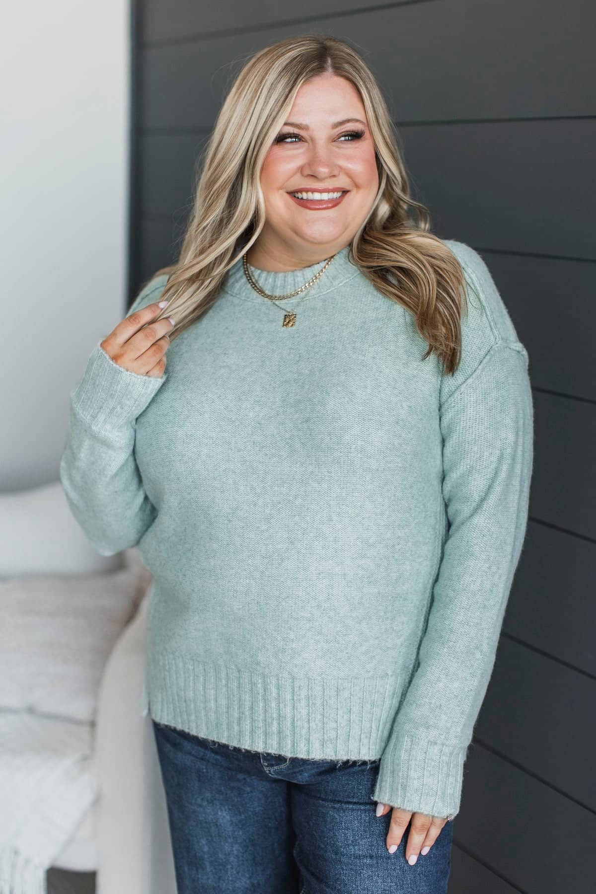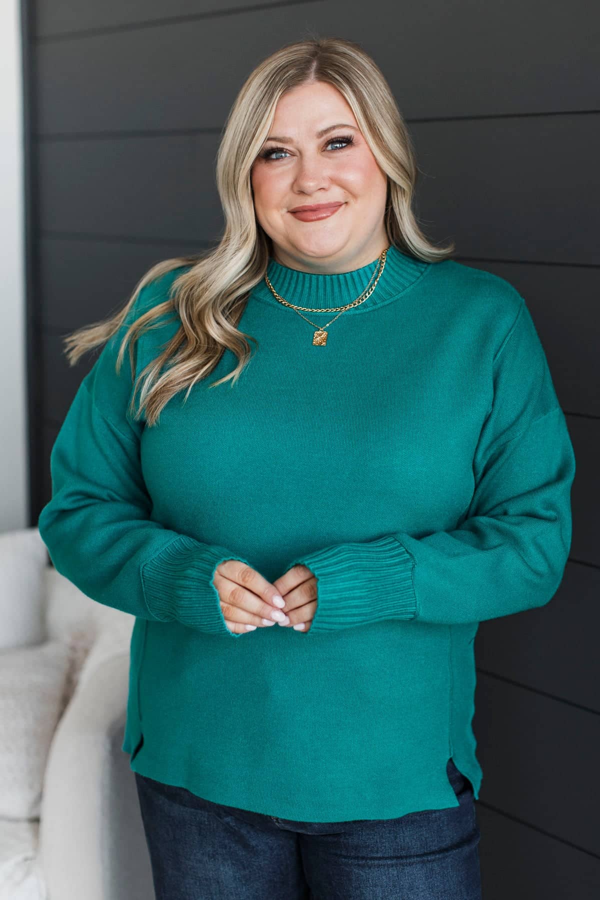 Truly Marvelous Mock Neck Sweater- Jade Blue