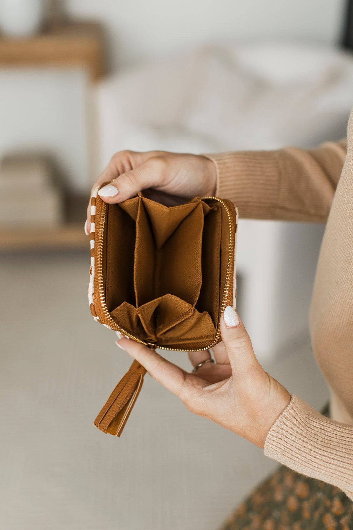 Always Fabulous Woven Card Wallet- Checkered Brown