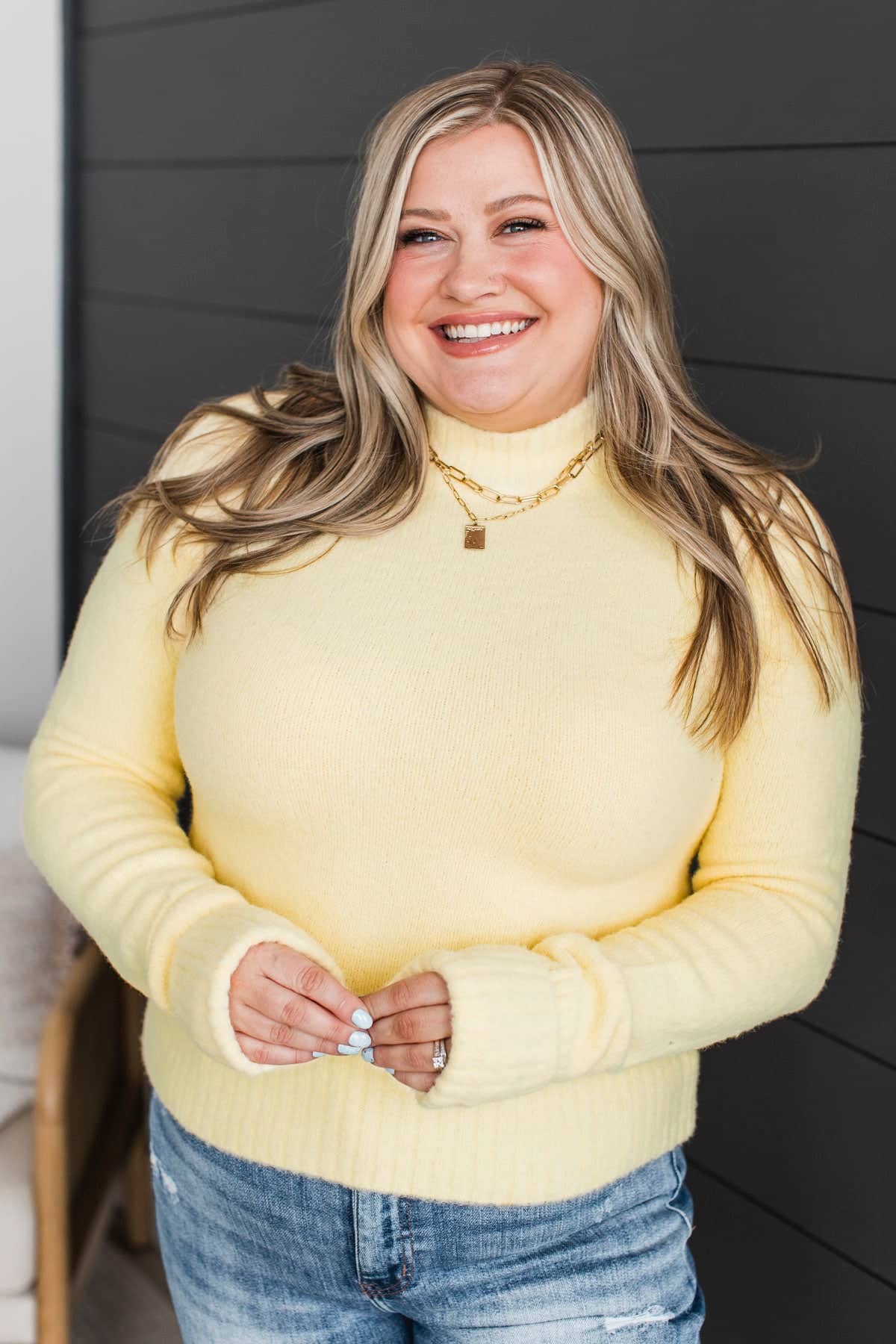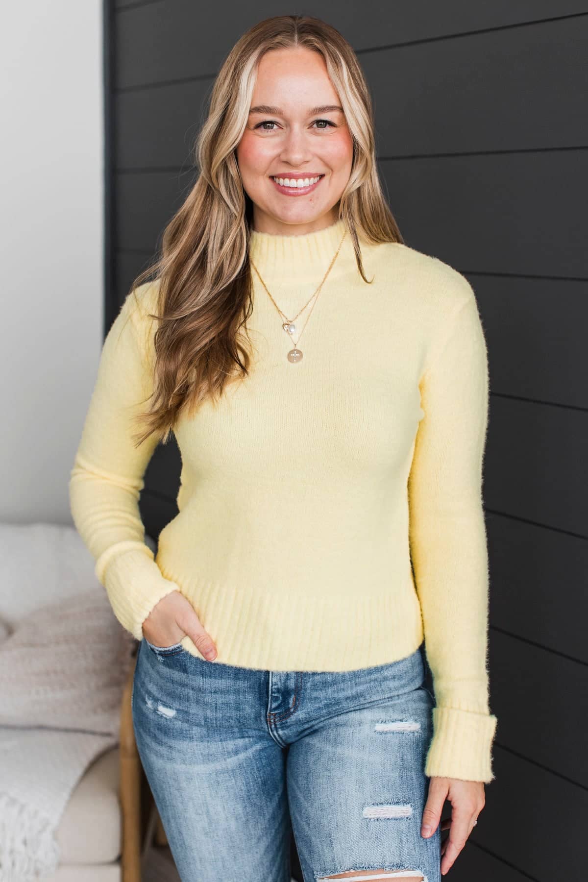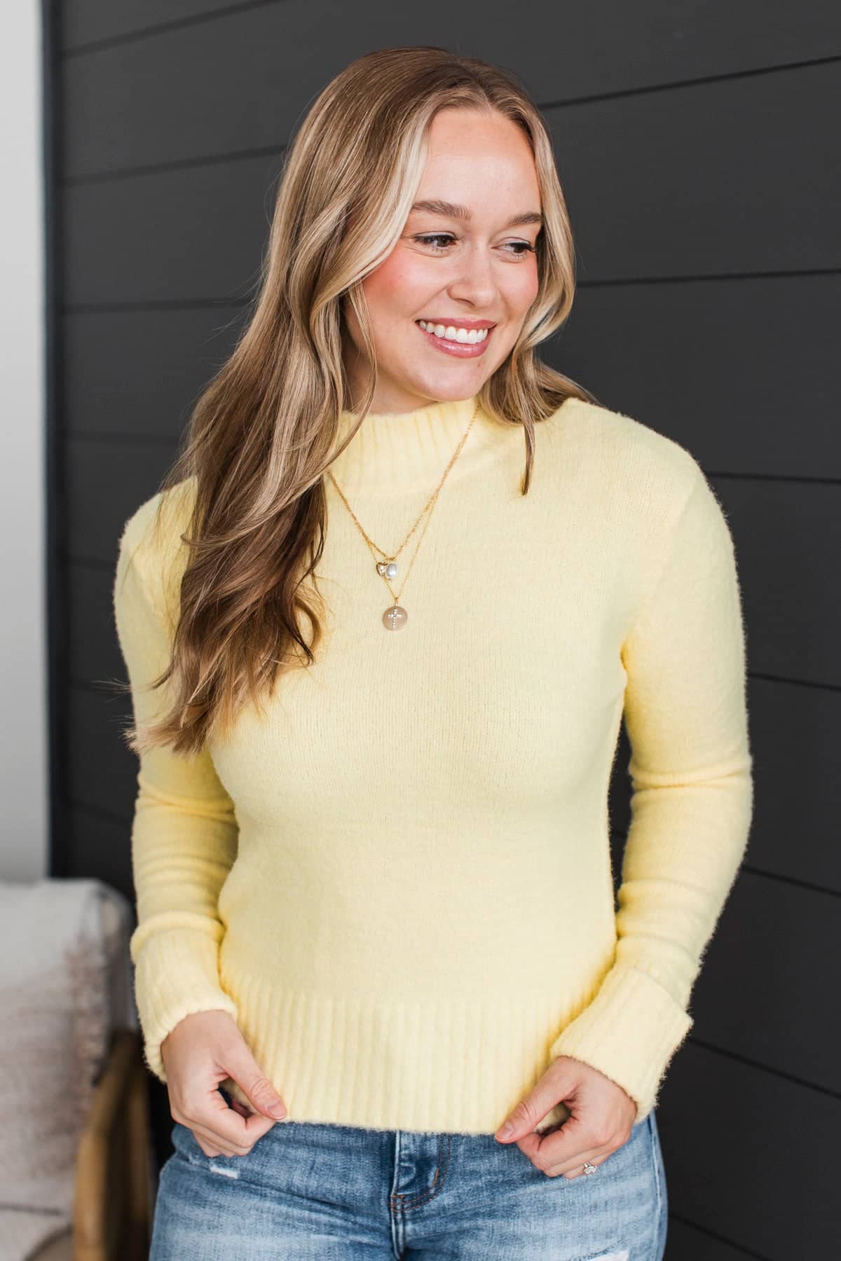 Always Mine Mock Neck Sweater- Yellow