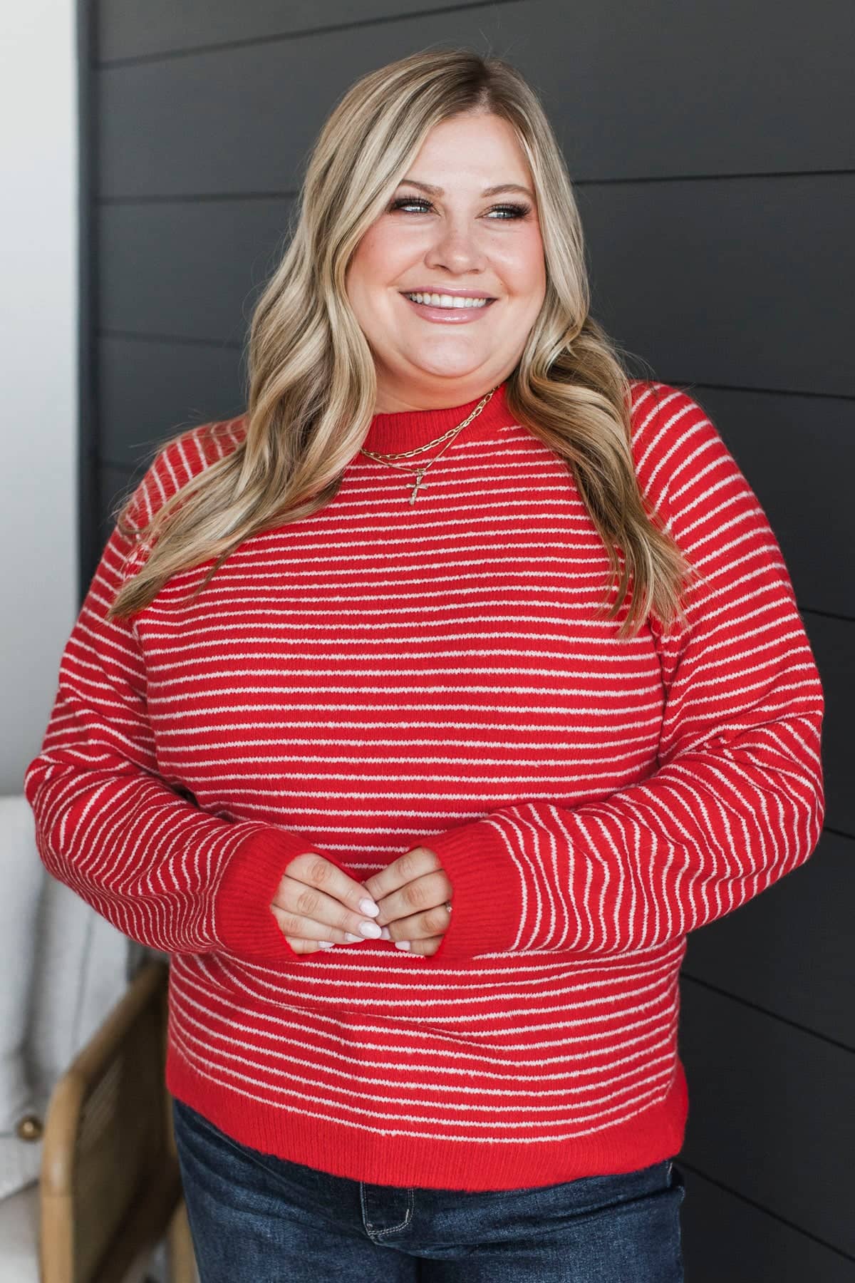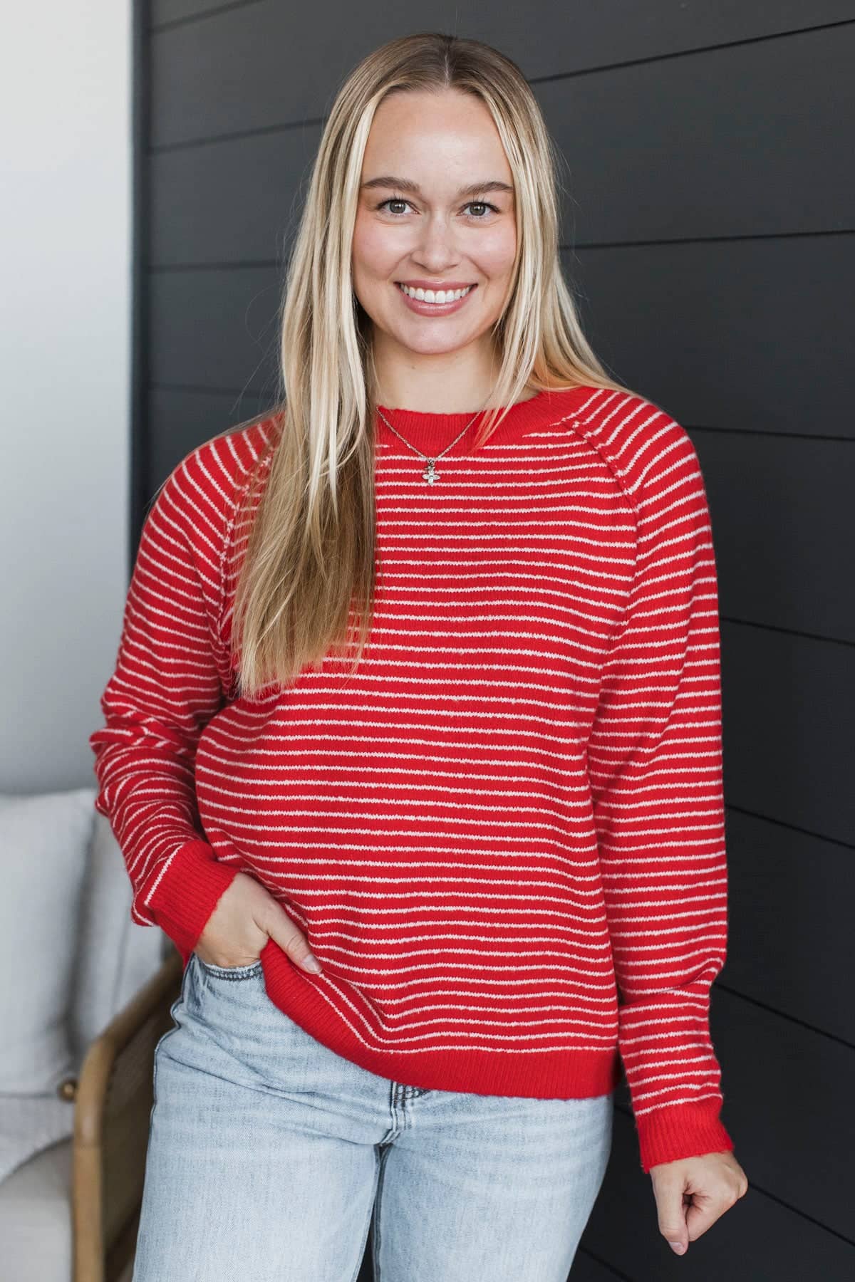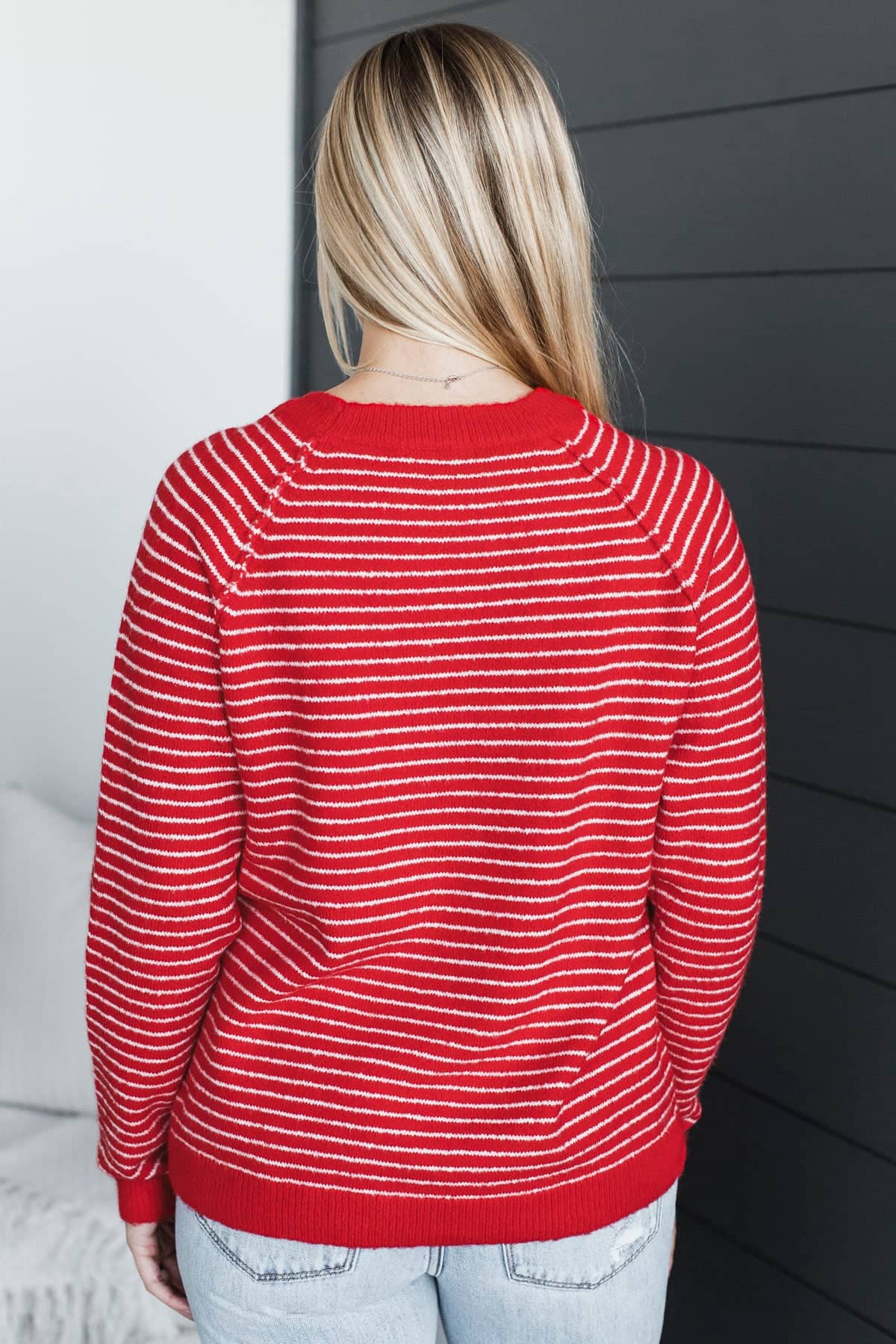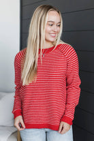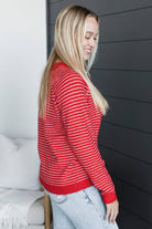 Always Smiling Striped Knit Sweater- Red