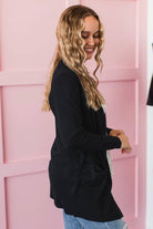 Around The Corner Open Front Knit Cardigan- Black