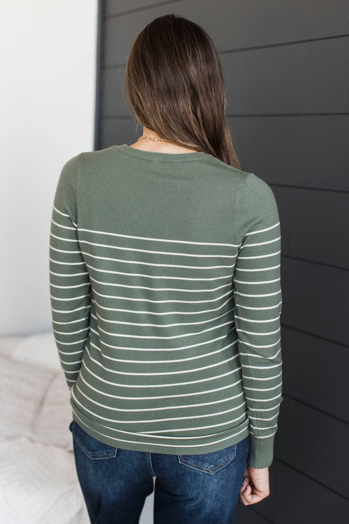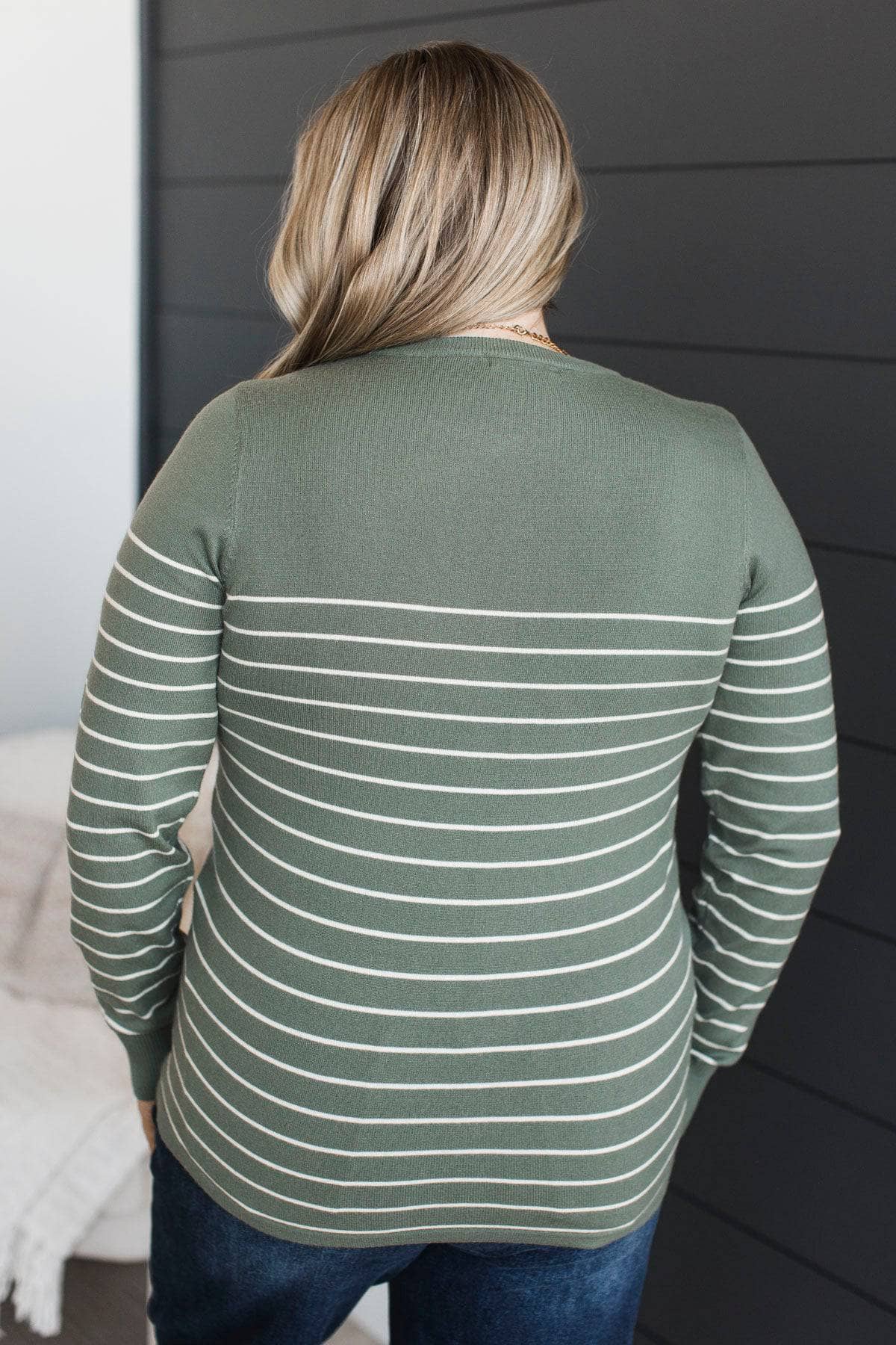 Awe Inspiring Striped Knit Sweater- Dusty Jade