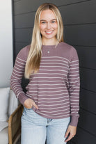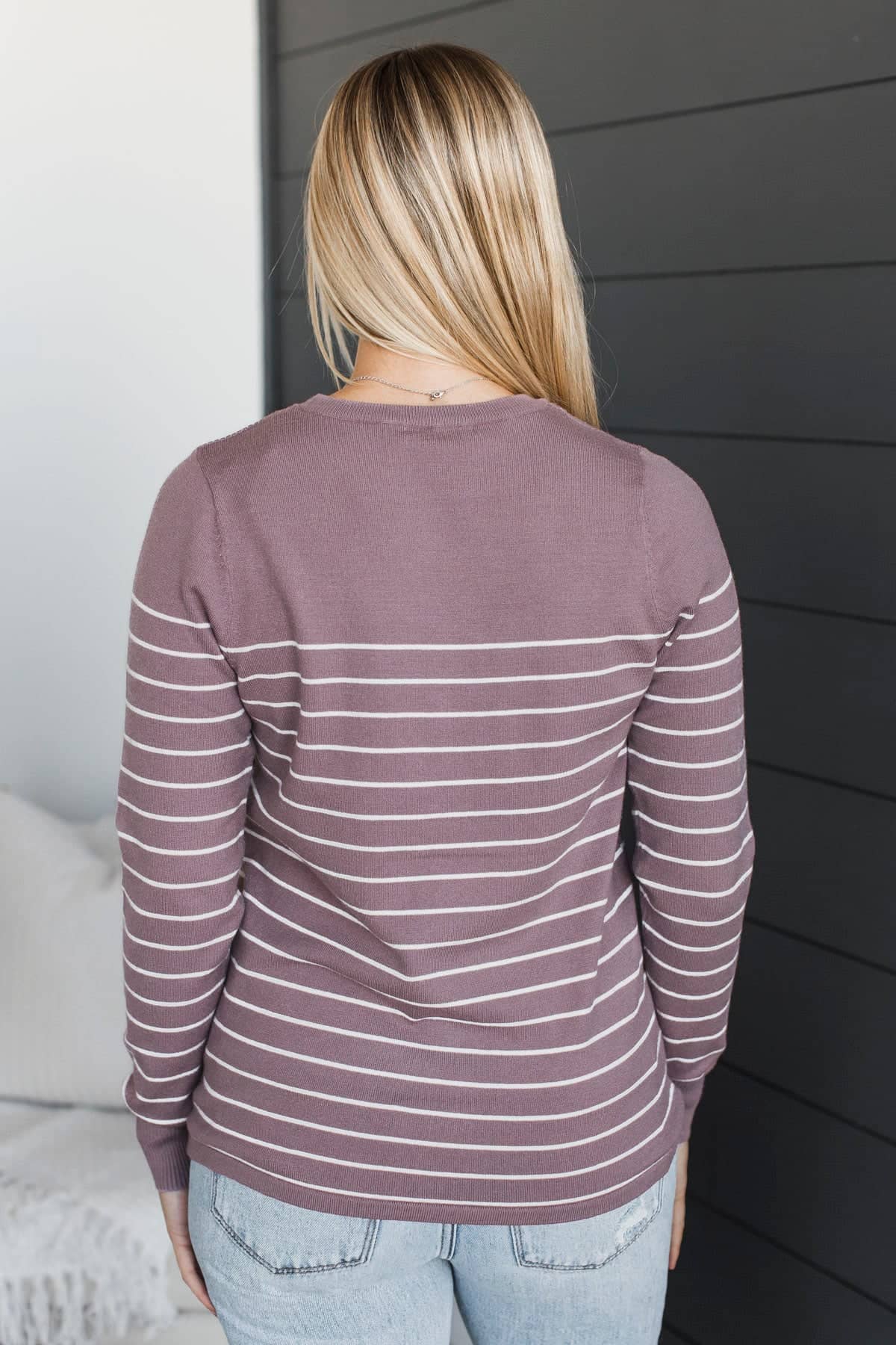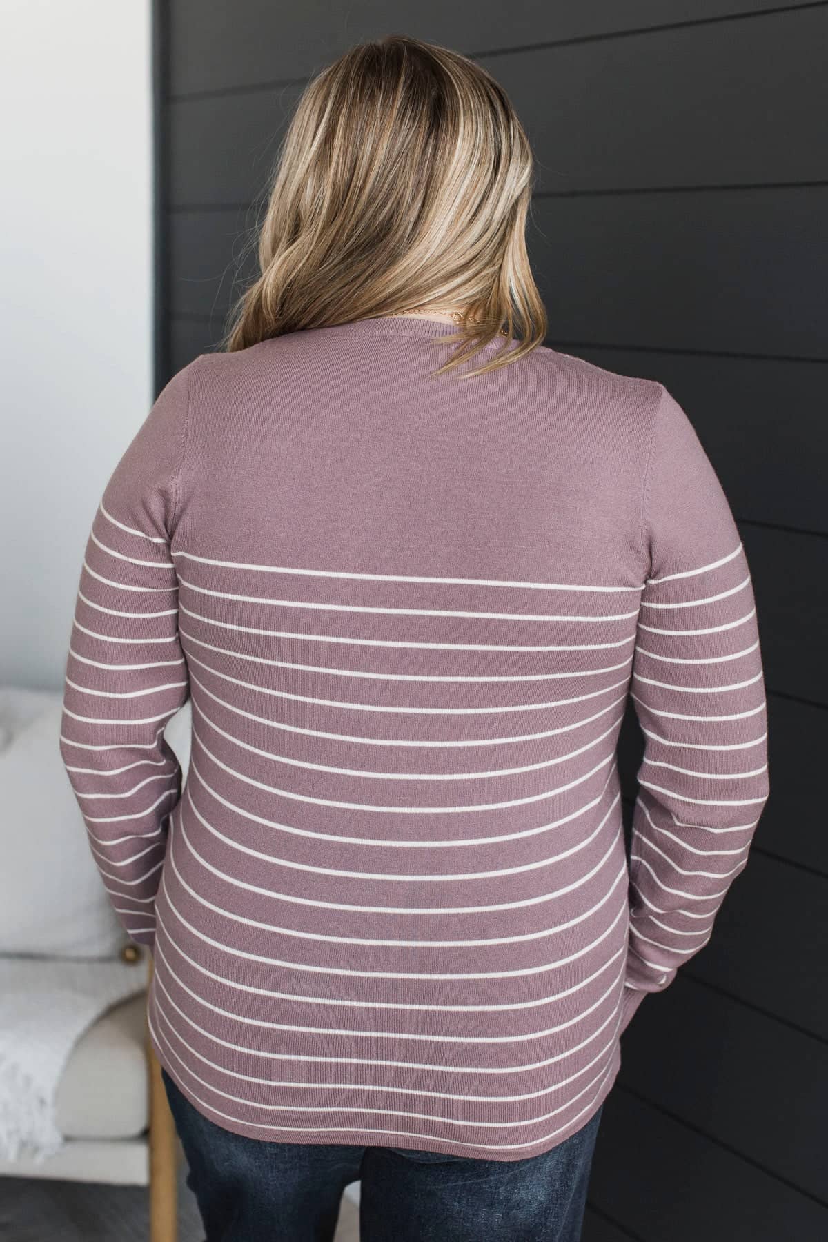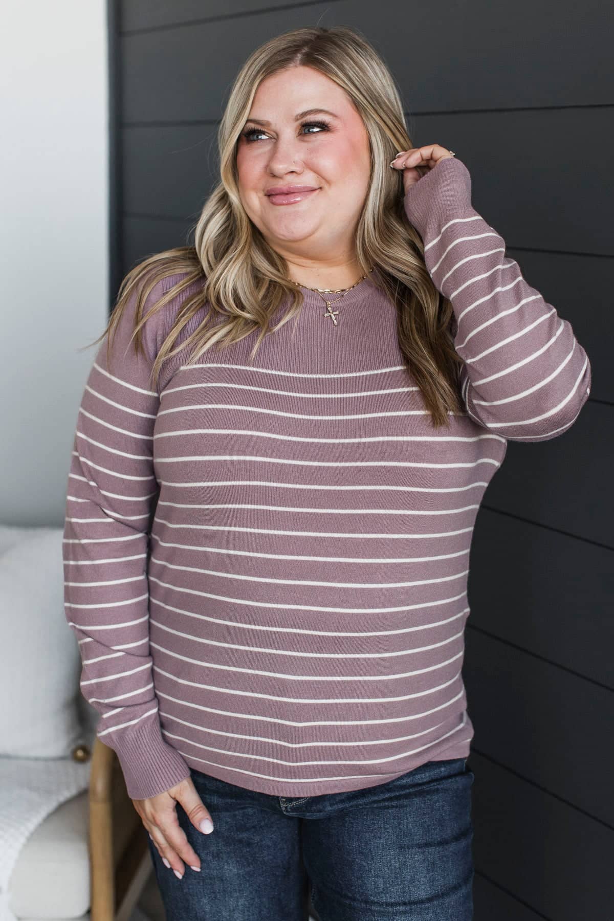 Awe Inspiring Striped Knit Sweater- Dusty Lavender