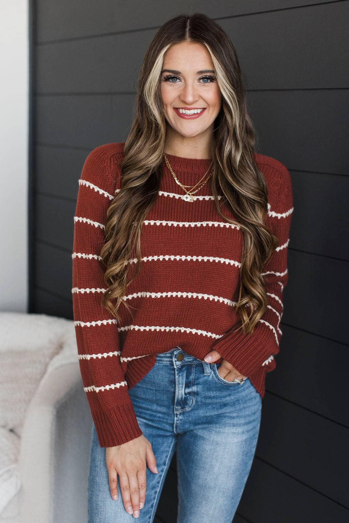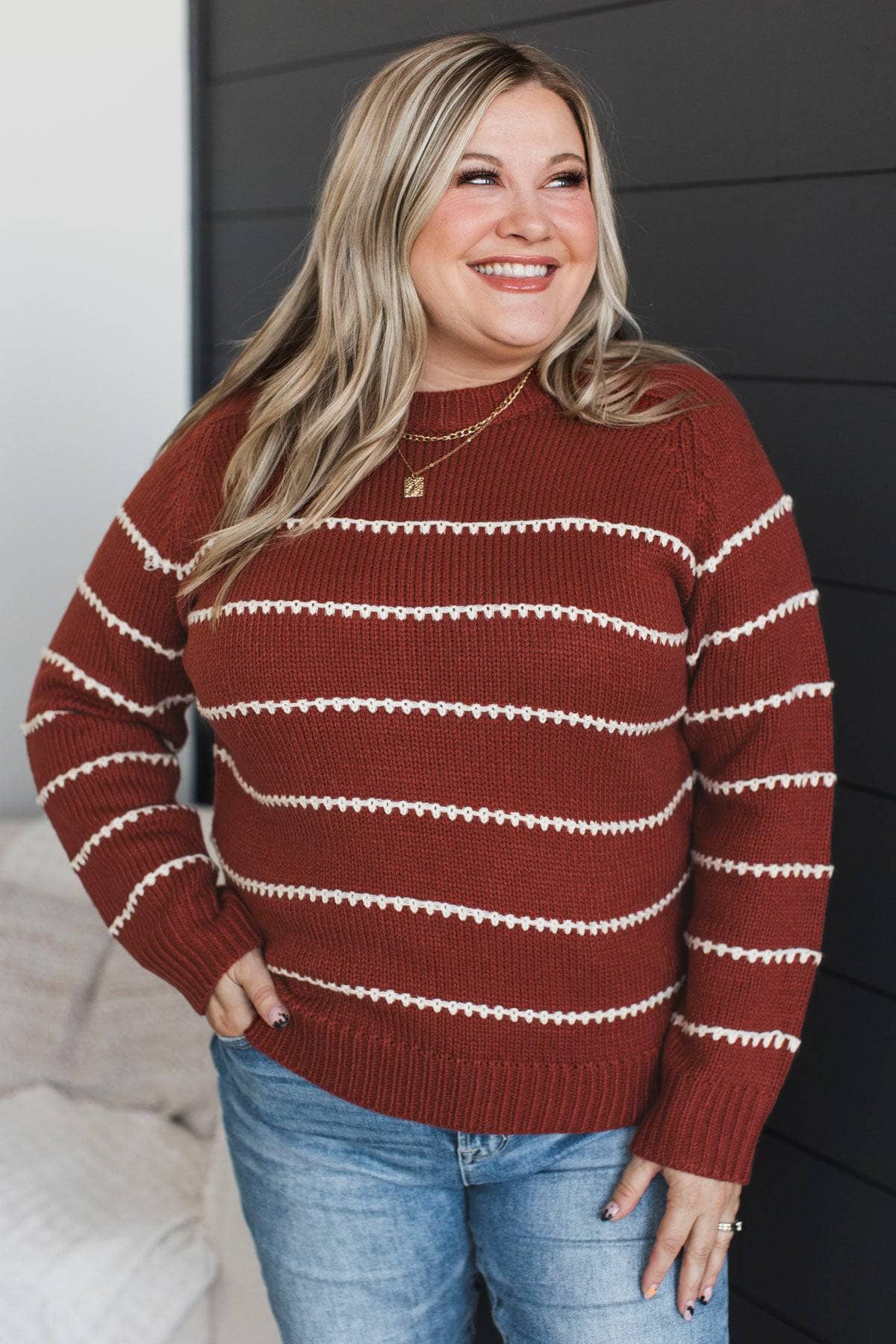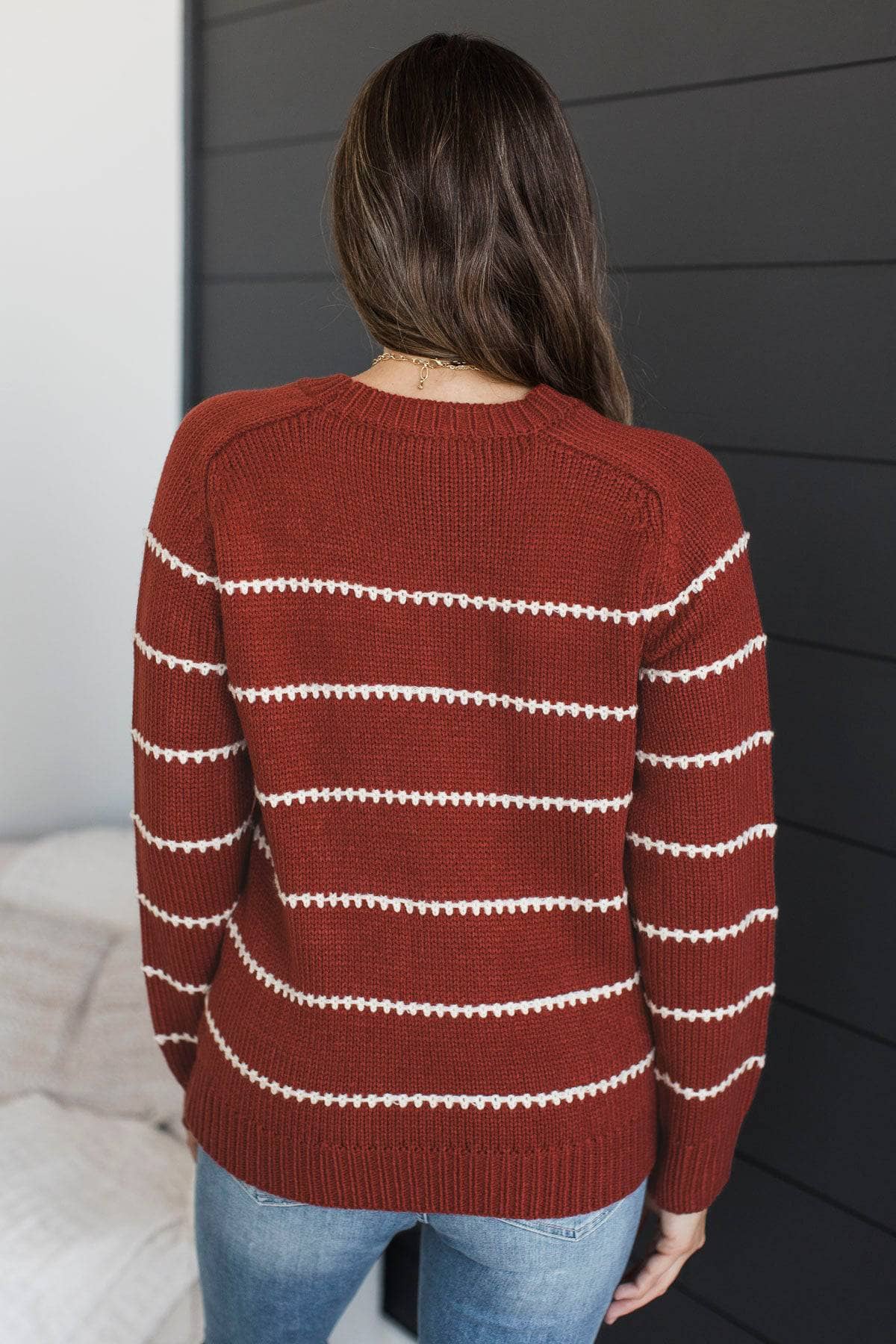 Beyond Grateful Stitch Stripe Sweater- Dark Rust