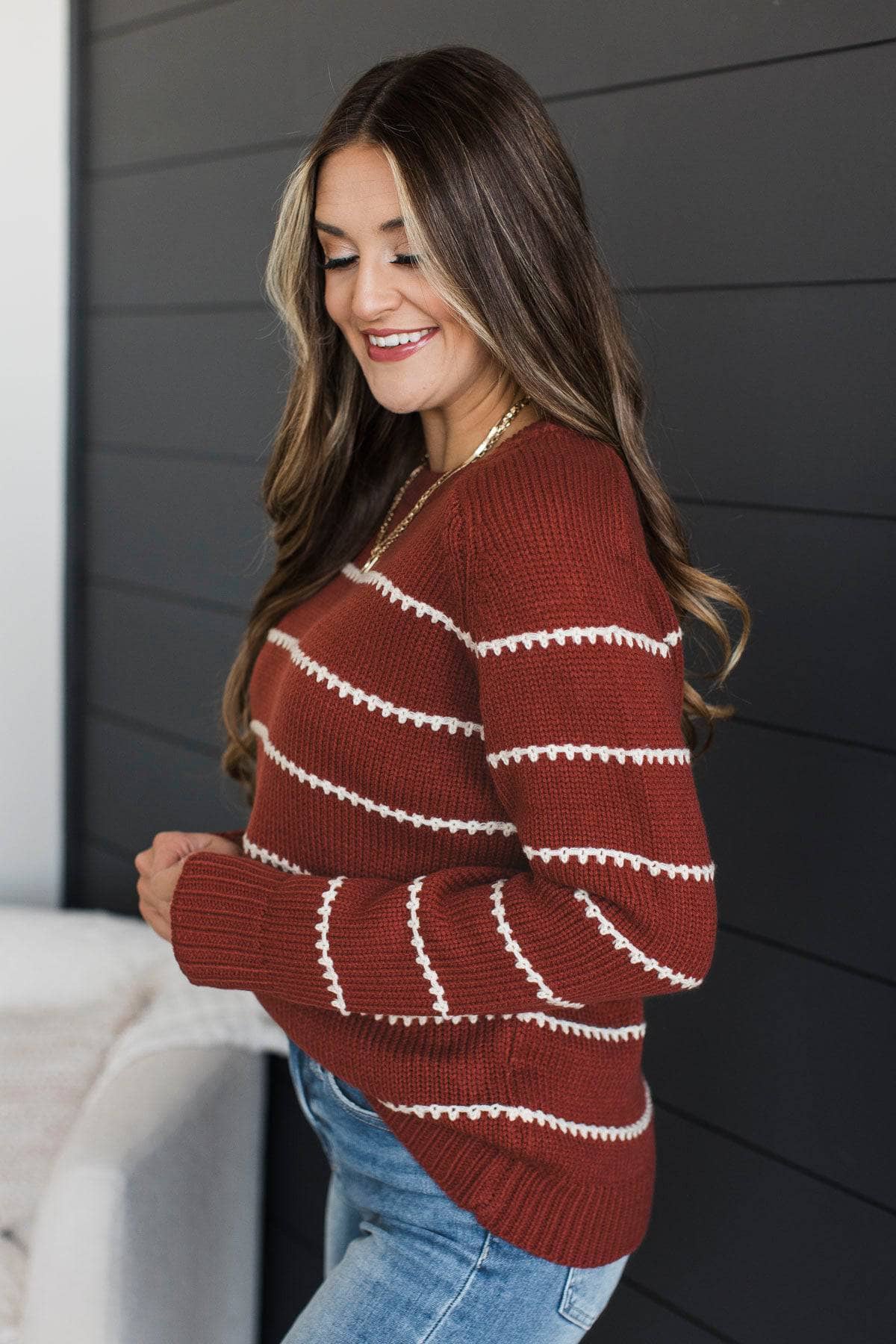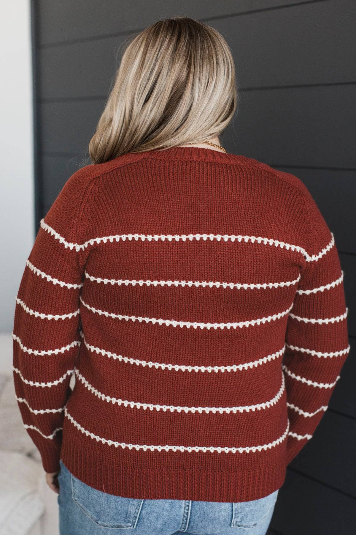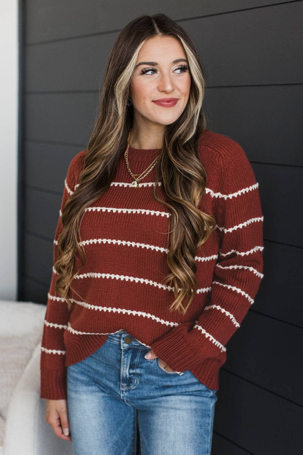 Beyond Grateful Stitch Stripe Sweater- Dark Rust