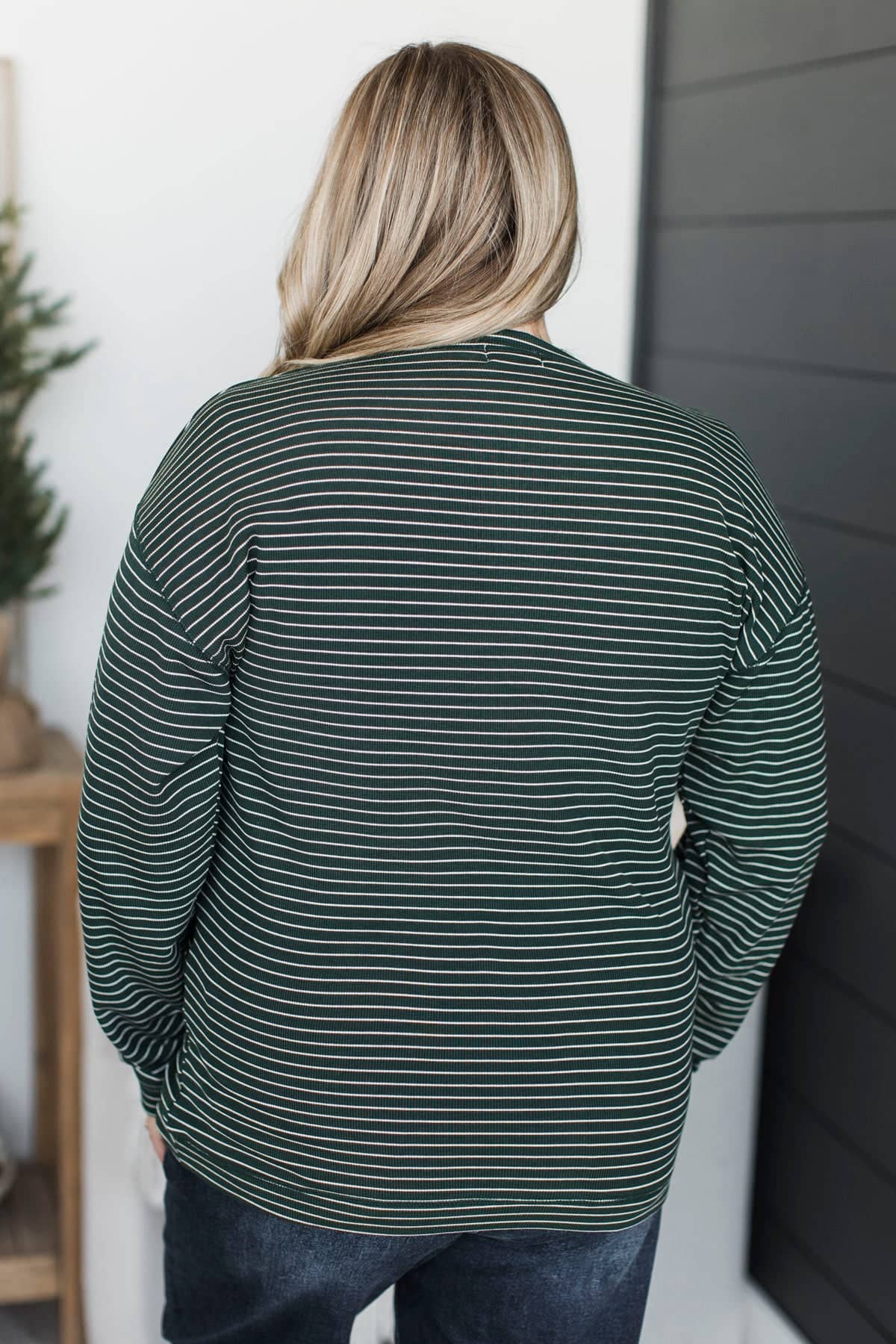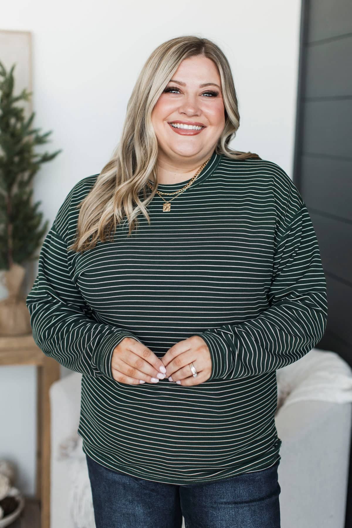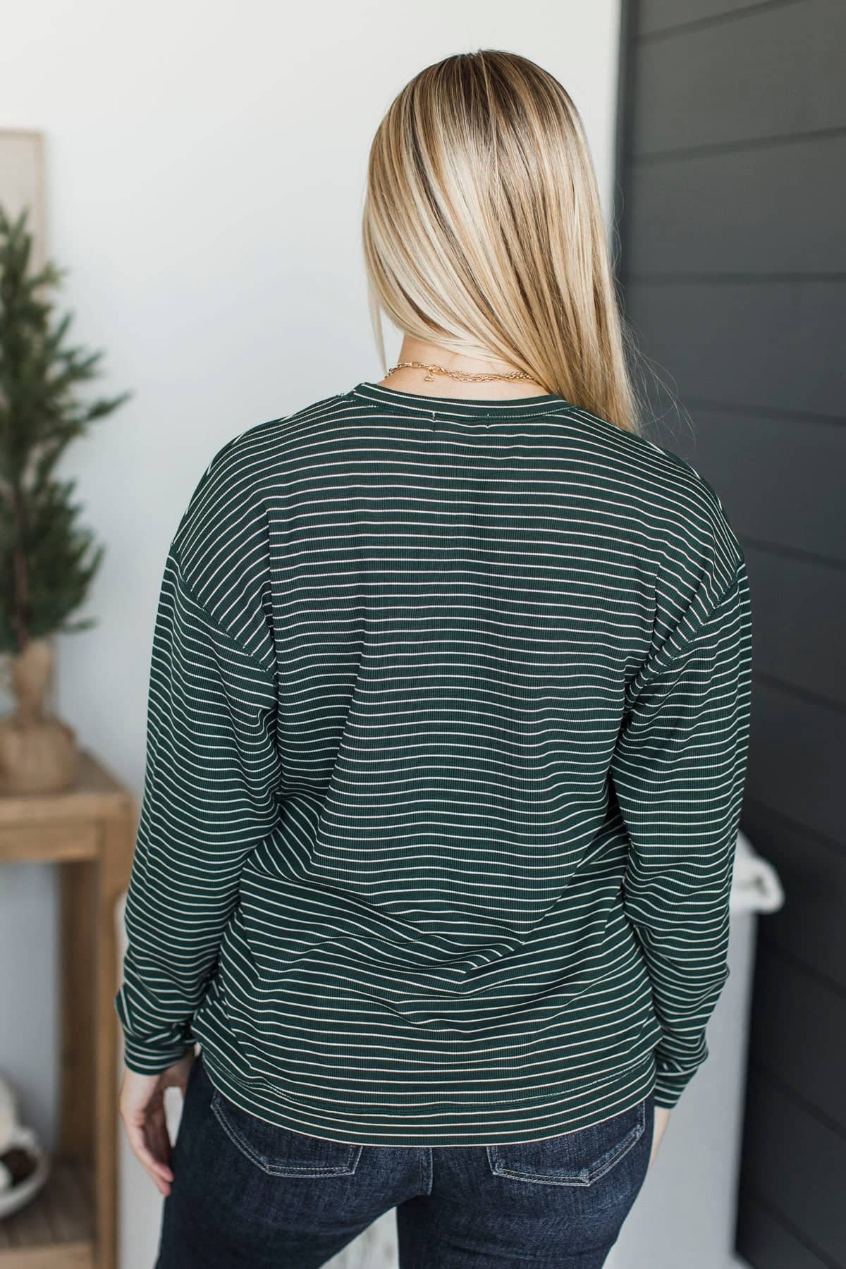 Brighten My Day Striped Pullover Top- Deep Forest Green