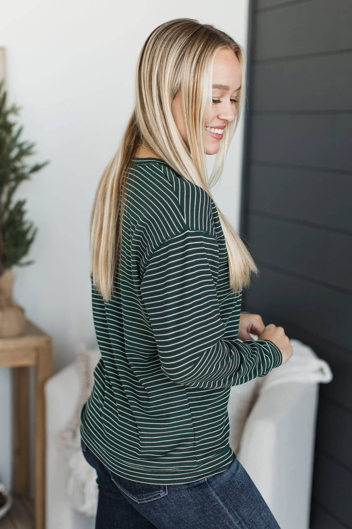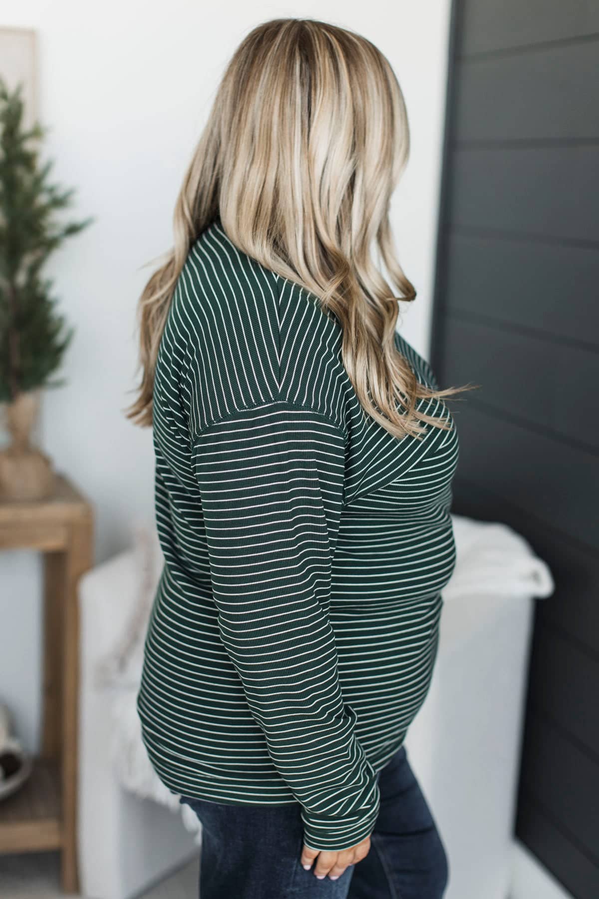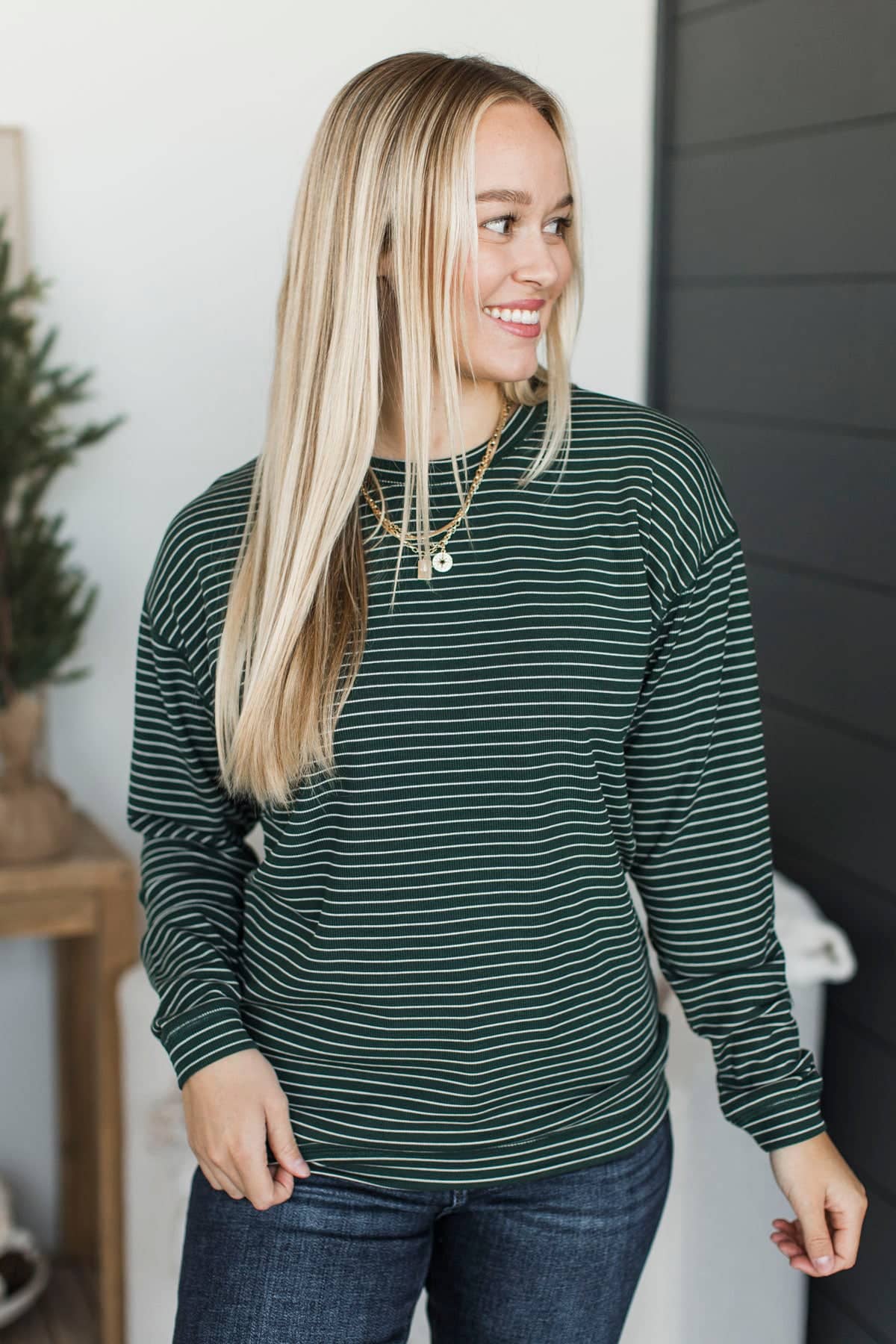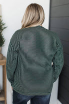 Brighten My Day Striped Pullover Top- Deep Forest Green
