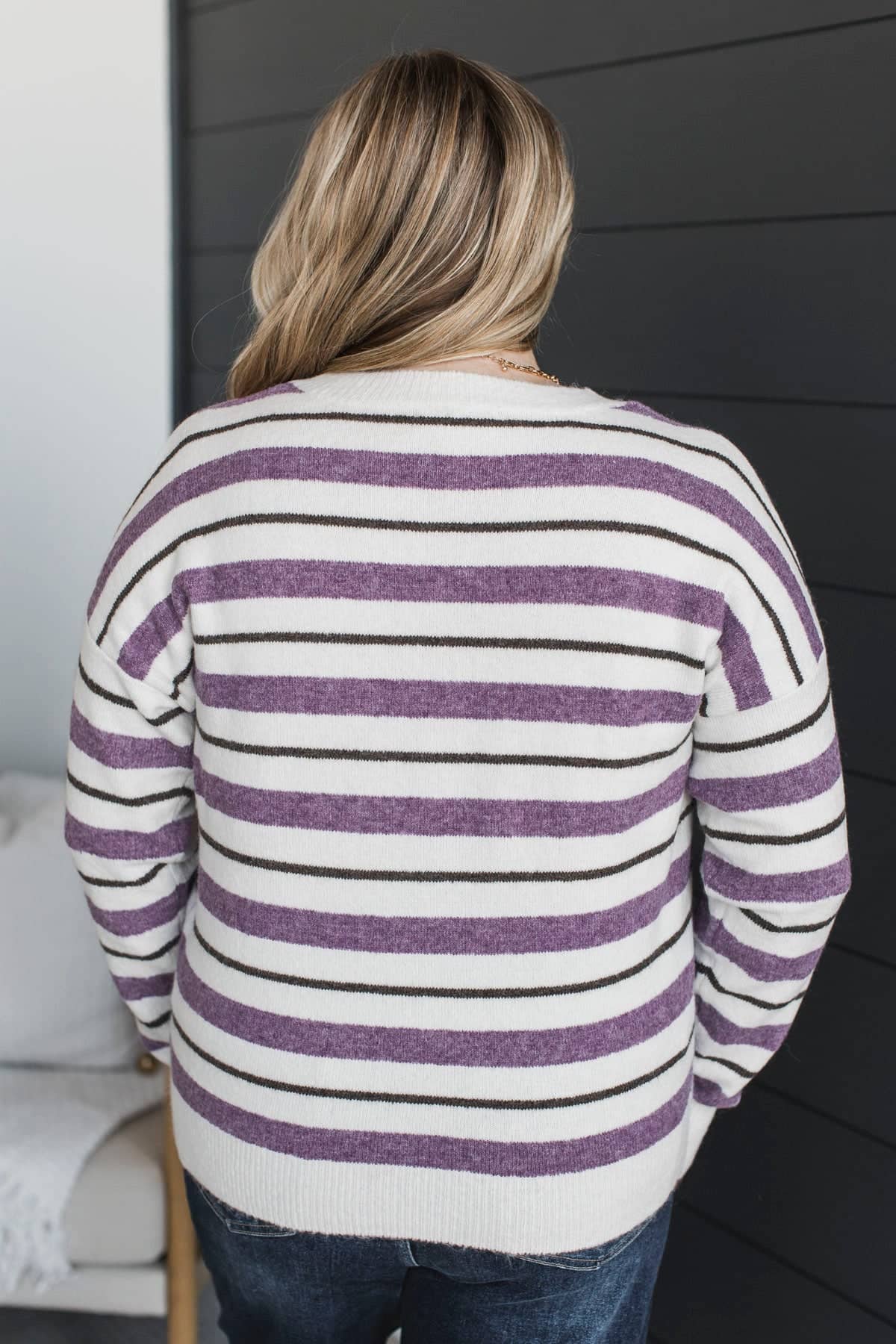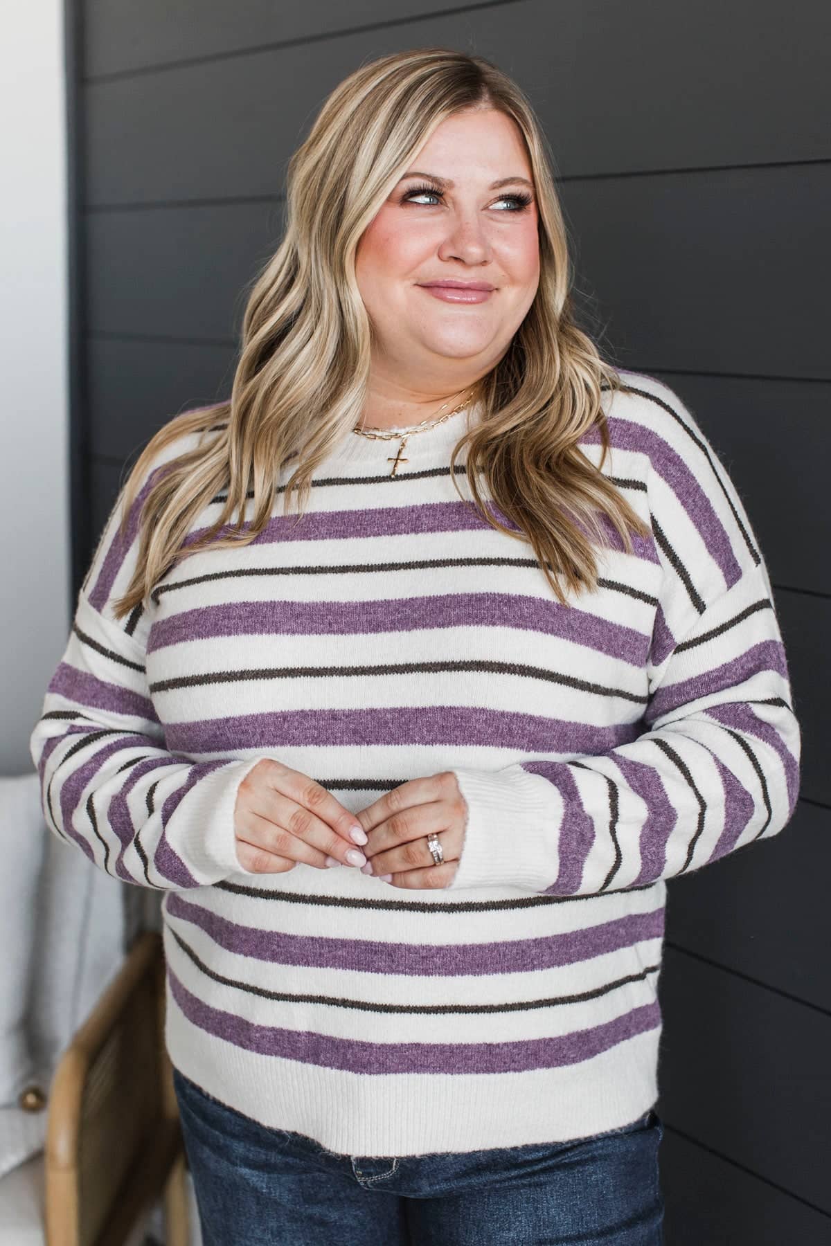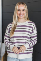 Chasing Bliss Striped Knit Sweater- Ivory & Purple