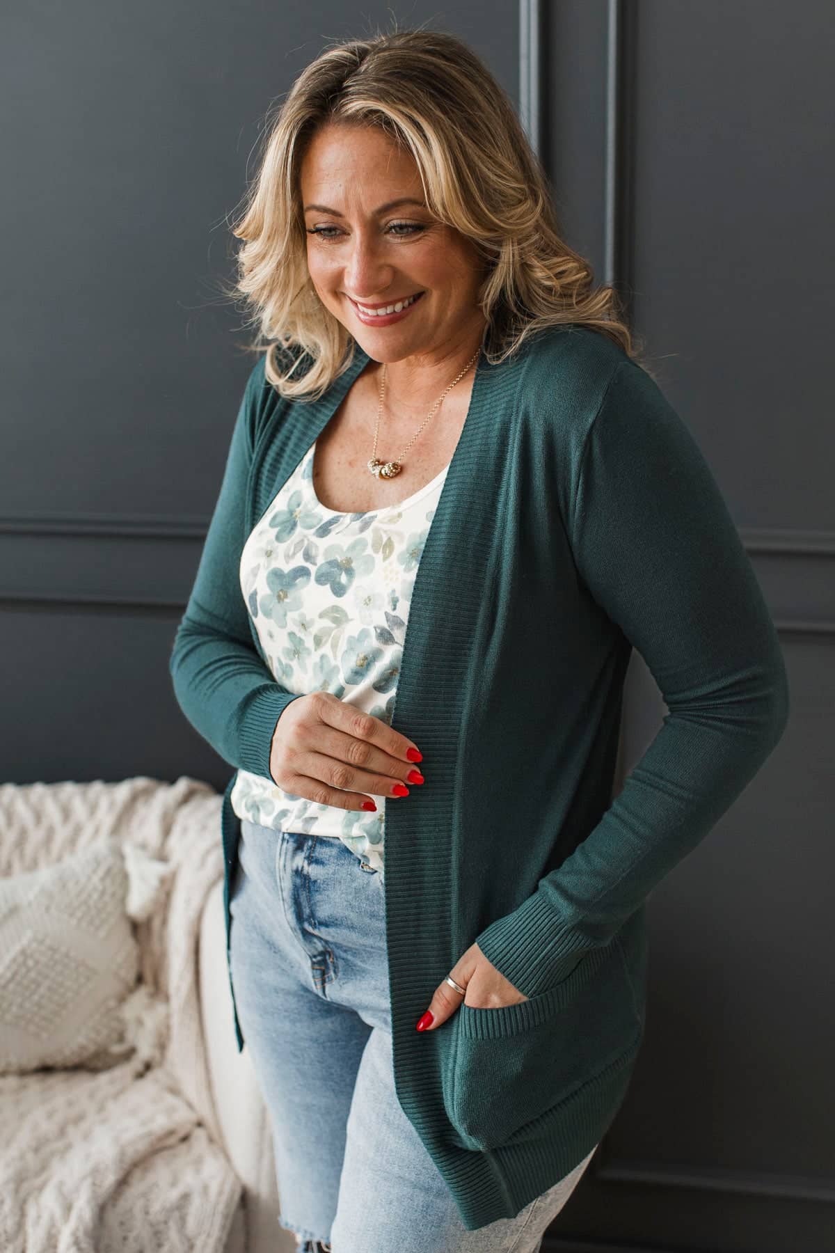 Comfortable With Myself Knit Cardigan- Emerald Green