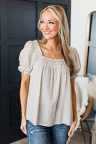 Complete Euphoria Puff Sleeve Top- Oatmeal