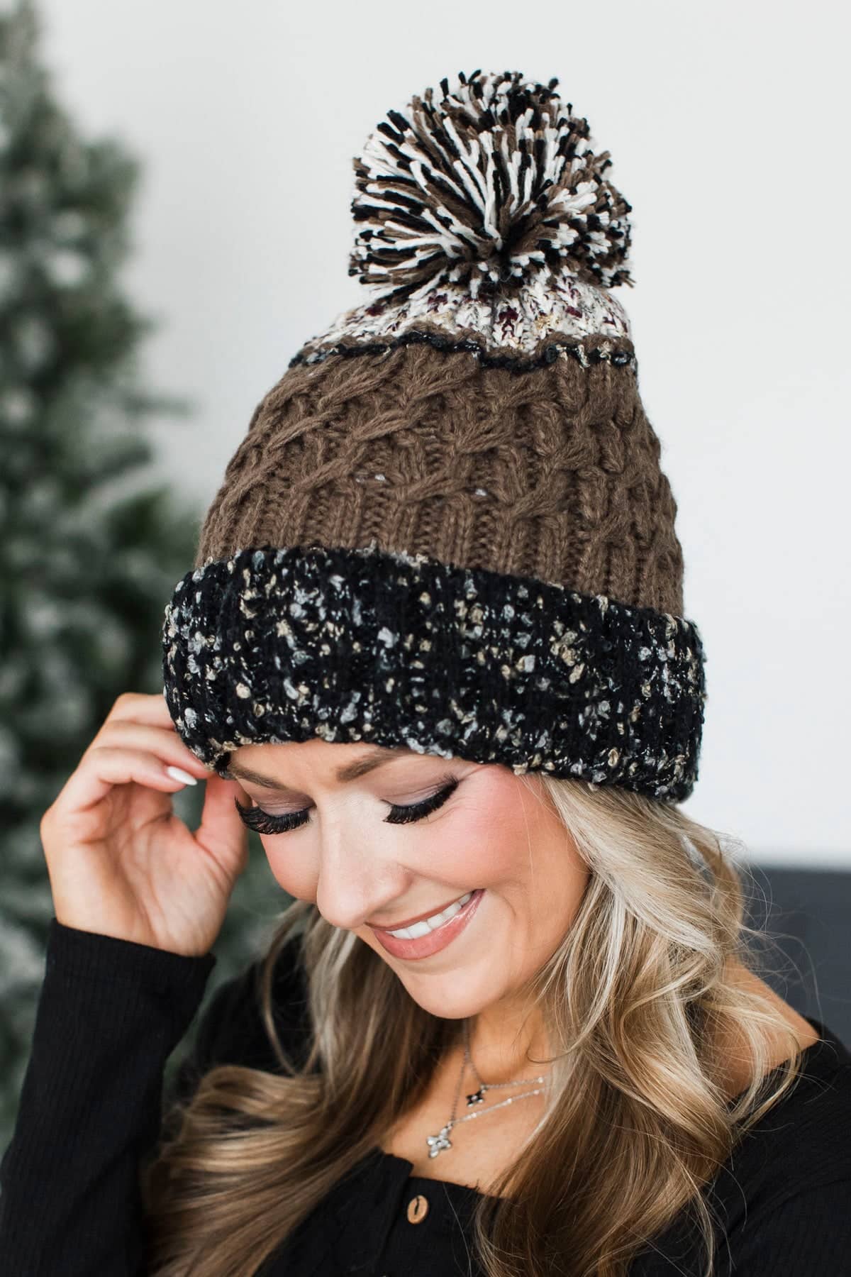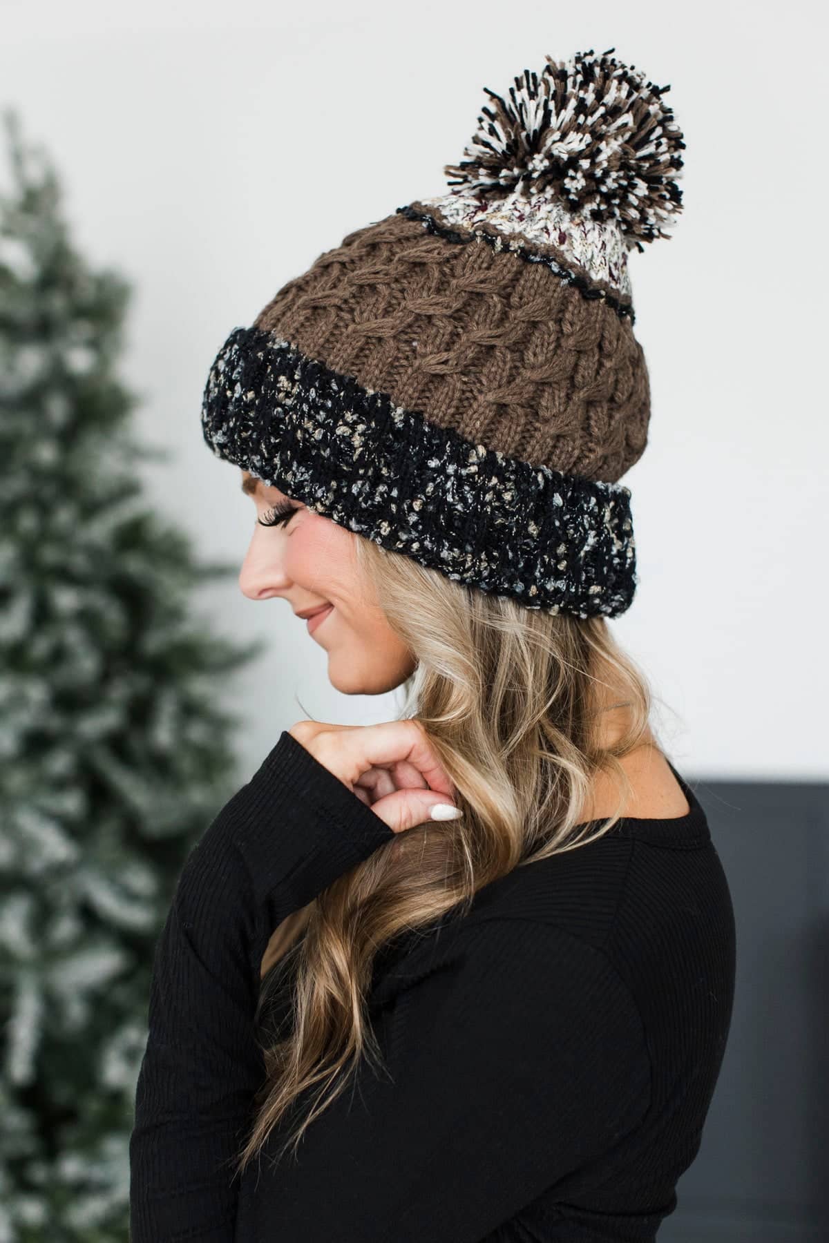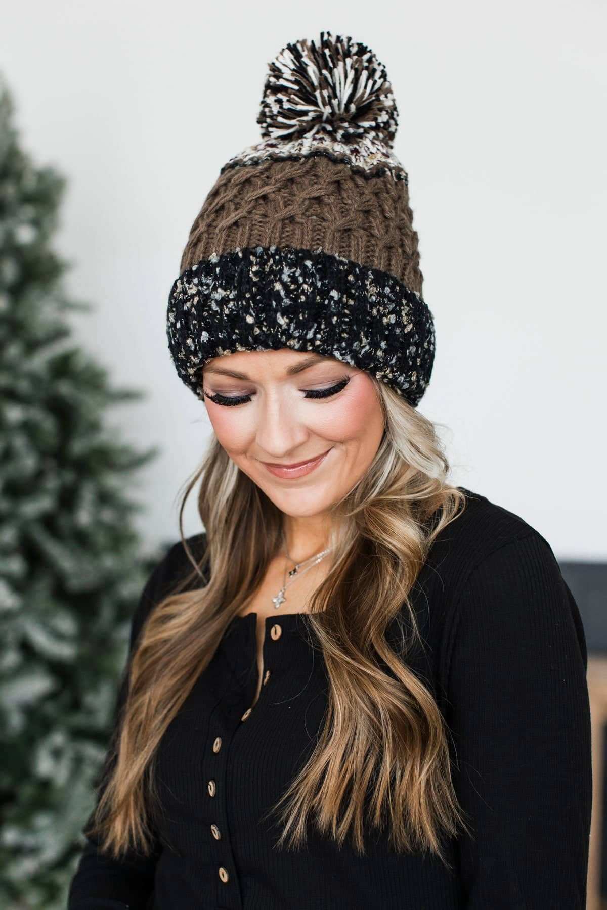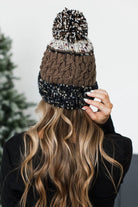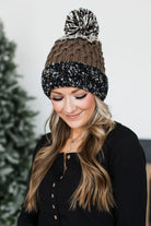 Cozy Cable Knit Pom Beanie- Black & Taupe