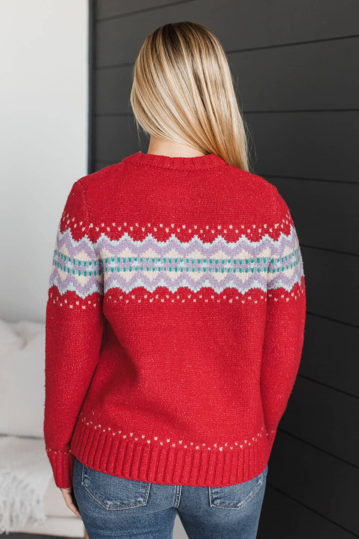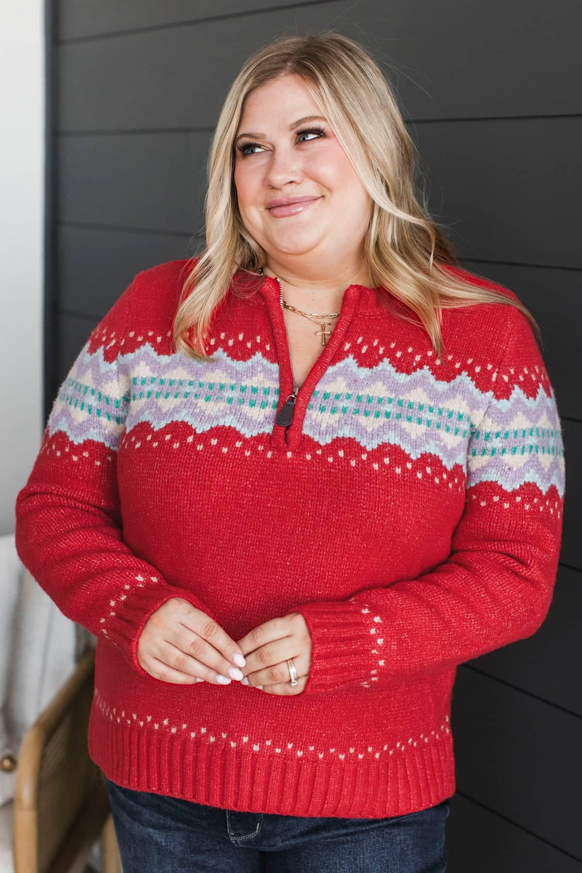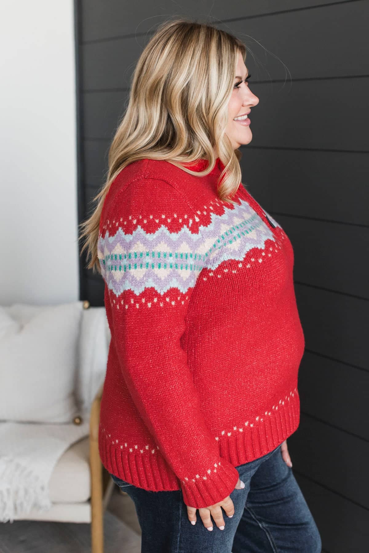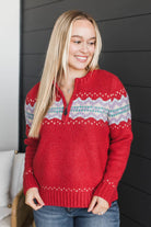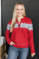 Cozy Getaway Quarter Zip Knit Sweater- Red