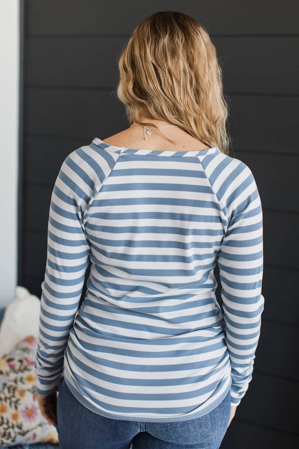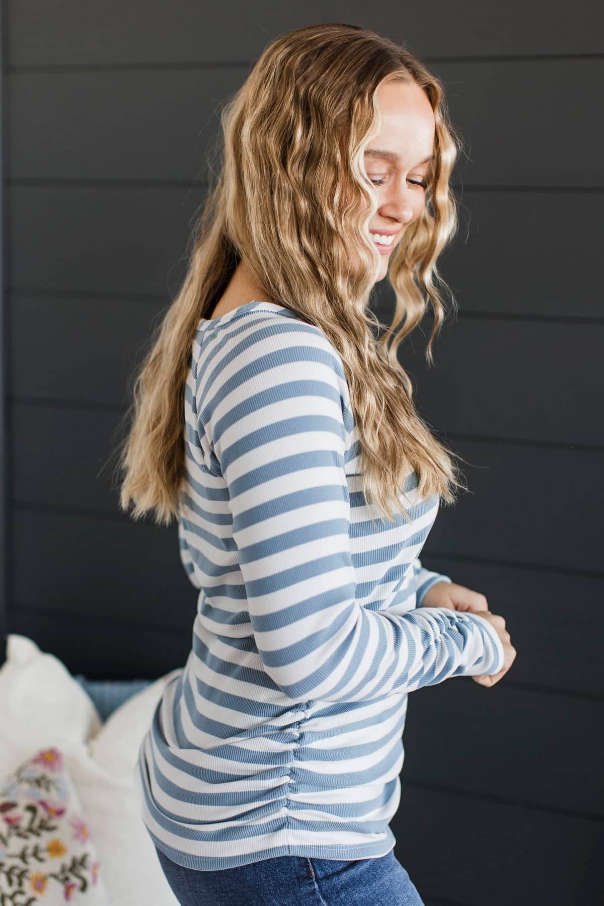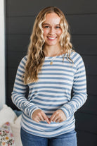 Electric Energy Striped Ruched Top- Ivory & Denim