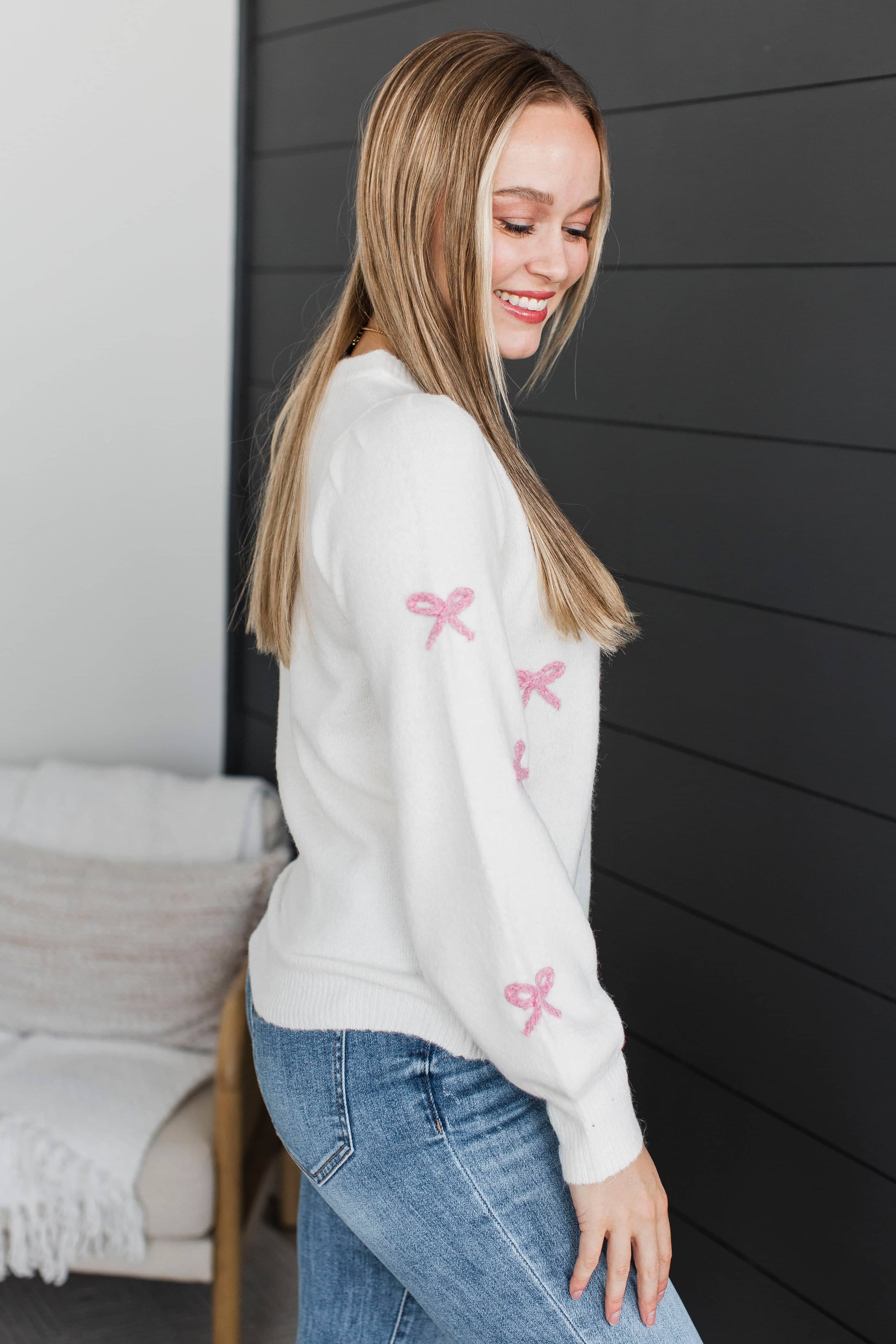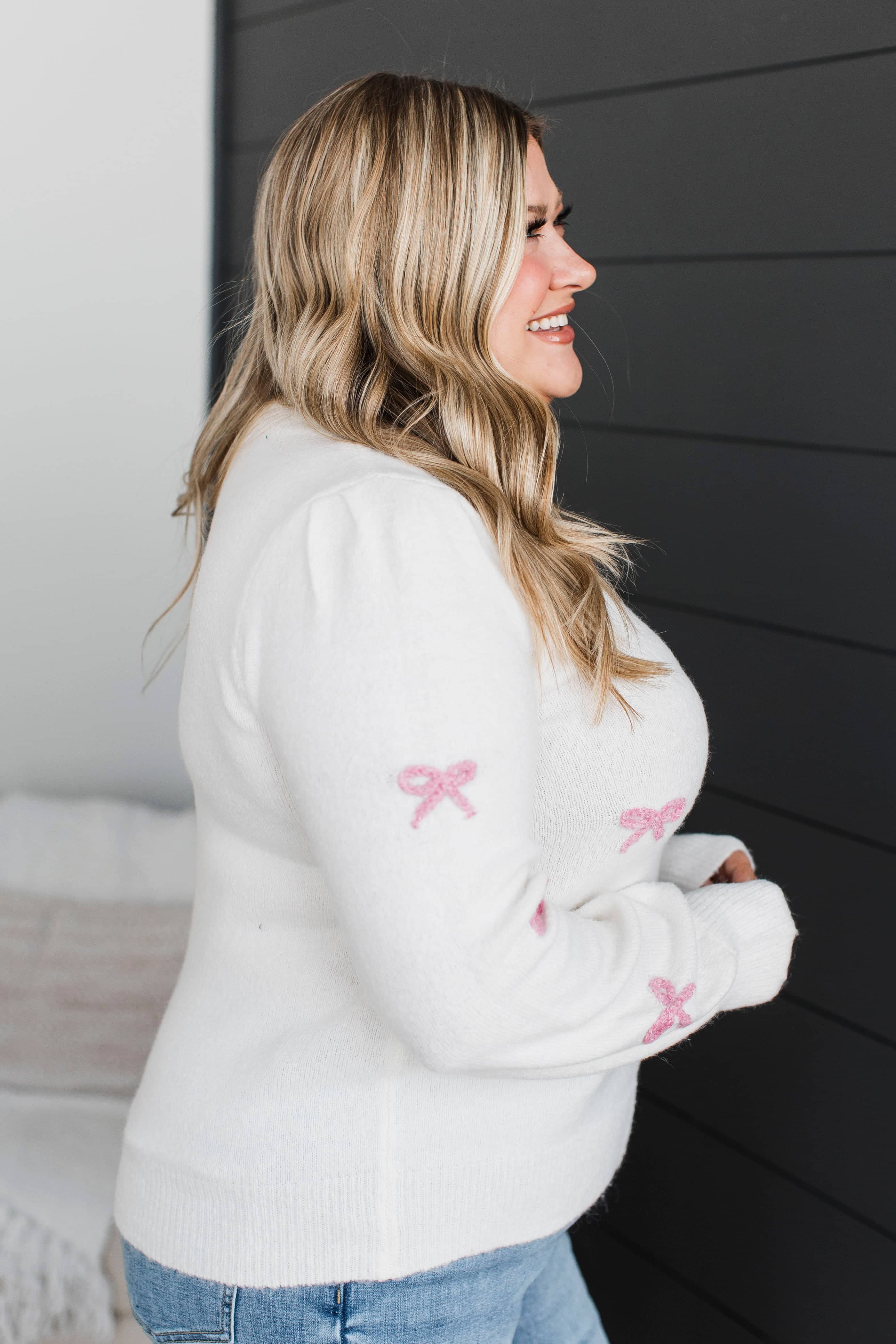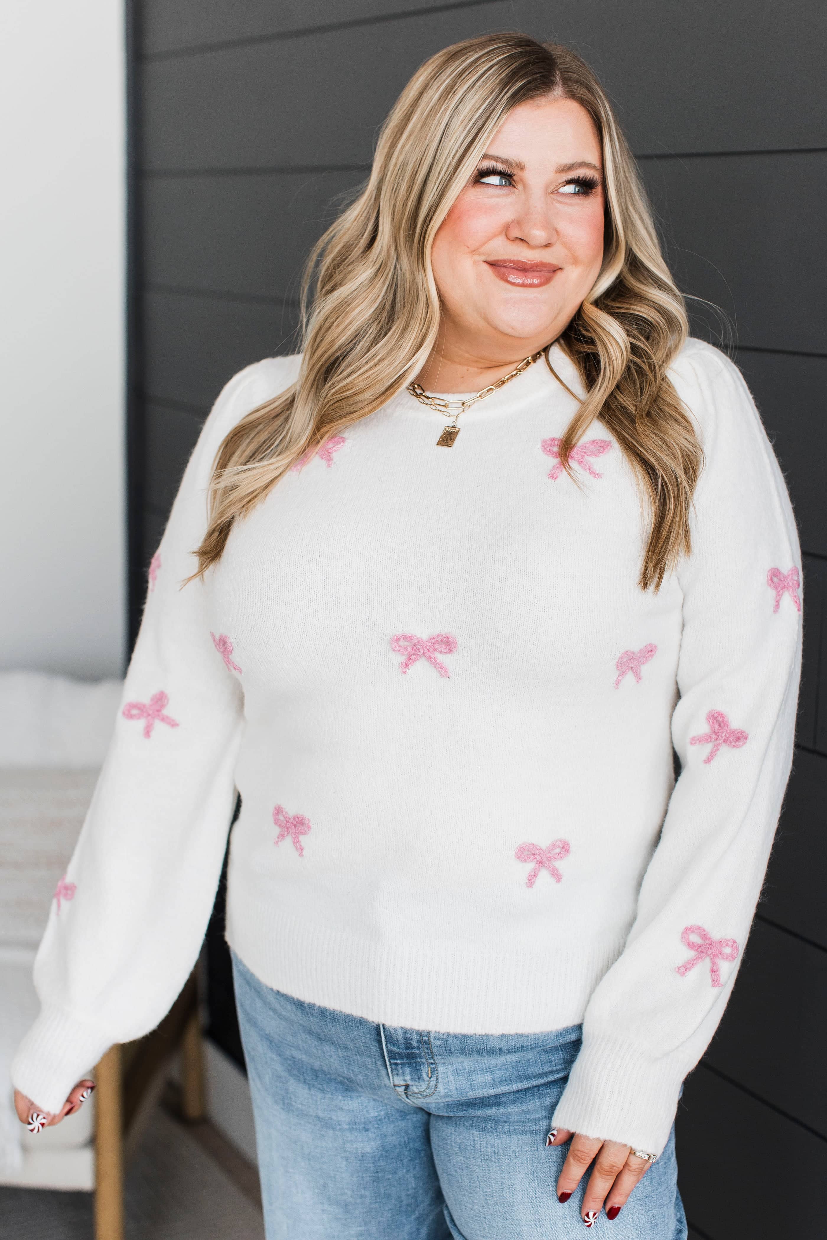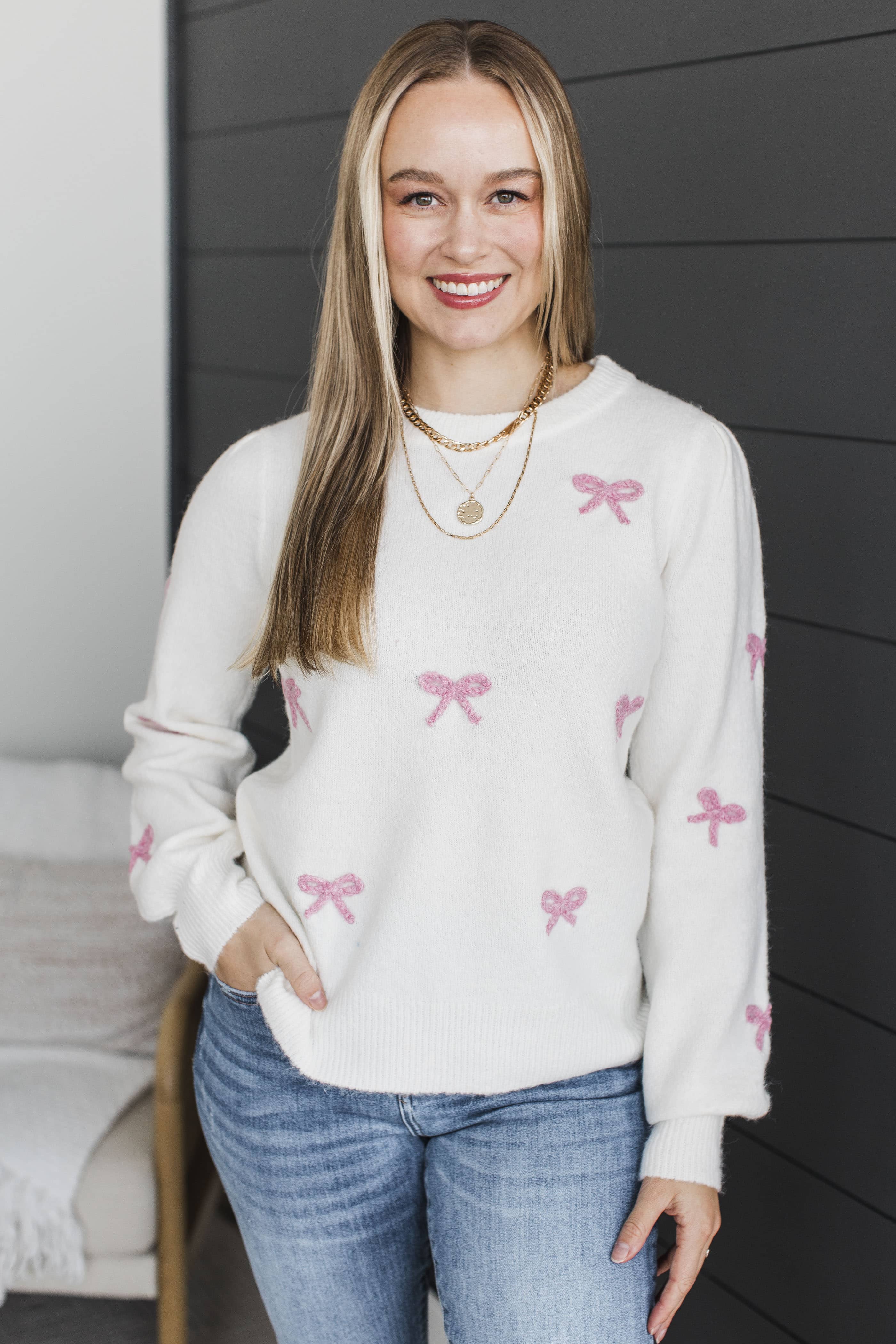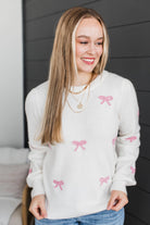 Envied By All Knit Bow Sweater- Ivory & Pink